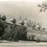 Valsts Višķu dārzkopības un mājturības skolas audzēkņi mazdārziņā, pie saimniecības ēkas