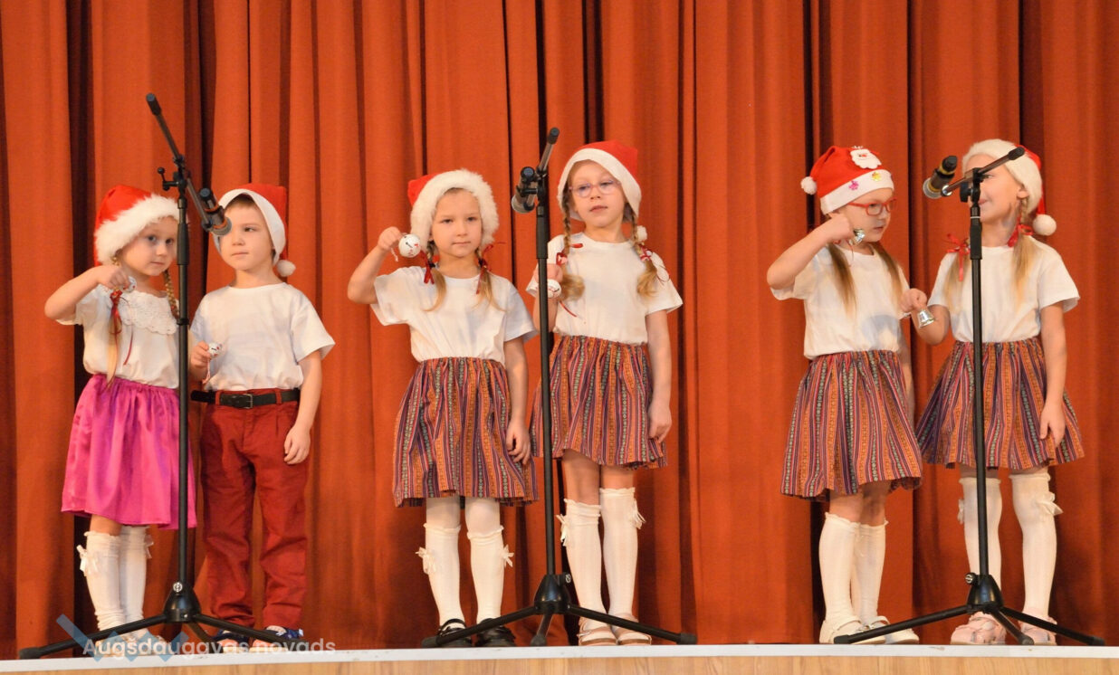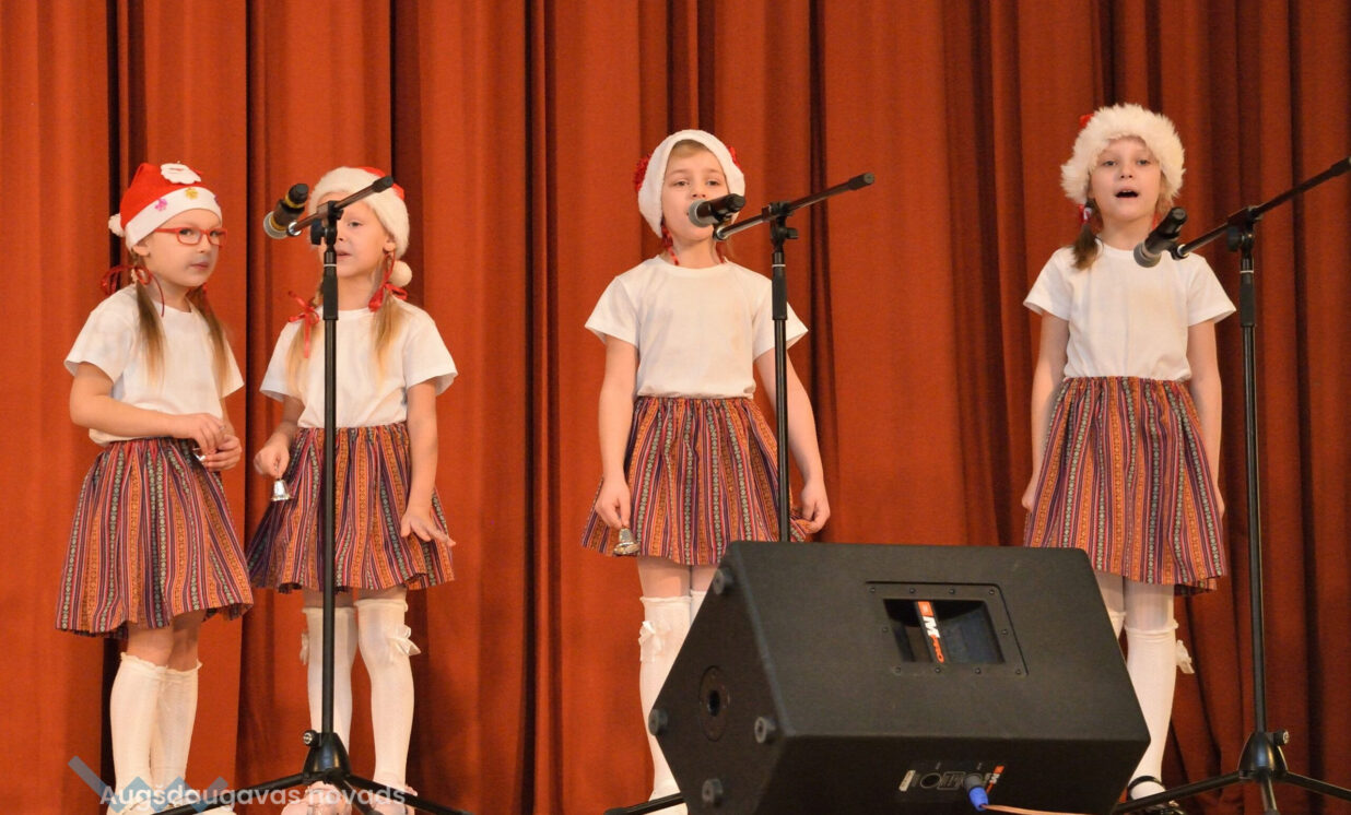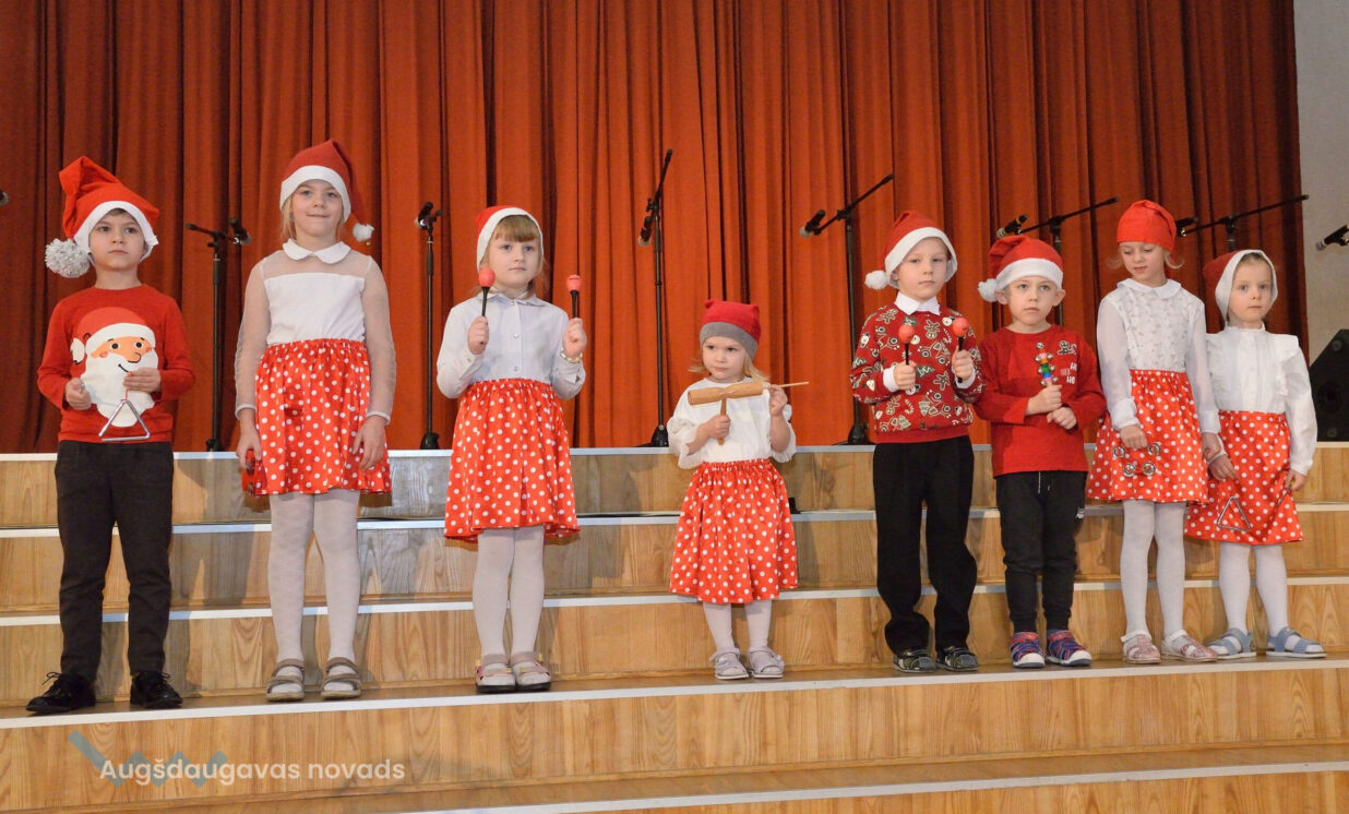 Dalībnieku skaists šogad bija īpaši liels. Tāpēc pasākums tika rīkots 2 daļās. Pirmajā daļā Ilūkstes Bērnu un jauniešu centra popgrupas “Varavīksne” dalībnieki ar dziesmu “Ziemassvētki mūsmājā” iesāka koncertu (skolotāja Ona Lapa), to turpinaja Zemgales vidusskolas audzēkņi ar muzikālu sveicienu “Jau Ziemassvētki klāt” (skolotāja Ludmila Lukjanova), savukārt Kalupes pamatskolas audzēkņi ar deju “Peles brauca dzirnavās” izstāstīja stāstu par miltu malšanu (skolotājas Māra Leleva un Aija Raščevska), Lāču pamatskolas pirmsskolas grupas “Lāčuks” audzēkņi izdejoja deju “Sniega bumbas” (skolotāja Anastasija Lukašenoka), Ilūkstes Raiņa vidusskolas pirmsskolas grupas “Ķipari” audzēkņi dziesmā “Pie eglītes” izstāstīja par darāmajiem darbiem (skolotāja Natālija Kolosova), Salienas vidusskolas audzēkņi izdejota skaistu stāstu “Mēness un zvaigznīšu dejā” (skolotāja Elena Olenina un Oksana Klimanska), Nīcgales pirmsskolas izglītības iestādes “Sprīdītis” audzēkņi bija sagatavojuši skanīgu un daudzveidīgu mūzikas instrumentu orķestri (skolotāja Anastasija Lukašenoka), savukārt Ilūkstes pirmsskolas izglītības iestādes “Zvaniņš” audzēkņi priecēja ar uzvedumu – dziesmu, dzejoli un deju (skolotāja Ona Lapa). Pasākuma otrajā daļā Laucesas pamatskolas programmas īstenošanas vietas “Silene” audzēkņi ieradās ar Ziemassvētku kamanām un nodziedāja dziesmu “Kas ir Ziemassvētki” (skolotājas Inna Kralika un Diāna Krasiļnikova), Biķernieku pamatskolas audzēkņi uzvedumā izdziedāja dziesmu par piparkūku cepšanu (skolotājas Līvija Bogdāne un Olga Pankova), Laucesas pamatskolas audzēkņi parādīja, kā cept piparkūkas un pacienāja ar tām viesus (skolotāja Maruta Kuzmina), savukārt Randenes pamatskolas audzēkņi nodziedāja dziesmu “Lido, sniedziņ!” (skolotāja Larisa Sauleviča), Naujenes pirmsskolas izglītības iestādes “Rūķītis” audzēkņi iepriecināja ar dziesmu eglītei “Ziemassvētku princese” (skolotāja Tatjana Zviceviča), Špoģu vidusskolas pirmsskolas grupa “Zvaniņš” izdejoja un izdziedāja rotaļu “Adiet, bērni, ko adiet!” (skolotājas Aija Ozoliņa un Anita Smane), Bebrenes vispārizglītojošās un profesionālās vidusskolas audzēkņi ieradās Ziemassvētku vilcieniņā un nodziedāja pelīšu stāstu dziesmā “Pelītes cep” (skolotāja Regīna Medisa), bet Vaboles pamatskolas audzēkņi aicināja visus brokastīs dejā “Nākat bērni brokastīs” (skolotāja Anita Skrinda”.