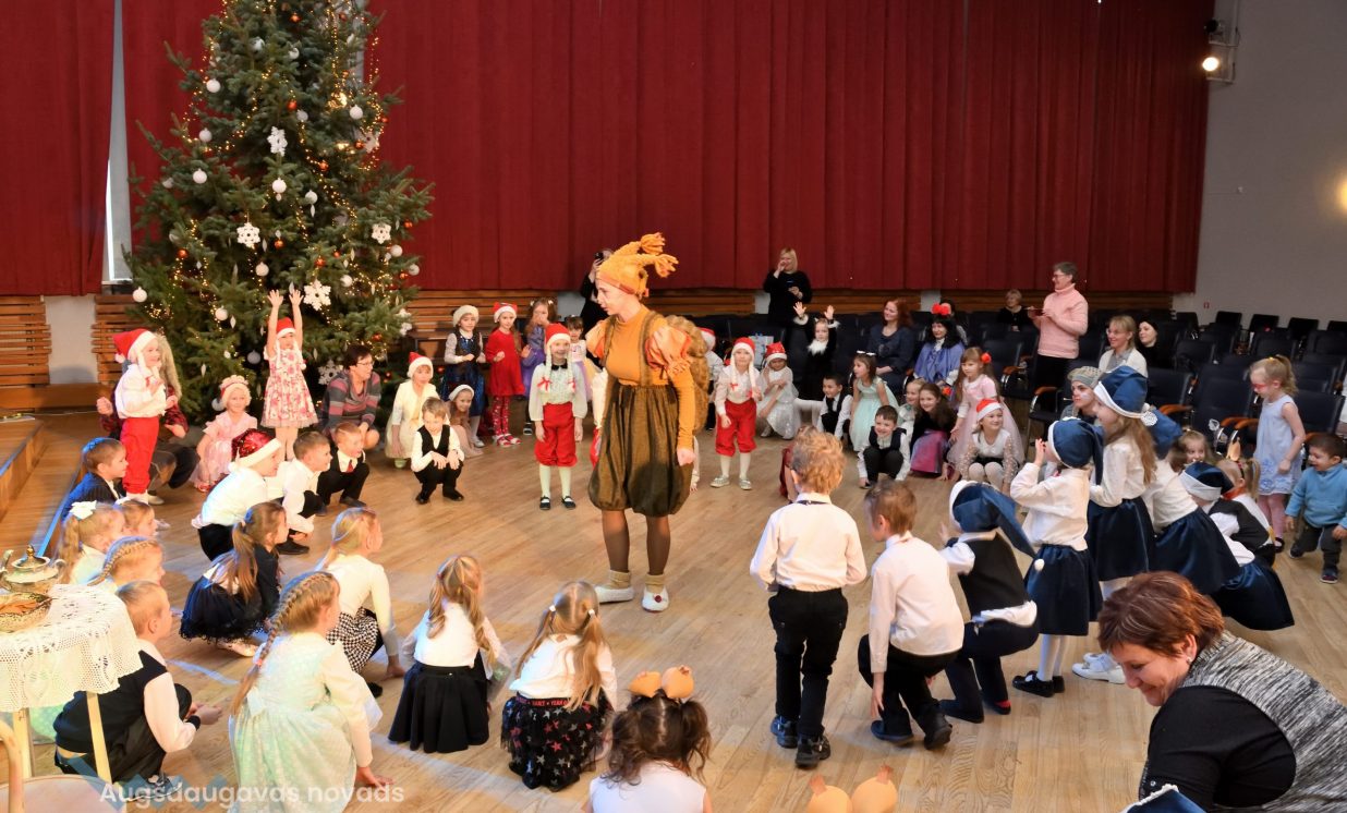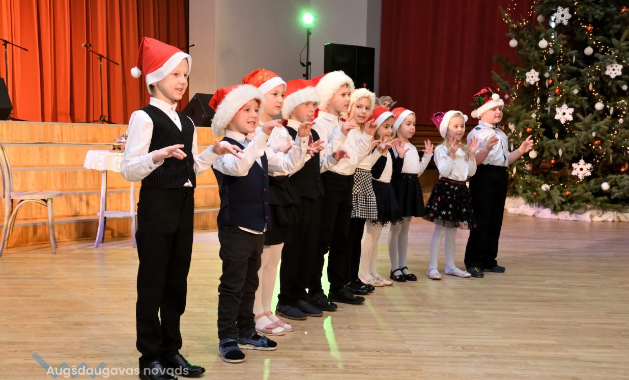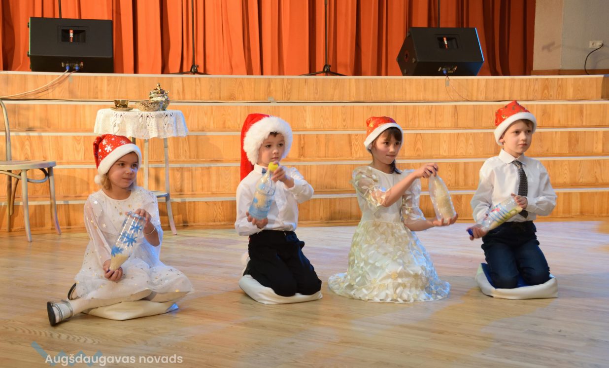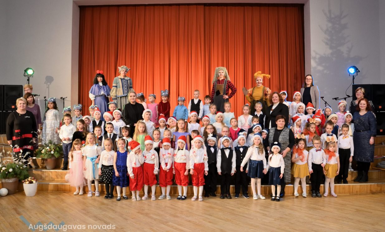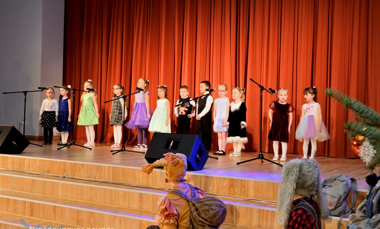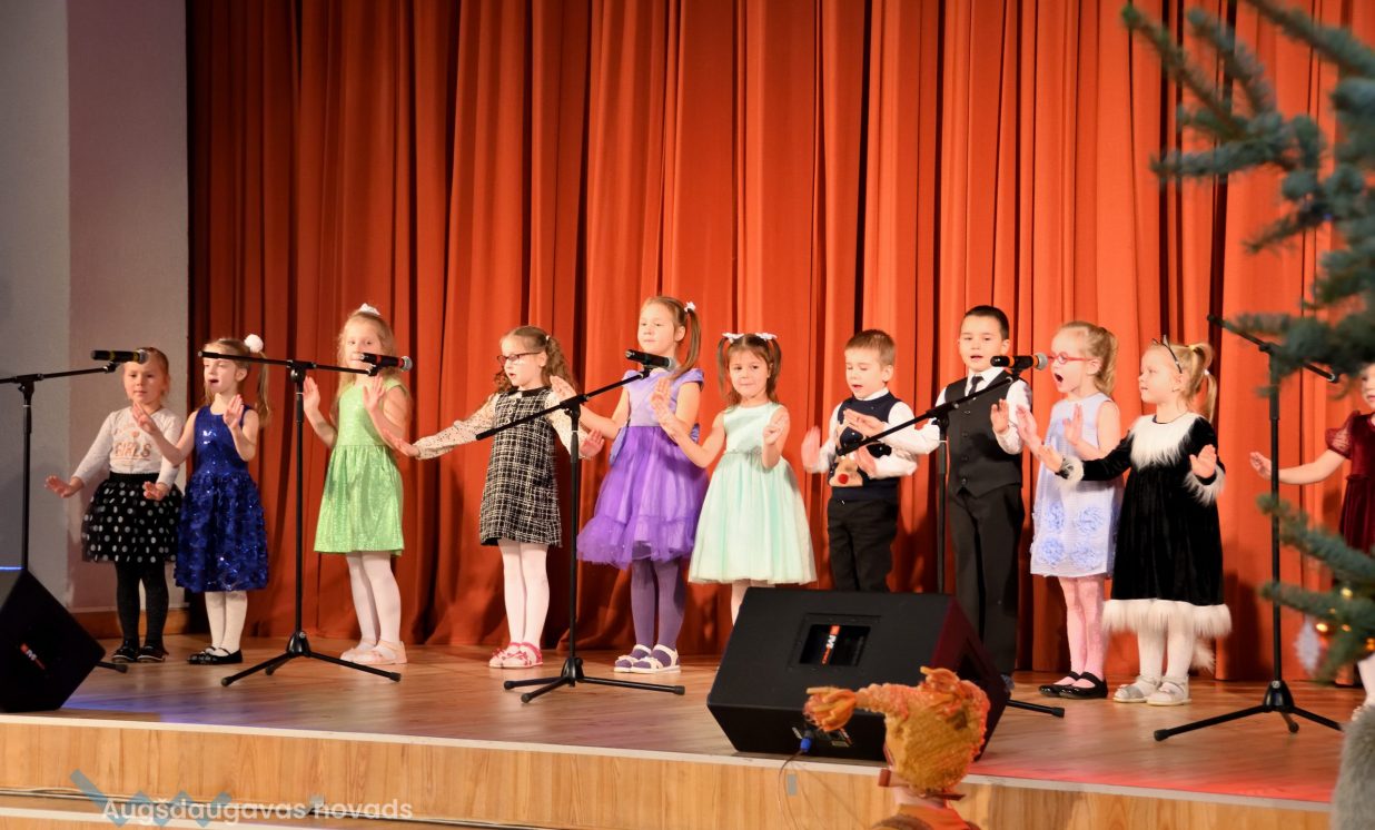 Nīcgales pirmsskolas izglītības iestādes ”Sprīdītis” audzēkņi priecēja ar dziesmu “Ziemassvētku brīnums” (skolotāja Anastasija Lukašenoka), Biķernieku pamatskolas audzēkņi uzdejoja “Oira Ziemassvētkiem” (skolotāja Oksana Klimanska), Naujenes pirmsskolas izglītības iestādes “Rūķītis” audzēkņi uzbūra “Ziemassvētku smaržas” (skolotāja Tatjana Zviceviča), savukārt Vaboles vidusskolas pirmsskolas grupa rādīja, kā “Peles brauca dzirnavās” (skolotājas Benita Jukša un Anita Skrinda), Špoģu vidusskolas audzēkņi dziesmā “Muša Kuša” enerģiski izstāstīja mušas stāstu (skolotāja Amanda Šaršune), dejā “Vāverīte ezim teic” Salienas audzēkņi aicināja ežus dodies vākt krājumus (skolotāja Oksana Klimanska), savukārt muzikālu “Sveicienu no Meksikas” bija sagatavojuši Sventes vidusskolas programmas īstenošanas vietas Medumi pirmsskolas audzēkņi (skolotāja Nataļja Ogurcova), dziesmu “Ziemassvētku vecītis” izdziedāja Zemgales vidusskolas audzēkņi (skolotājas Ludmila Lukjanova, Jeļena Andrejeva), savukārt Lāču pamatskolas pirmsskolas grupa rādīja “Sniegpārsliņas rotaļu” (skolotāja Anastasija Lukašenoka) un Laucesas pamatskolas audzēkņi uzdejoja vienu lustīgu “Rūķu deju” (skolotāja Maruta Kuzmina).