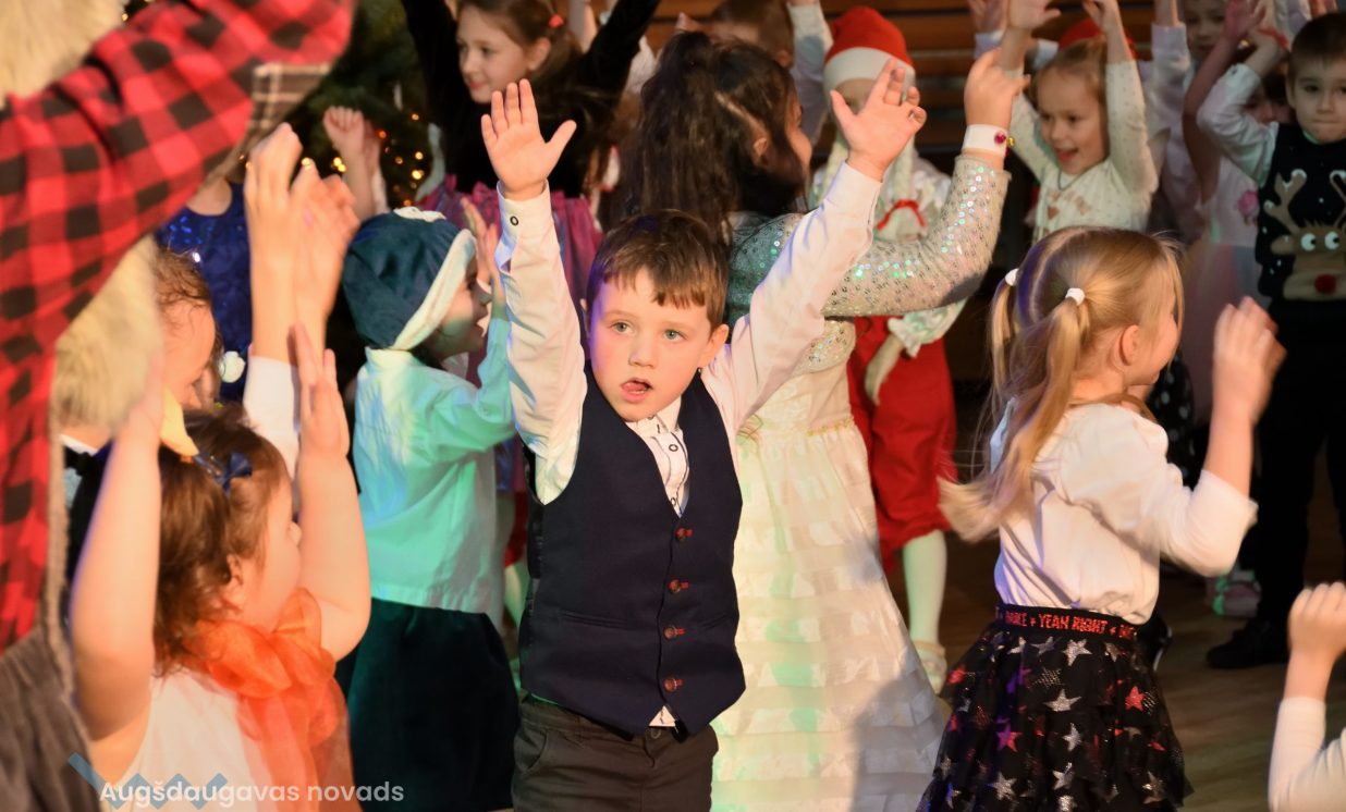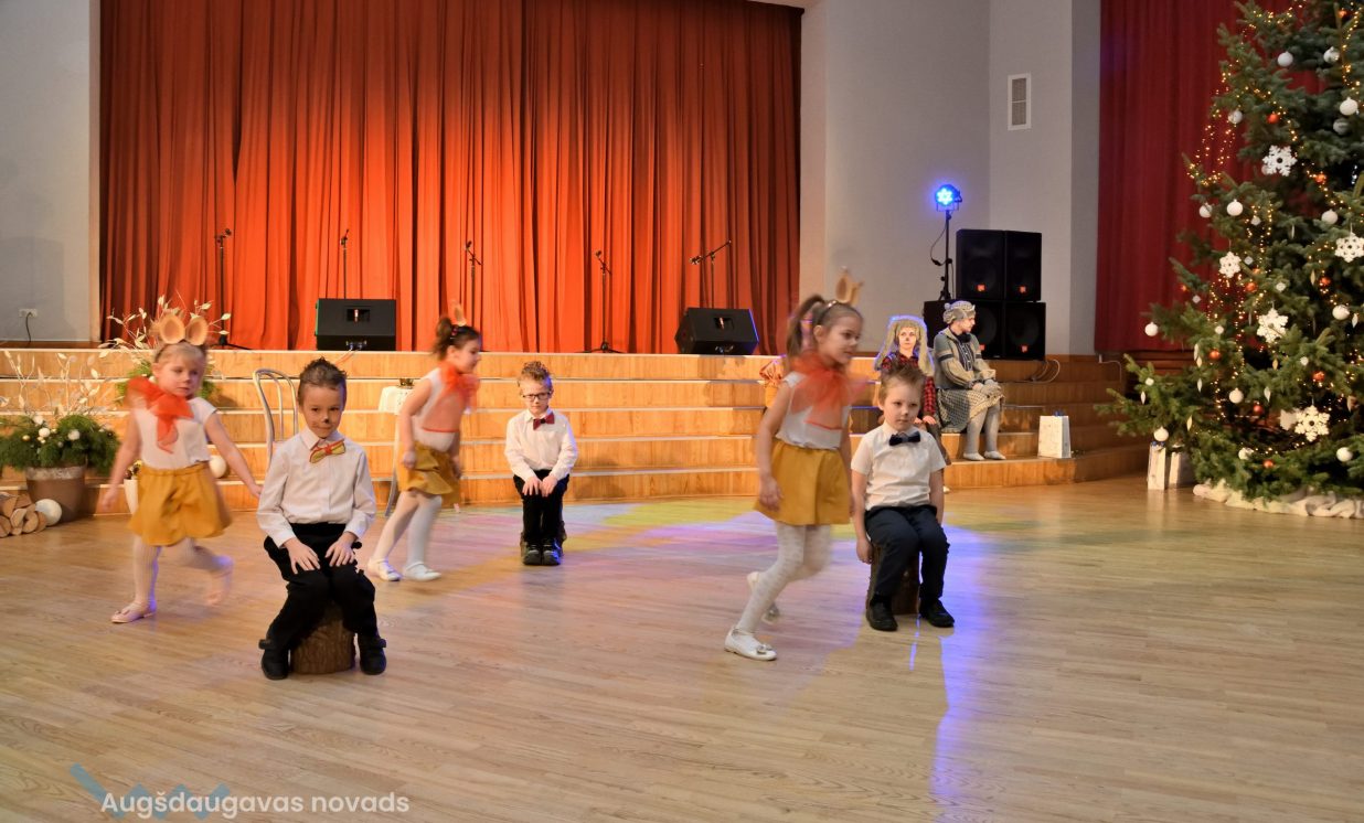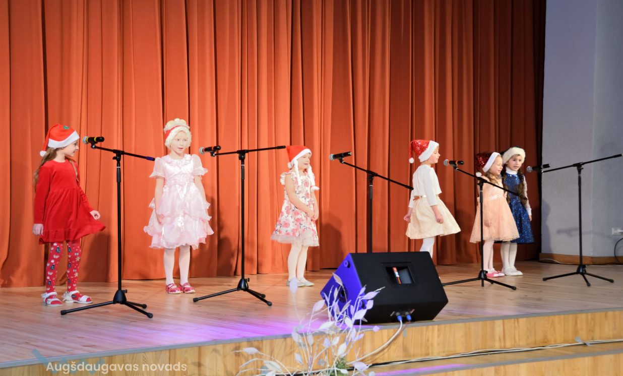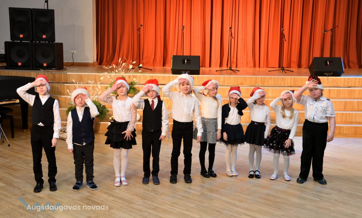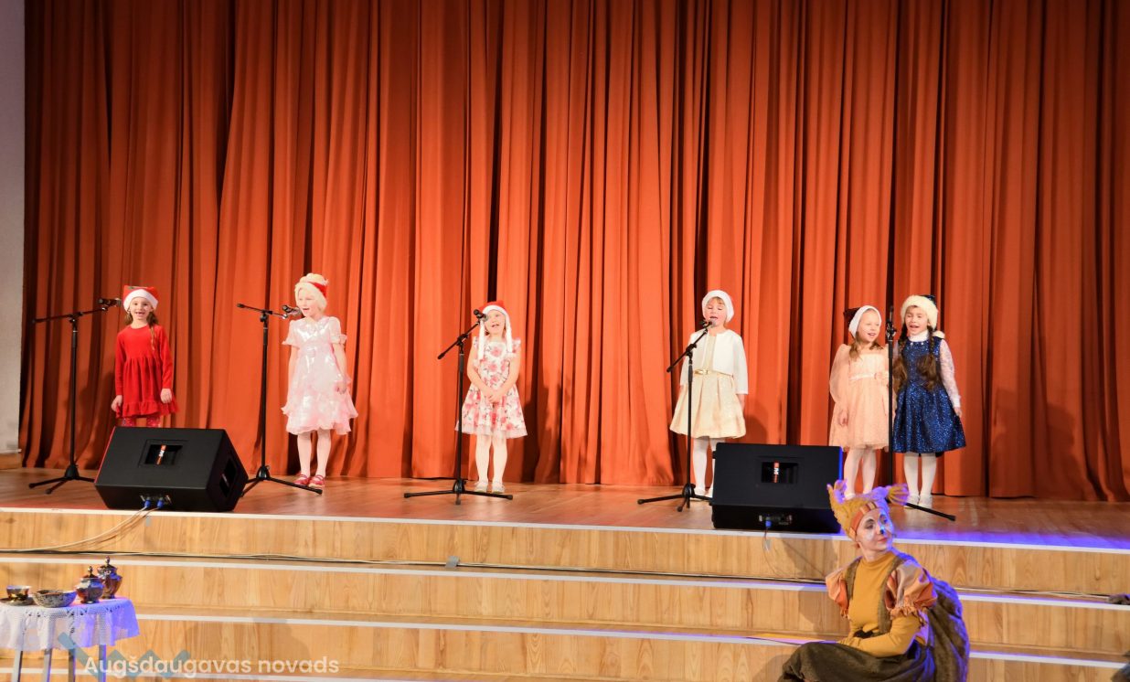 Nīcgales pirmsskolas izglītības iestādes ”Sprīdītis” audzēkņi priecēja ar dziesmu “Ziemassvētku brīnums” (skolotāja Anastasija Lukašenoka), Biķernieku pamatskolas audzēkņi uzdejoja “Oira Ziemassvētkiem” (skolotāja Oksana Klimanska), Naujenes pirmsskolas izglītības iestādes “Rūķītis” audzēkņi uzbūra “Ziemassvētku smaržas” (skolotāja Tatjana Zviceviča), savukārt Vaboles vidusskolas pirmsskolas grupa rādīja, kā “Peles brauca dzirnavās” (skolotājas Benita Jukša un Anita Skrinda), Špoģu vidusskolas audzēkņi dziesmā “Muša Kuša” enerģiski izstāstīja mušas stāstu (skolotāja Amanda Šaršune), dejā “Vāverīte ezim teic” Salienas audzēkņi aicināja ežus dodies vākt krājumus (skolotāja Oksana Klimanska), savukārt muzikālu “Sveicienu no Meksikas” bija sagatavojuši Sventes vidusskolas programmas īstenošanas vietas Medumi pirmsskolas audzēkņi (skolotāja Nataļja Ogurcova), dziesmu “Ziemassvētku vecītis” izdziedāja Zemgales vidusskolas audzēkņi (skolotājas Ludmila Lukjanova, Jeļena Andrejeva), savukārt Lāču pamatskolas pirmsskolas grupa rādīja “Sniegpārsliņas rotaļu” (skolotāja Anastasija Lukašenoka) un Laucesas pamatskolas audzēkņi uzdejoja vienu lustīgu “Rūķu deju” (skolotāja Maruta Kuzmina).