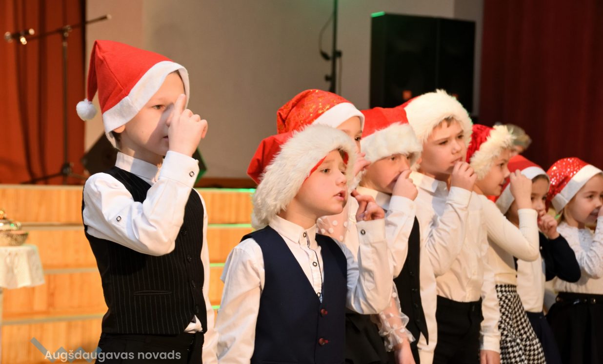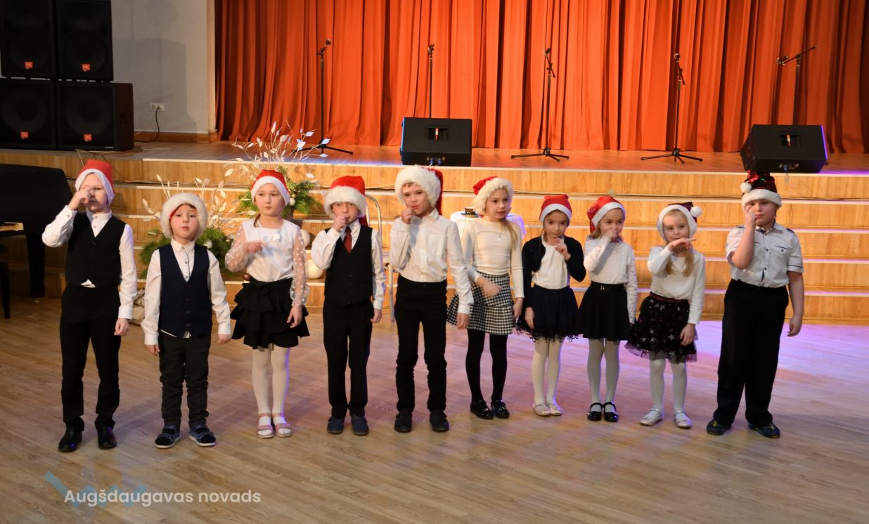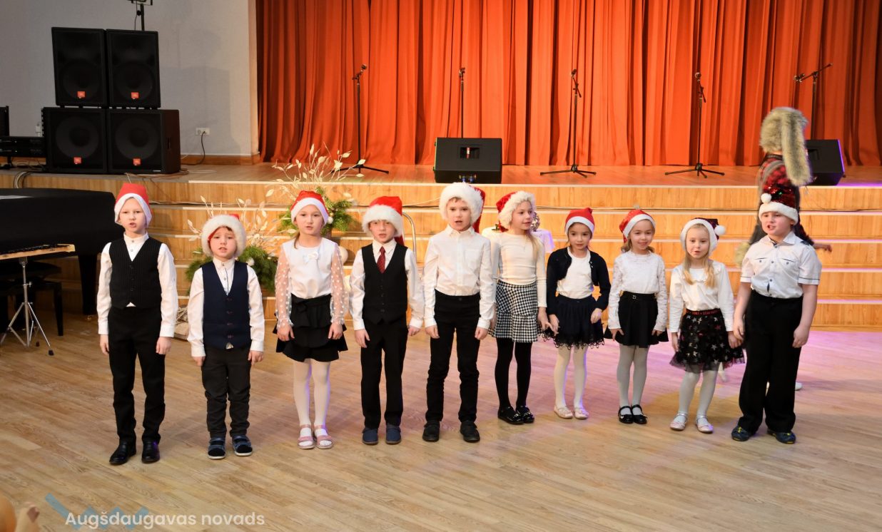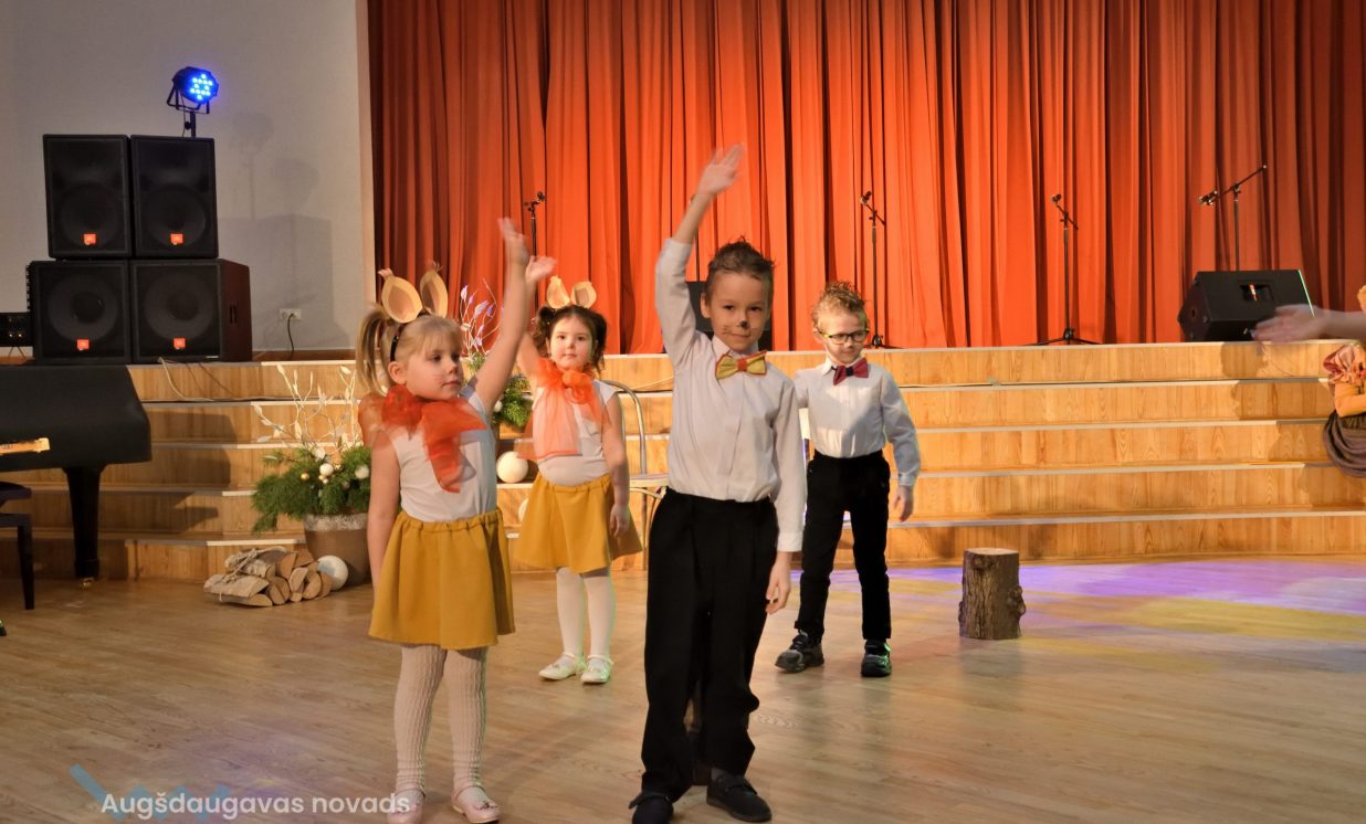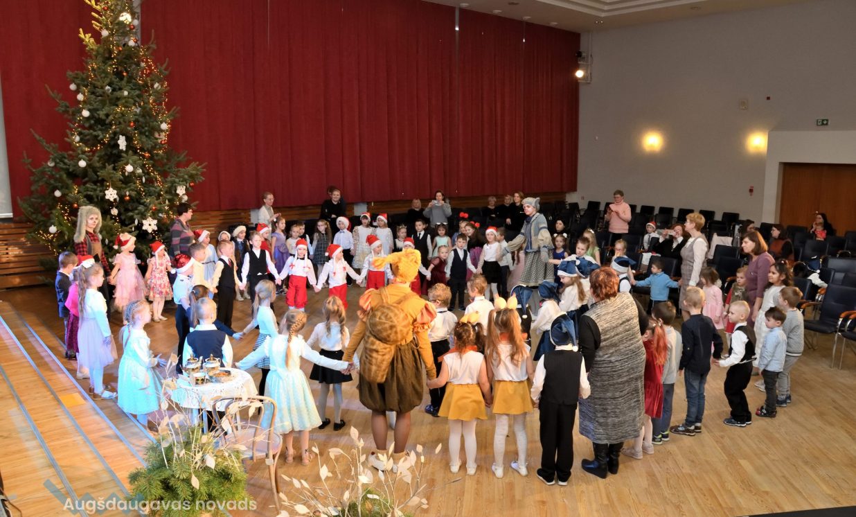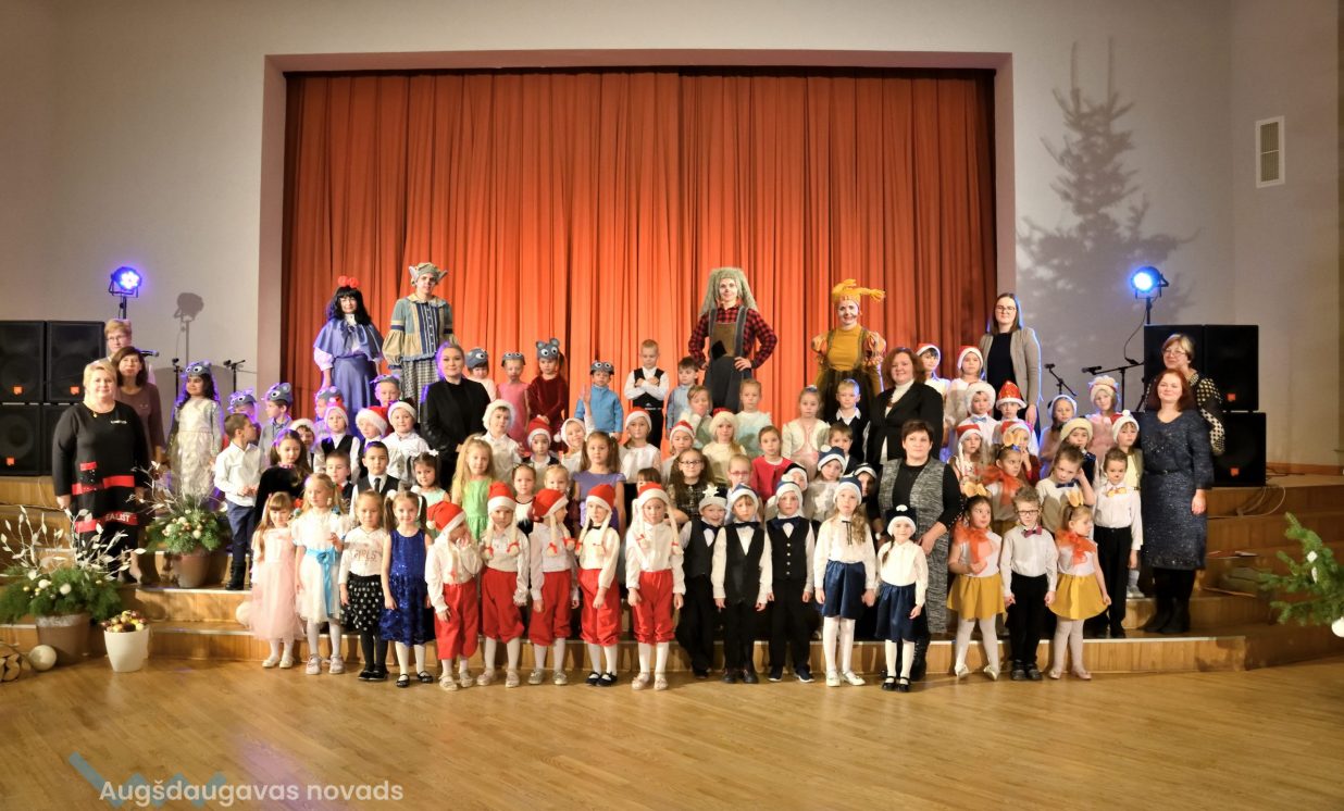 Nīcgales pirmsskolas izglītības iestādes ”Sprīdītis” audzēkņi priecēja ar dziesmu “Ziemassvētku brīnums” (skolotāja Anastasija Lukašenoka), Biķernieku pamatskolas audzēkņi uzdejoja “Oira Ziemassvētkiem” (skolotāja Oksana Klimanska), Naujenes pirmsskolas izglītības iestādes “Rūķītis” audzēkņi uzbūra “Ziemassvētku smaržas” (skolotāja Tatjana Zviceviča), savukārt Vaboles vidusskolas pirmsskolas grupa rādīja, kā “Peles brauca dzirnavās” (skolotājas Benita Jukša un Anita Skrinda), Špoģu vidusskolas audzēkņi dziesmā “Muša Kuša” enerģiski izstāstīja mušas stāstu (skolotāja Amanda Šaršune), dejā “Vāverīte ezim teic” Salienas audzēkņi aicināja ežus dodies vākt krājumus (skolotāja Oksana Klimanska), savukārt muzikālu “Sveicienu no Meksikas” bija sagatavojuši Sventes vidusskolas programmas īstenošanas vietas Medumi pirmsskolas audzēkņi (skolotāja Nataļja Ogurcova), dziesmu “Ziemassvētku vecītis” izdziedāja Zemgales vidusskolas audzēkņi (skolotājas Ludmila Lukjanova, Jeļena Andrejeva), savukārt Lāču pamatskolas pirmsskolas grupa rādīja “Sniegpārsliņas rotaļu” (skolotāja Anastasija Lukašenoka) un Laucesas pamatskolas audzēkņi uzdejoja vienu lustīgu “Rūķu deju” (skolotāja Maruta Kuzmina).