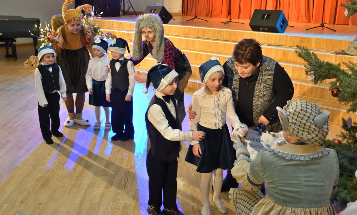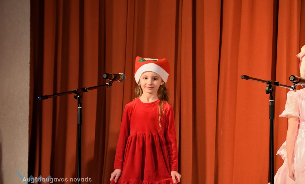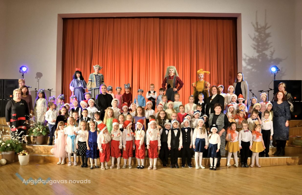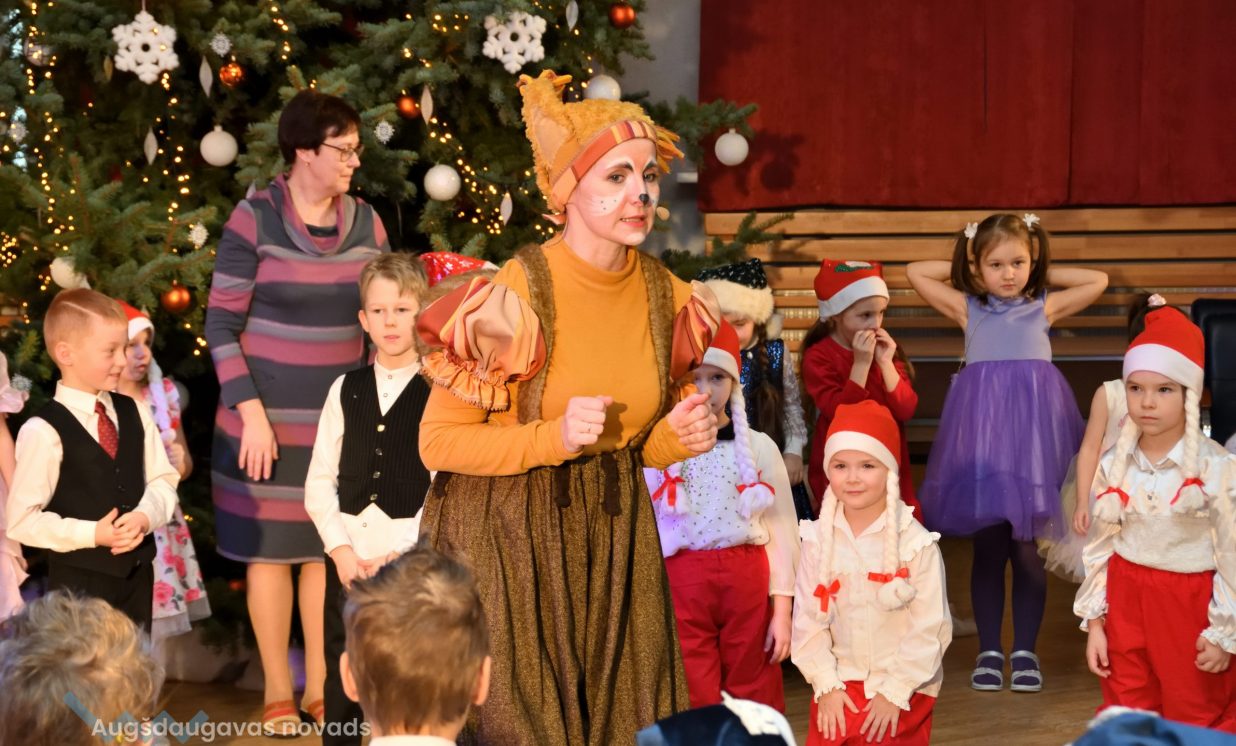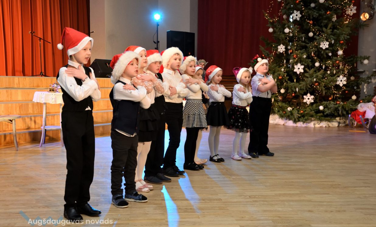 Nīcgales pirmsskolas izglītības iestādes ”Sprīdītis” audzēkņi priecēja ar dziesmu “Ziemassvētku brīnums” (skolotāja Anastasija Lukašenoka), Biķernieku pamatskolas audzēkņi uzdejoja “Oira Ziemassvētkiem” (skolotāja Oksana Klimanska), Naujenes pirmsskolas izglītības iestādes “Rūķītis” audzēkņi uzbūra “Ziemassvētku smaržas” (skolotāja Tatjana Zviceviča), savukārt Vaboles vidusskolas pirmsskolas grupa rādīja, kā “Peles brauca dzirnavās” (skolotājas Benita Jukša un Anita Skrinda), Špoģu vidusskolas audzēkņi dziesmā “Muša Kuša” enerģiski izstāstīja mušas stāstu (skolotāja Amanda Šaršune), dejā “Vāverīte ezim teic” Salienas audzēkņi aicināja ežus dodies vākt krājumus (skolotāja Oksana Klimanska), savukārt muzikālu “Sveicienu no Meksikas” bija sagatavojuši Sventes vidusskolas programmas īstenošanas vietas Medumi pirmsskolas audzēkņi (skolotāja Nataļja Ogurcova), dziesmu “Ziemassvētku vecītis” izdziedāja Zemgales vidusskolas audzēkņi (skolotājas Ludmila Lukjanova, Jeļena Andrejeva), savukārt Lāču pamatskolas pirmsskolas grupa rādīja “Sniegpārsliņas rotaļu” (skolotāja Anastasija Lukašenoka) un Laucesas pamatskolas audzēkņi uzdejoja vienu lustīgu “Rūķu deju” (skolotāja Maruta Kuzmina).