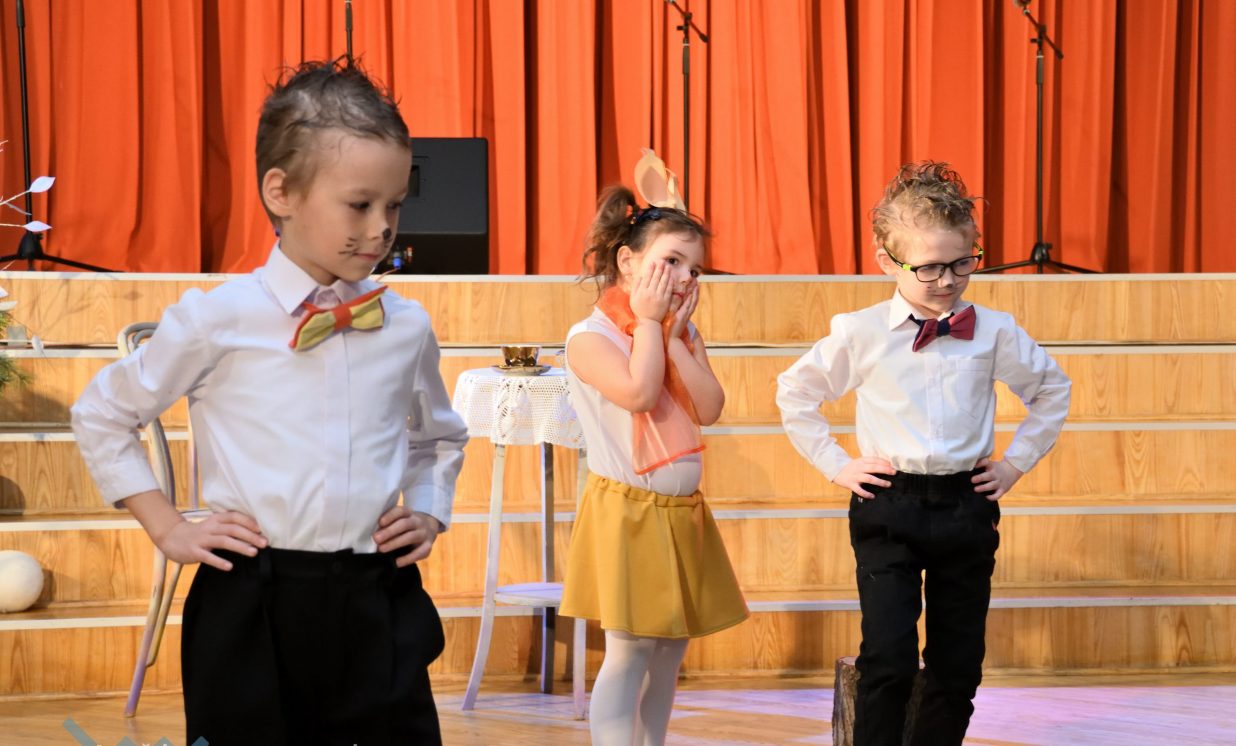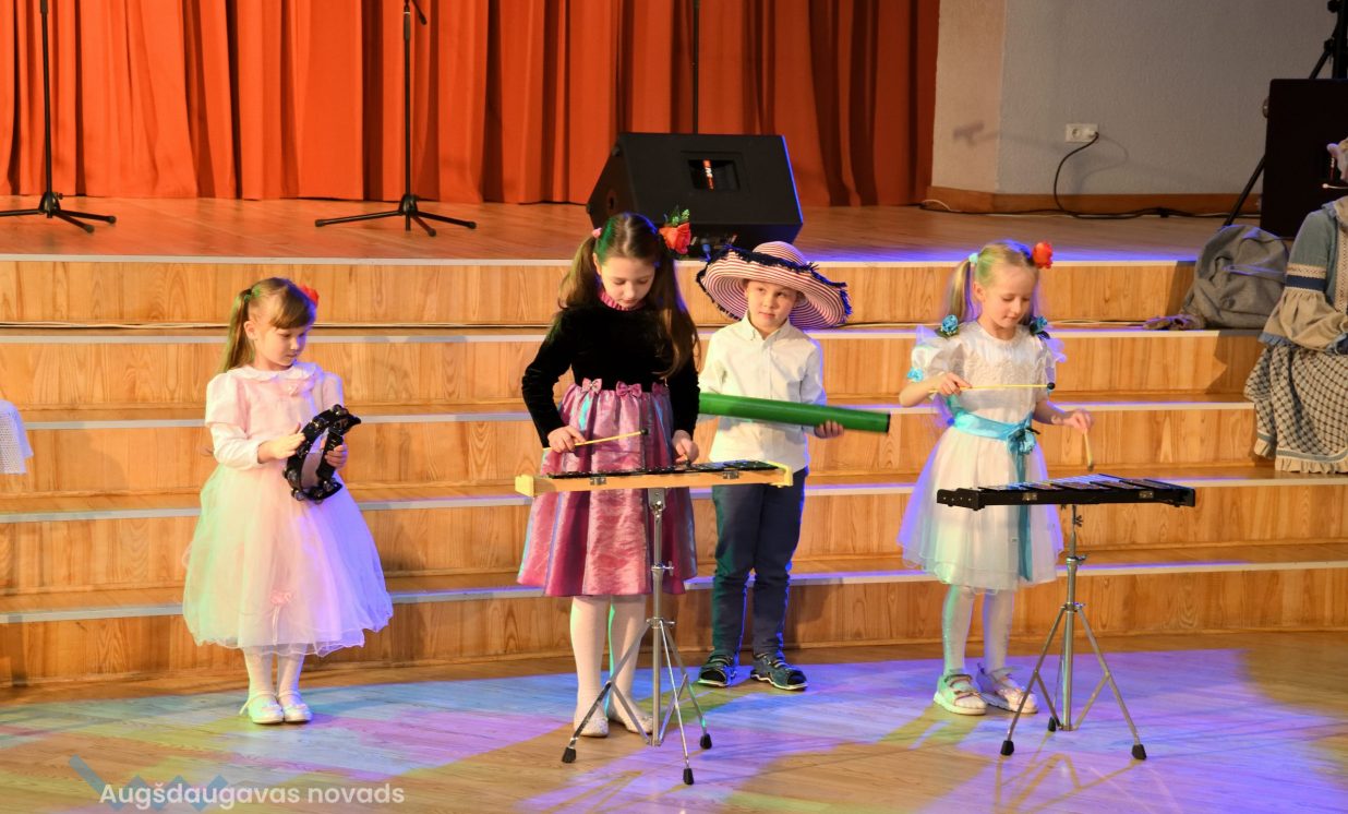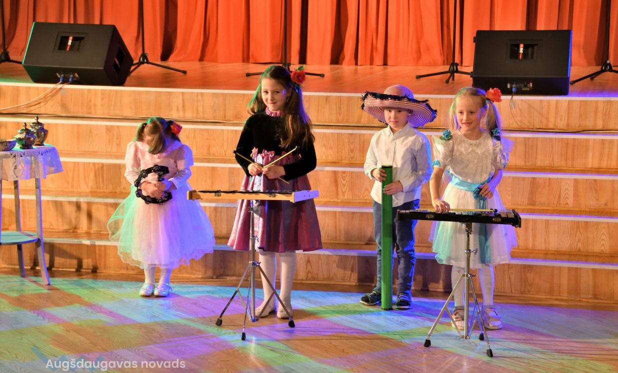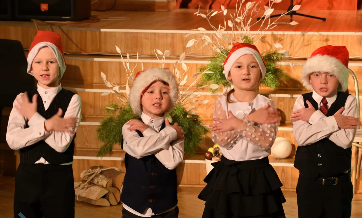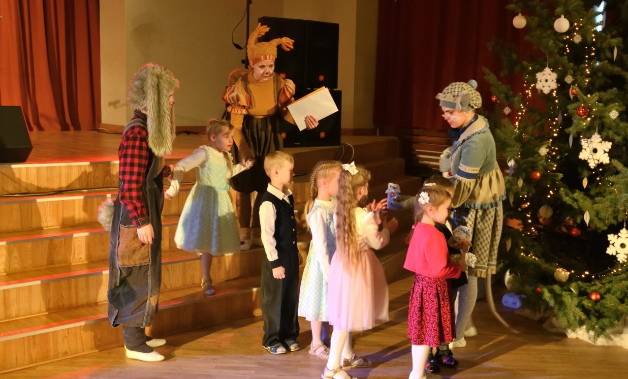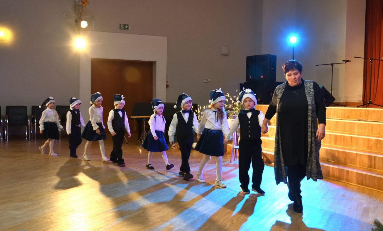 Nīcgales pirmsskolas izglītības iestādes ”Sprīdītis” audzēkņi priecēja ar dziesmu “Ziemassvētku brīnums” (skolotāja Anastasija Lukašenoka), Biķernieku pamatskolas audzēkņi uzdejoja “Oira Ziemassvētkiem” (skolotāja Oksana Klimanska), Naujenes pirmsskolas izglītības iestādes “Rūķītis” audzēkņi uzbūra “Ziemassvētku smaržas” (skolotāja Tatjana Zviceviča), savukārt Vaboles vidusskolas pirmsskolas grupa rādīja, kā “Peles brauca dzirnavās” (skolotājas Benita Jukša un Anita Skrinda), Špoģu vidusskolas audzēkņi dziesmā “Muša Kuša” enerģiski izstāstīja mušas stāstu (skolotāja Amanda Šaršune), dejā “Vāverīte ezim teic” Salienas audzēkņi aicināja ežus dodies vākt krājumus (skolotāja Oksana Klimanska), savukārt muzikālu “Sveicienu no Meksikas” bija sagatavojuši Sventes vidusskolas programmas īstenošanas vietas Medumi pirmsskolas audzēkņi (skolotāja Nataļja Ogurcova), dziesmu “Ziemassvētku vecītis” izdziedāja Zemgales vidusskolas audzēkņi (skolotājas Ludmila Lukjanova, Jeļena Andrejeva), savukārt Lāču pamatskolas pirmsskolas grupa rādīja “Sniegpārsliņas rotaļu” (skolotāja Anastasija Lukašenoka) un Laucesas pamatskolas audzēkņi uzdejoja vienu lustīgu “Rūķu deju” (skolotāja Maruta Kuzmina).
