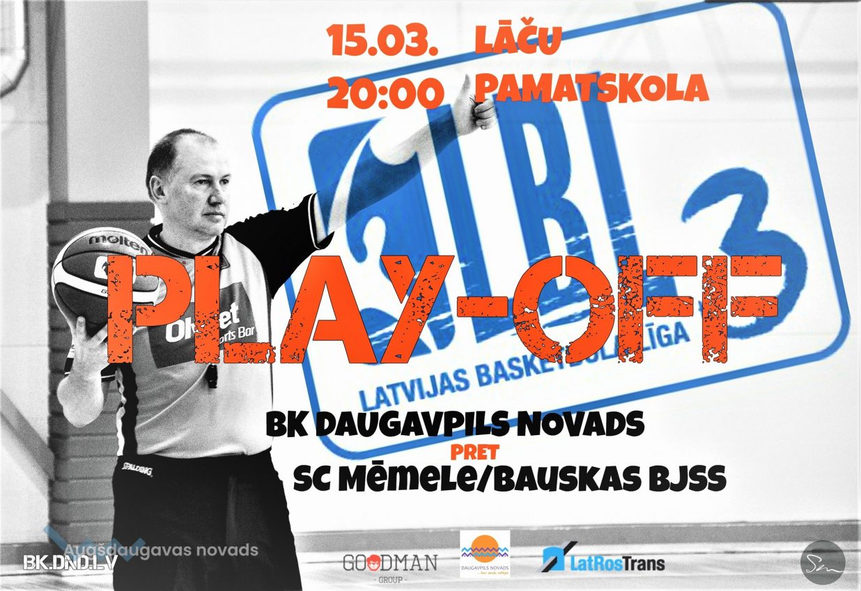 15.martā plkst. 20:00 Lāču pamatskolā notiks Play-Off spēle "BK Daugavpils novads - SC Mēmele/Bauskas BJSS".