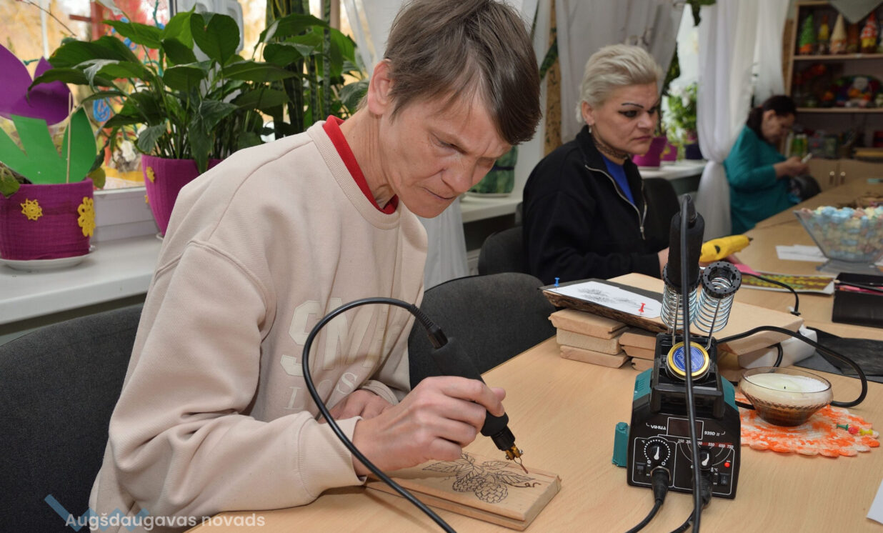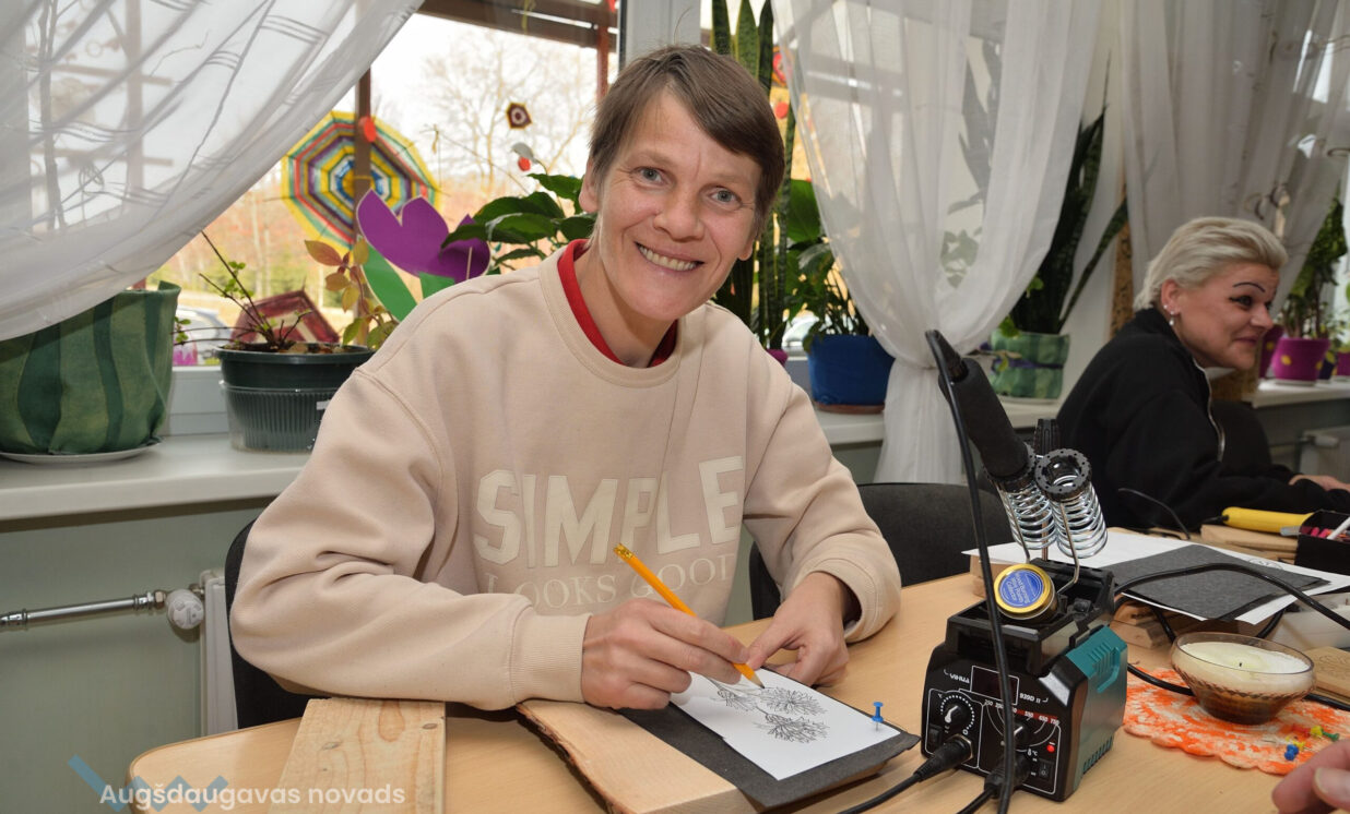 Larisa atzīst, ka viņai centrā patīk dažādas nodarbības – zīmēšana, pīšana, iededzināšana kokā. Centra darbinieki labi izturas un visu iemāca. “Vajag attīstīt sevi, savas smadzenes. Te arī pasākumus mēs svinam, dzimšanas dienas notiek, atvedam kaut ko garšīgu, uzcienājam savus draugus, kopā svinam,” teic Larisa.