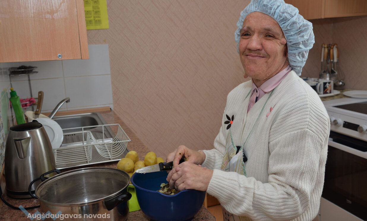 Rosīties virtuvē ļoti patīk klientei Valijai Pudānei. Viņa ar lielu rūpību mizo kartupeļus salātiem, taču ar prieku iesaistās jebkurās citās nodarbībās. Tieši šeit Valija satikusi savu sirdsdraugu Jāni. Uz centru Valija dodas, lai satiktu draugus un iesaistītos nodarbībās. “Mēs ēst gatavojam, man arī patīk krāsot, zīmēt, adīt. Te ir labi darbinieki, var parunāt, izstāstīt, kas uz sirds. Man ir draugs Jānis. Man viņš ir vismīļākais cilvēks. Es viņu ļoti žēloju.”