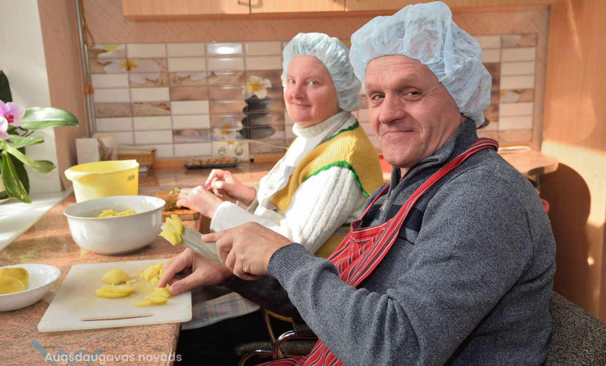 Valērijs Filipovs ir dienas centra dvēsele, vienmēr smaidīgs, joko un uzjautrina pārējos. Vīrietis stāsta, ka viņam ļoti patīk virtuves nodarbības, iemācījies gatavot kartupeļu pankūkas. “Es esmu ļoti paklausīgs, aktīvs, lustīgs, man patīk humors. Te ļoti labi darbinieki, labi izturas pret mani, viss man ļoti patīk.”