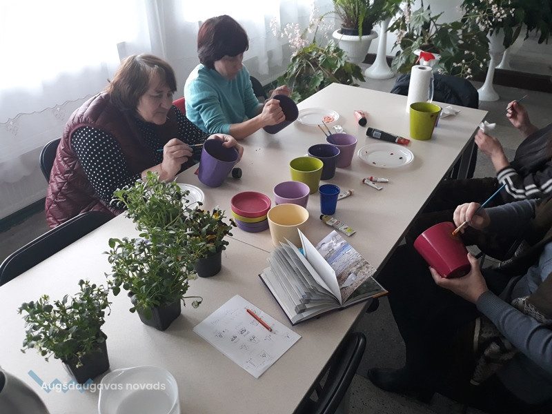 Trešajā dienā iedzīvotājus gaidīja radoša darbnīcā “Dārza dekori” kuras laikā klātesošie apgleznoja puķu podus ar dažādām putnu sejiņām un iestādīja skaistus pavasara ziedus.