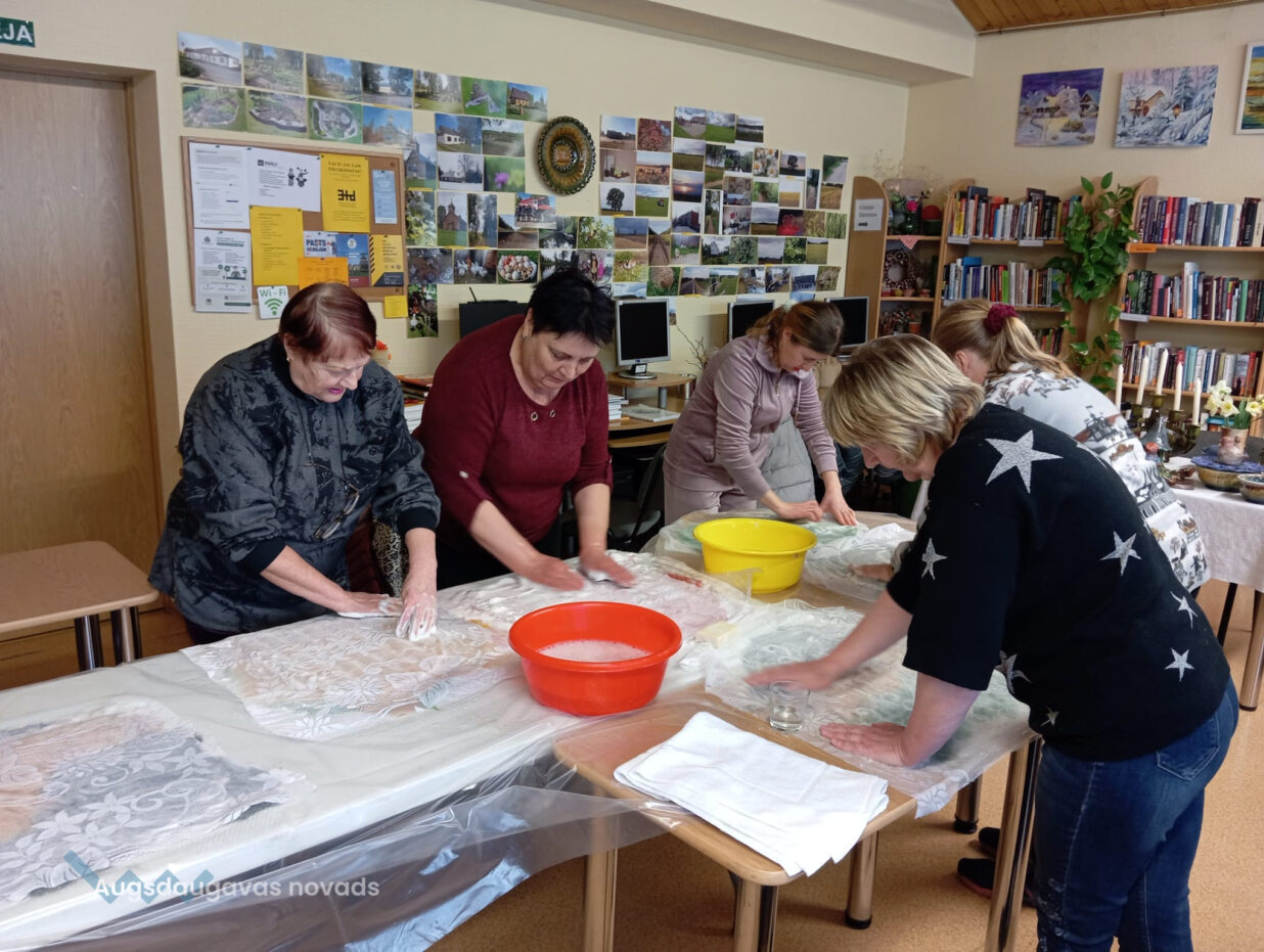 Maļinovas pagasta bibliotēkā 15. aprīlī pulcējās aktīvie pagasta iedzīvotāji uz radošu darbnīcu, lai no aitas vilnas filcētu pirts cepures slapjajā tehnikā. Darbā izmantojām vilnas kārsumu speciāli paredzētu šim procesam. Darbnīcas dalībnieki izbaudīja filcēšanas procesu līdz slapjām mugurām, bet atmosfēra valdīja ļoti pozitīva un darbs veicās.