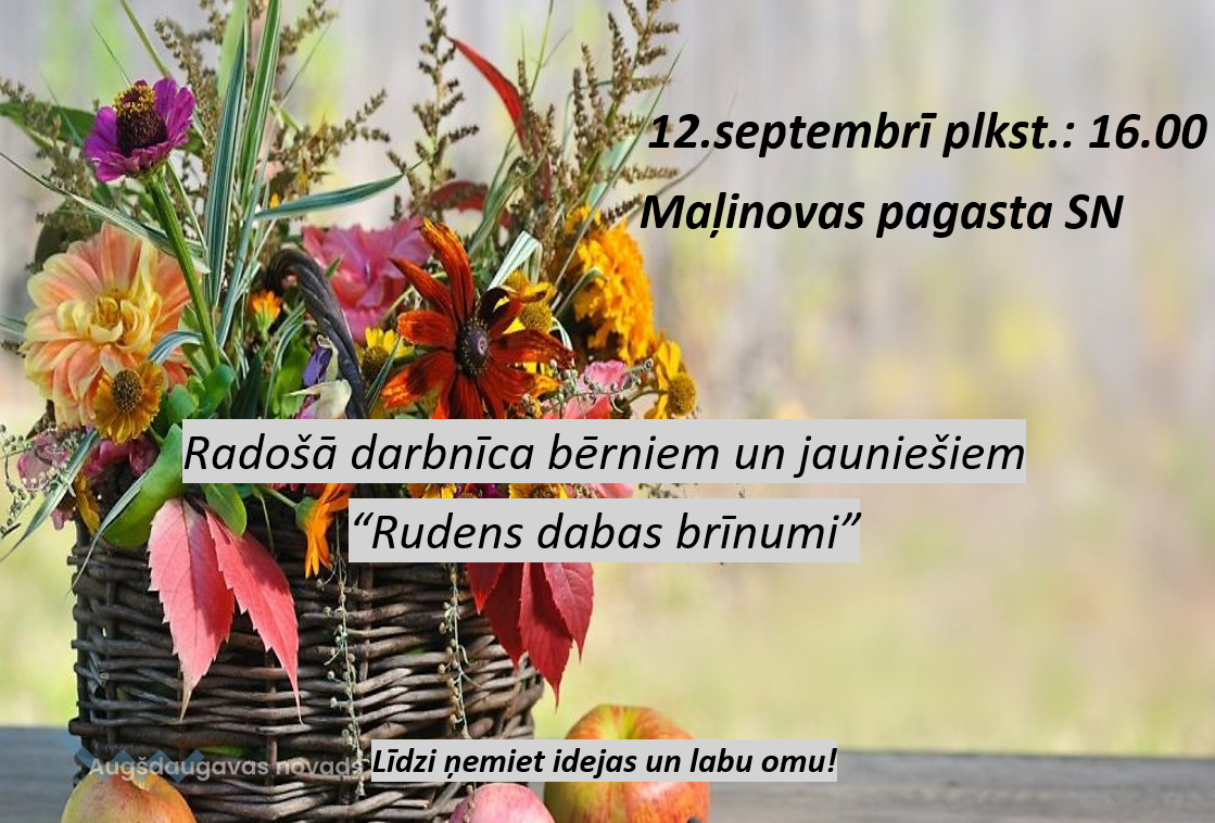 12. septembrī plkst. 16.00 Maļinovas pagasta saieta namā notiks radošā darbnīca bērniem un jauniešiem "Rudens dabas brīnumi".