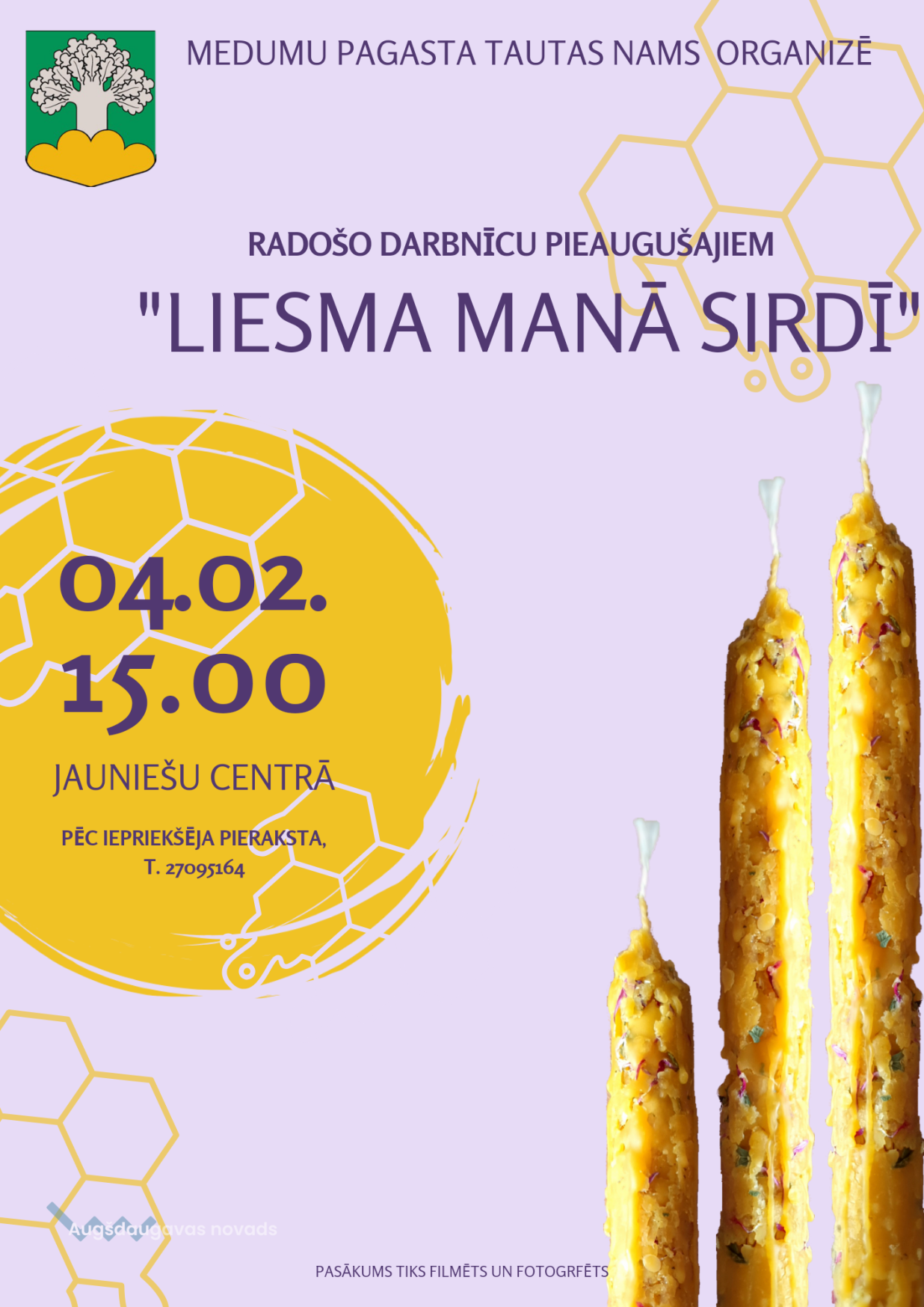Medumu pagasta Tautas nams aicina pieaugušos uz smaržīgo vaska sveču izgatavošanas darbnīcu "Liesma manā sirdī".