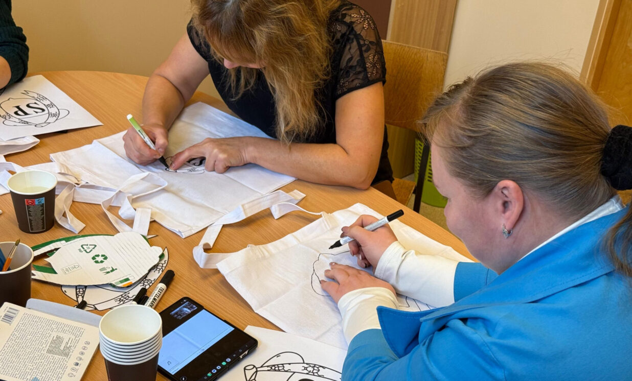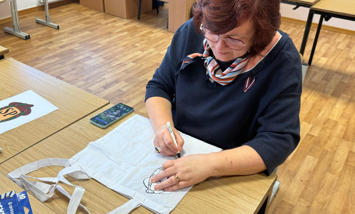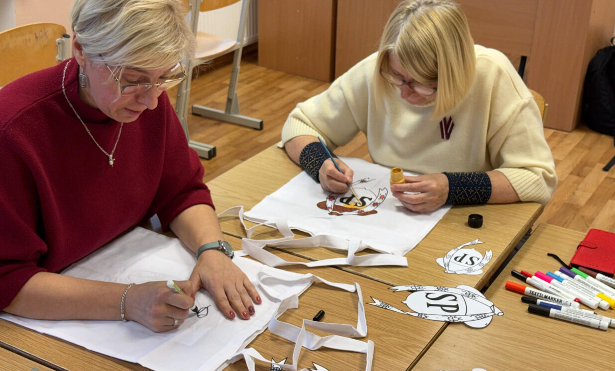 Nodarbības laikā skolotāji kopā ar skolēnu pašpārvaldes pārstāvjiem apgleznoja auduma maisiņus, izmantojot skolēnu pašpārvaldes logotipu, kas ieguva uzvaru konkursā “Skolēnu pašpārvaldes logotipa izstrāde”. Šī aktivitāte deva iespēju skolotājiem radoši izpausties un vienlaikus vizuāli popularizēt skolēnu pašpārvaldes identitāti.