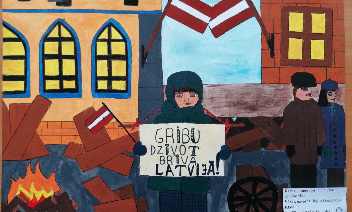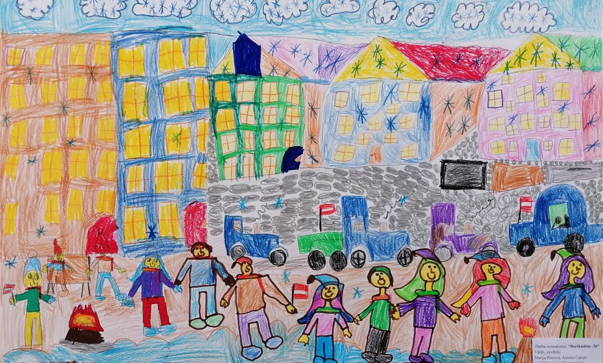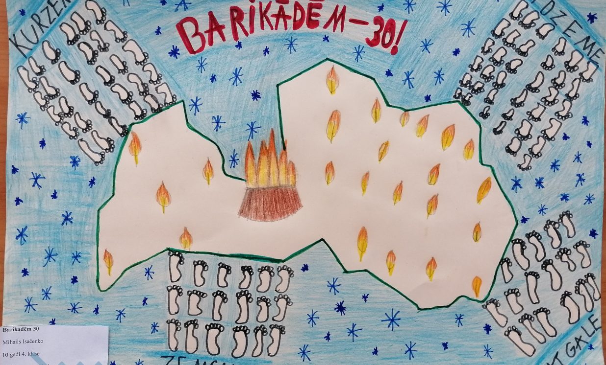 Šogad janvārī aprit 30 gadi kopš 1991. gada janvāra barikādēm. Atceroties šos notikumus, Daugavpils novada domes Izglītības pārvalde skolēniem rīkoja radošo darbu konkursu “Barikādēm-30” ar mērķi audzināt bērnos un jauniešos patriotisma jūtas, veicināt pilsonisko līdzdalību un stiprināt vēsturisko atmiņu 1991. gada Barikāžu notikumu izzināšanā un piemiņas saglabāšanā. Konkursam četrās vecuma grupās tika iesniegti 25 darbi: 19 zīmējumi, 2 fotokolāžas, 2 pārdomas, 1 atmiņu stāsts un 1 intervija. Katrā darbā var just bērna, jaunieša personīgo skatījumu uz mūsu valstij svarīgiem notikumiem, kas risinājās pirms 30 gadiem. Ar konkursa rezultātiem var iepazīties šeit: https://www.daugavpilsnovads.lv/berni-un-jauniesi-savos-darbos-atspoguloja-barikazu-temu/ Paldies visiem dalībniekiem par ieguldīto darbu un skolotājiem par atbalstu un padomu došanu! Ņemot vērā epidemioloģisko situāciju valstī, izstāde klātienē nebūs pieejama. Piedāvājam iepazīt radošo darbu stāstus un aizceļot laikā virtuāli. Konkursa darbi