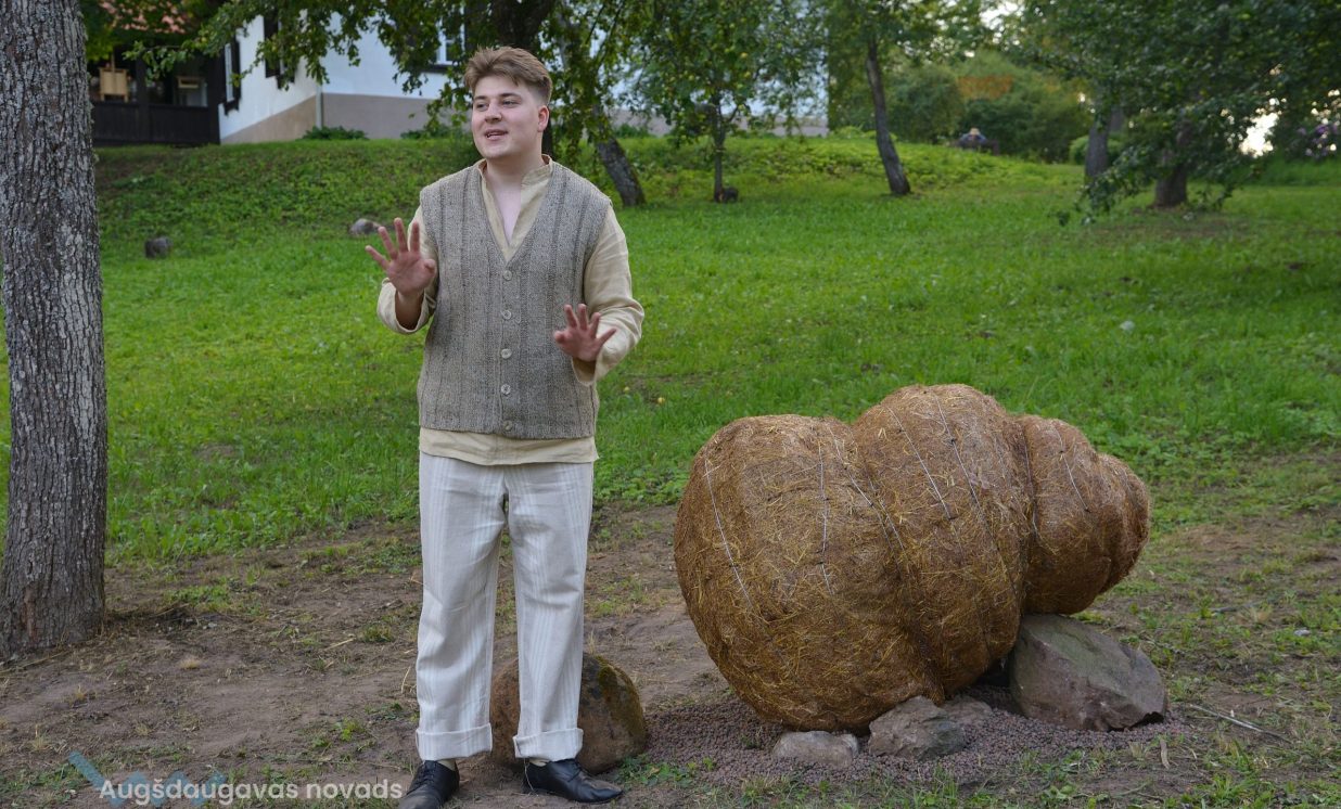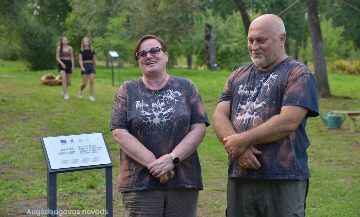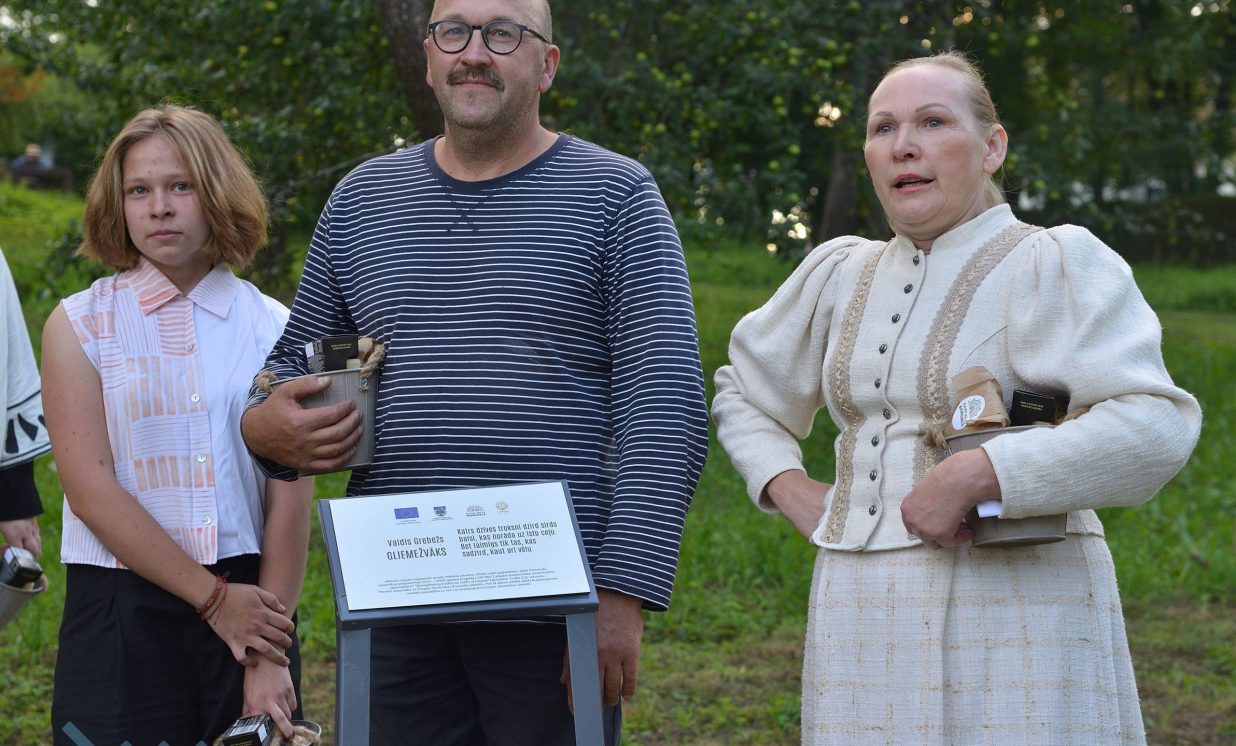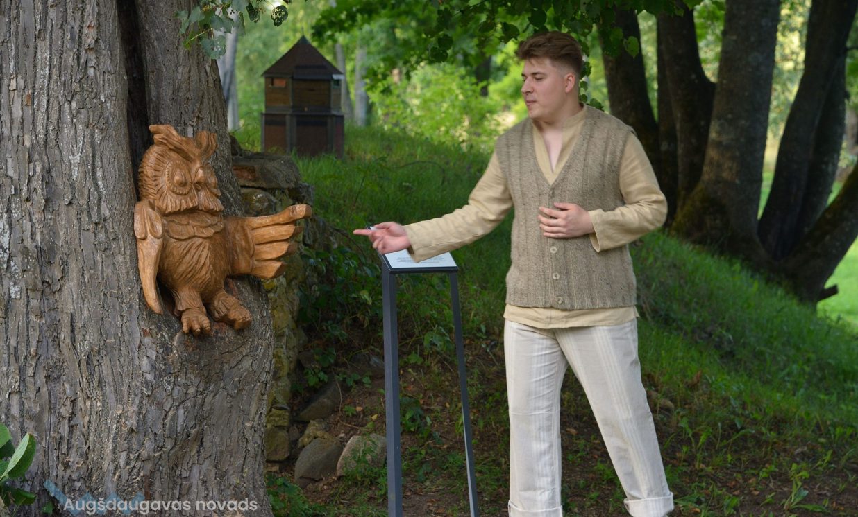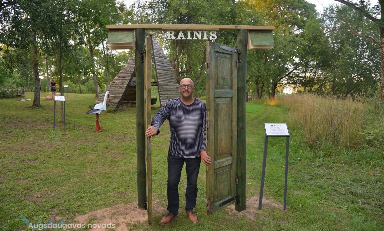 Visvairāk darbu plenērā ir radījis Špoģu Mūzikas un mākslas skolas pasniedzējs Valdis Grebežs, kurš plenērā iesaistījis arī savu audzēkni Darju Adahovsku. Valdis atzīst, ka Rainis ir Latvijas zīmols, arī pašam patīk Raiņa dzeja. Šis gan viņam bijis pirmais plenērs, līdz ar to arī liels izaicinājums, jo jāpierāda pašam sev un citiem, uz ko esi spējīgs. Valdis izveidojis sajūtu taku, ko basām kājām var izstaigāt lieli un mazi. Pašam vismīļākais objekts ir vārti ar senām durvīm, kas nāk no pašas Raiņa mājas un ieguvušas jaunu vizuālo tēlu meistara rokās. Pielietojot jaunu tehniku, Valdis radījis gliemeža skulptūru, no kuras skan mūzika. Liels izaicinājums bijis izveidot kurmja alu ar lūku. Bija jāizdomā sīkas nianses, lai objekts dzīvotu visos gadalaikos. Paša kurmja izveidē viņš iesaistīja savu audzēkni Darju un neslēpj sajūsmu, ka beidzot pēc ilgiem gadiem izjūt milzu gandarījumu, redzot savam darbam turpinātāju. “Nekad nedomāju, ka mans pēctecis varētu būt meitene. Viņa ideāli veido, strādā ar gāzbetonu. Apbrīnoju, kā viņa to kurmi dabūja gatavu. Viņai jau tagad ir tēlnieka domāšana, un es paredzu viņai lielu nākotni. Ceru, ka šis starts viņu iedvesmos,” saka Valdis Grebežs. Darja Adahovska nupat pabeigusi Špoģu mākslas skolu un domā, ka ar mākslu noteikti būs saistība tālākajā dzīvē, bet pagaidām meitene nezina, vai tā būs profesionāla nodarbošanās vai vaļasprieks, jo pašai ļoti patīk arī matemātika. Darja atzīst, ka guvusi milzīgu pieredzi, strādājot kopā ar spēcīgiem māksliniekiem, turklāt viņai bijusi iespēja izbaudīt plenēra radošo atmosfēru: “Man tās būs šīs vasaras spilgtākās atmiņas.”