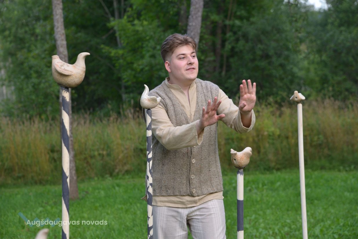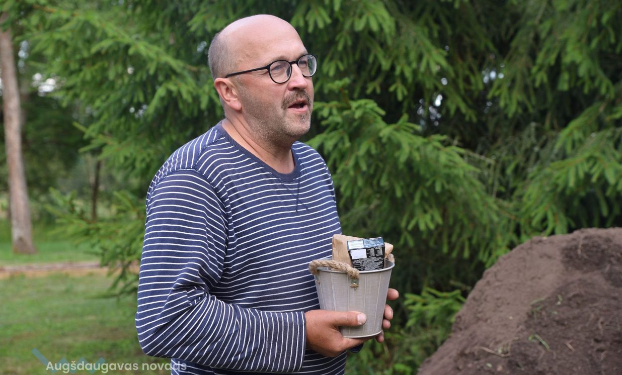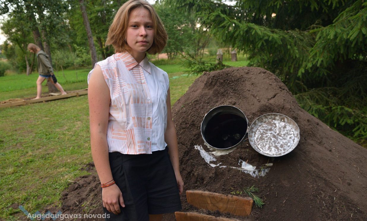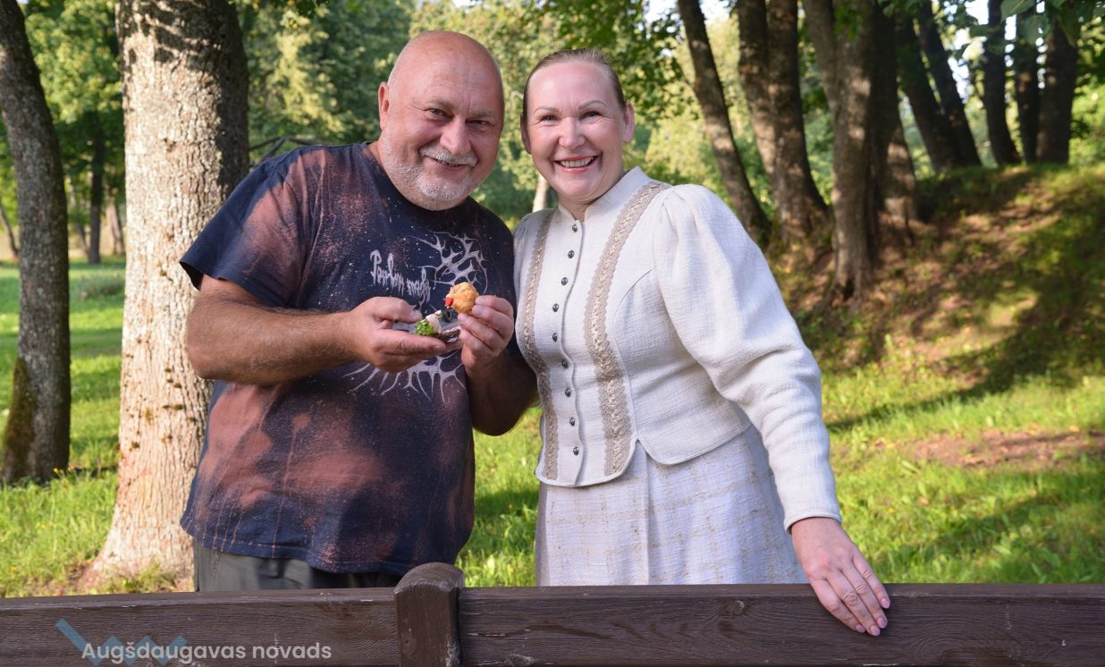 Visvairāk darbu plenērā ir radījis Špoģu Mūzikas un mākslas skolas pasniedzējs Valdis Grebežs, kurš plenērā iesaistījis arī savu audzēkni Darju Adahovsku. Valdis atzīst, ka Rainis ir Latvijas zīmols, arī pašam patīk Raiņa dzeja. Šis gan viņam bijis pirmais plenērs, līdz ar to arī liels izaicinājums, jo jāpierāda pašam sev un citiem, uz ko esi spējīgs. Valdis izveidojis sajūtu taku, ko basām kājām var izstaigāt lieli un mazi. Pašam vismīļākais objekts ir vārti ar senām durvīm, kas nāk no pašas Raiņa mājas un ieguvušas jaunu vizuālo tēlu meistara rokās. Pielietojot jaunu tehniku, Valdis radījis gliemeža skulptūru, no kuras skan mūzika. Liels izaicinājums bijis izveidot kurmja alu ar lūku. Bija jāizdomā sīkas nianses, lai objekts dzīvotu visos gadalaikos. Paša kurmja izveidē viņš iesaistīja savu audzēkni Darju un neslēpj sajūsmu, ka beidzot pēc ilgiem gadiem izjūt milzu gandarījumu, redzot savam darbam turpinātāju. “Nekad nedomāju, ka mans pēctecis varētu būt meitene. Viņa ideāli veido, strādā ar gāzbetonu. Apbrīnoju, kā viņa to kurmi dabūja gatavu. Viņai jau tagad ir tēlnieka domāšana, un es paredzu viņai lielu nākotni. Ceru, ka šis starts viņu iedvesmos,” saka Valdis Grebežs. Darja Adahovska nupat pabeigusi Špoģu mākslas skolu un domā, ka ar mākslu noteikti būs saistība tālākajā dzīvē, bet pagaidām meitene nezina, vai tā būs profesionāla nodarbošanās vai vaļasprieks, jo pašai ļoti patīk arī matemātika. Darja atzīst, ka guvusi milzīgu pieredzi, strādājot kopā ar spēcīgiem māksliniekiem, turklāt viņai bijusi iespēja izbaudīt plenēra radošo atmosfēru: “Man tās būs šīs vasaras spilgtākās atmiņas.”
