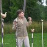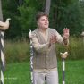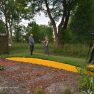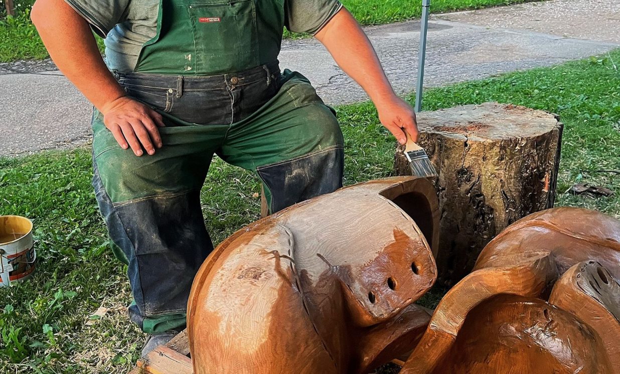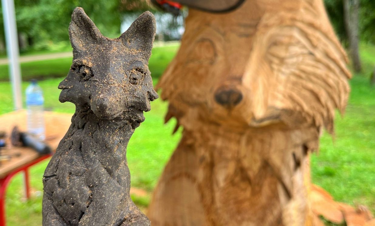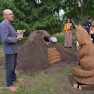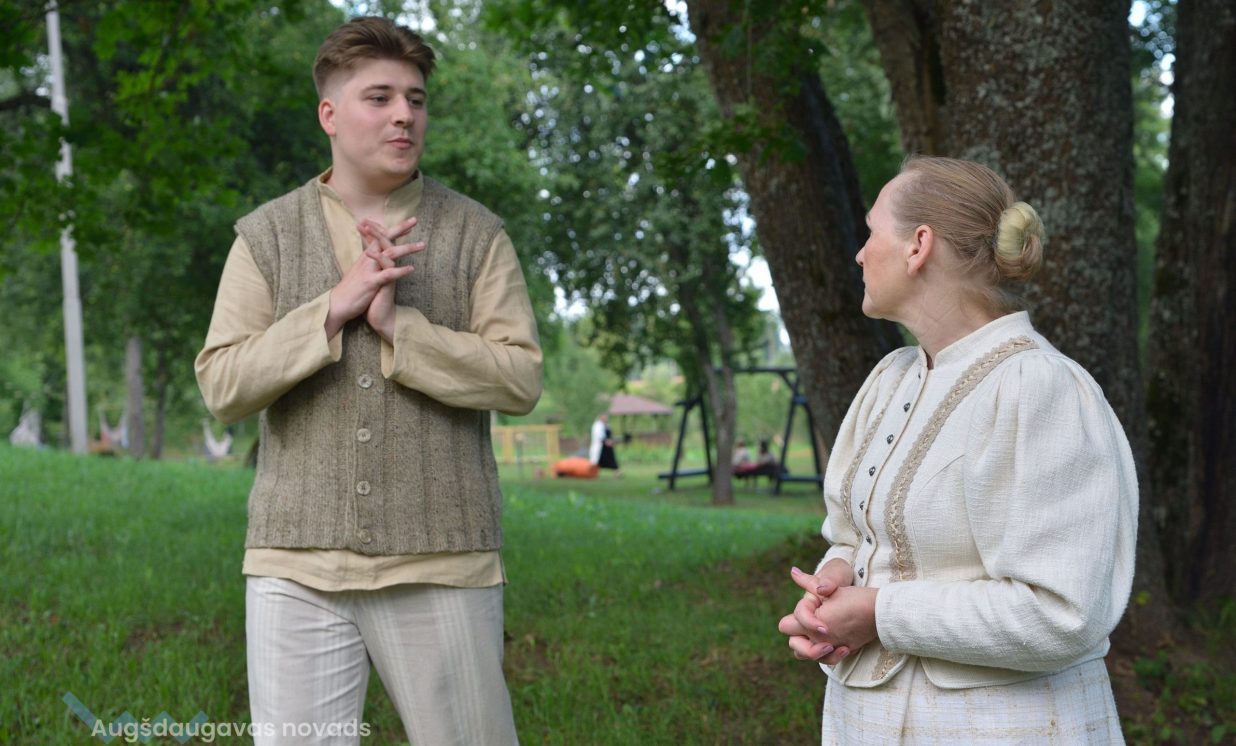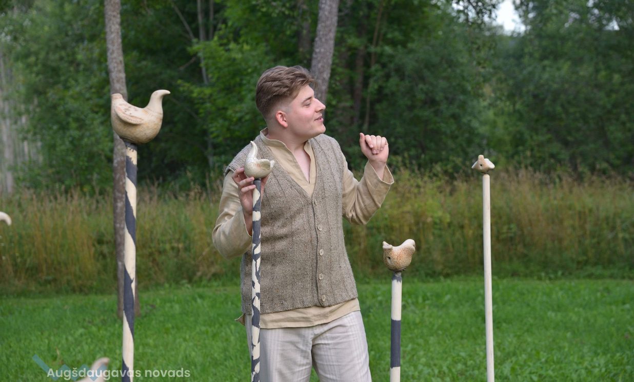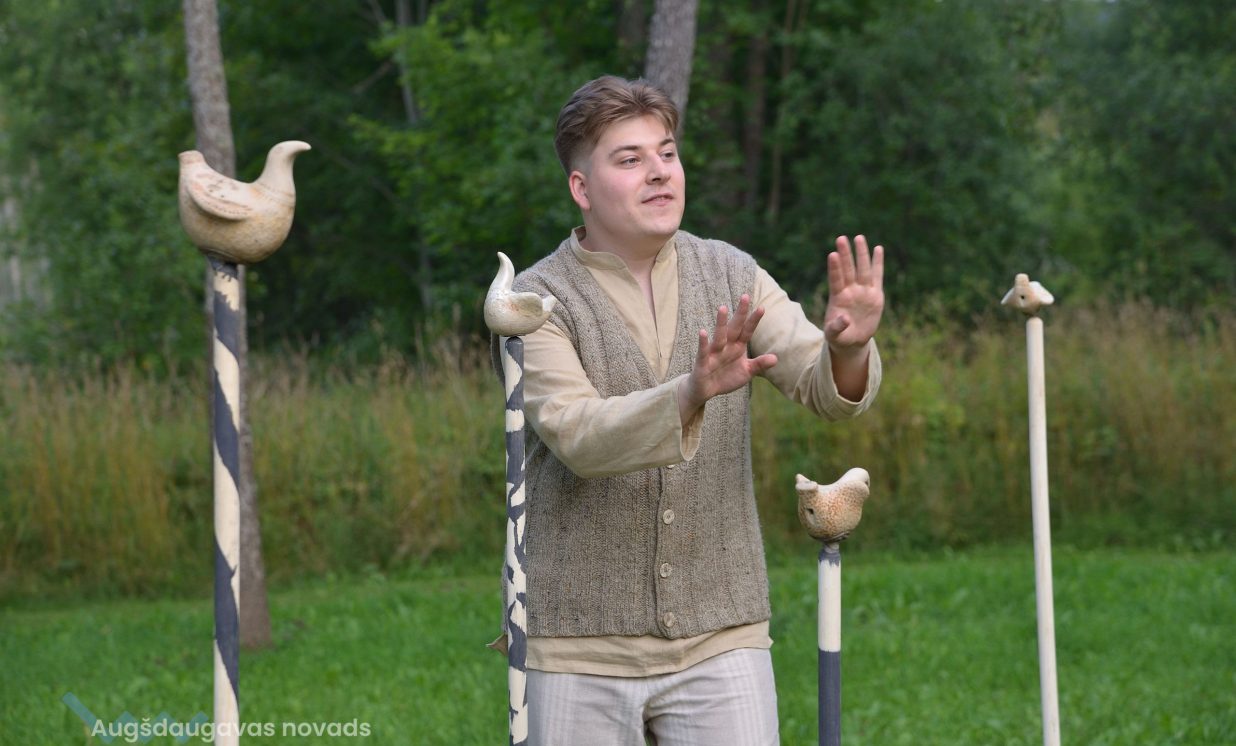 Visvairāk darbu plenērā ir radījis Špoģu Mūzikas un mākslas skolas pasniedzējs Valdis Grebežs, kurš plenērā iesaistījis arī savu audzēkni Darju Adahovsku. Valdis atzīst, ka Rainis ir Latvijas zīmols, arī pašam patīk Raiņa dzeja. Šis gan viņam bijis pirmais plenērs, līdz ar to arī liels izaicinājums, jo jāpierāda pašam sev un citiem, uz ko esi spējīgs. Valdis izveidojis sajūtu taku, ko basām kājām var izstaigāt lieli un mazi. Pašam vismīļākais objekts ir vārti ar senām durvīm, kas nāk no pašas Raiņa mājas un ieguvušas jaunu vizuālo tēlu meistara rokās. Pielietojot jaunu tehniku, Valdis radījis gliemeža skulptūru, no kuras skan mūzika. Liels izaicinājums bijis izveidot kurmja alu ar lūku. Bija jāizdomā sīkas nianses, lai objekts dzīvotu visos gadalaikos. Paša kurmja izveidē viņš iesaistīja savu audzēkni Darju un neslēpj sajūsmu, ka beidzot pēc ilgiem gadiem izjūt milzu gandarījumu, redzot savam darbam turpinātāju. “Nekad nedomāju, ka mans pēctecis varētu būt meitene. Viņa ideāli veido, strādā ar gāzbetonu. Apbrīnoju, kā viņa to kurmi dabūja gatavu. Viņai jau tagad ir tēlnieka domāšana, un es paredzu viņai lielu nākotni. Ceru, ka šis starts viņu iedvesmos,” saka Valdis Grebežs. Darja Adahovska nupat pabeigusi Špoģu mākslas skolu un domā, ka ar mākslu noteikti būs saistība tālākajā dzīvē, bet pagaidām meitene nezina, vai tā būs profesionāla nodarbošanās vai vaļasprieks, jo pašai ļoti patīk arī matemātika. Darja atzīst, ka guvusi milzīgu pieredzi, strādājot kopā ar spēcīgiem māksliniekiem, turklāt viņai bijusi iespēja izbaudīt plenēra radošo atmosfēru: “Man tās būs šīs vasaras spilgtākās atmiņas.”