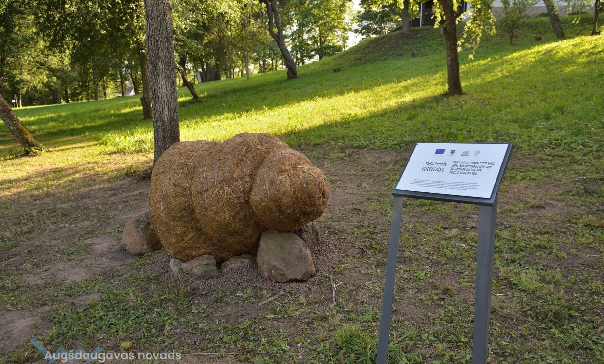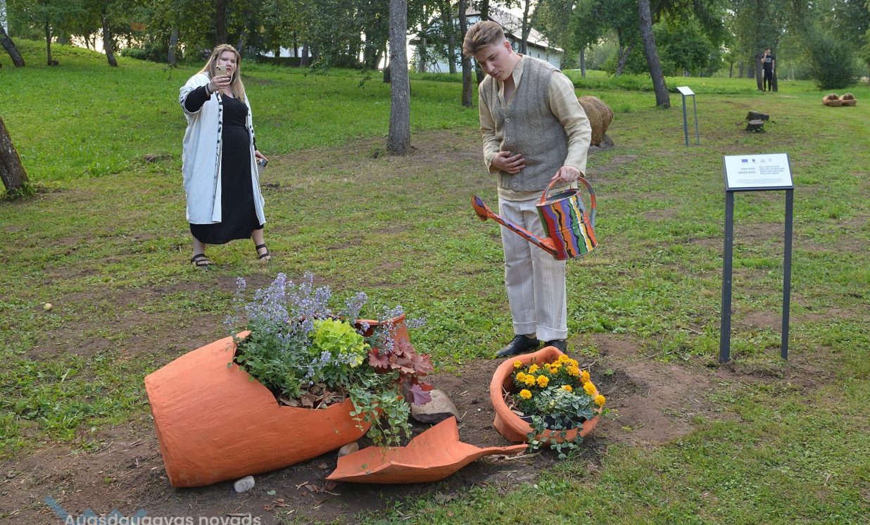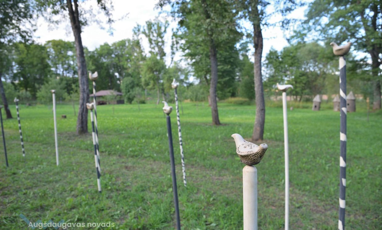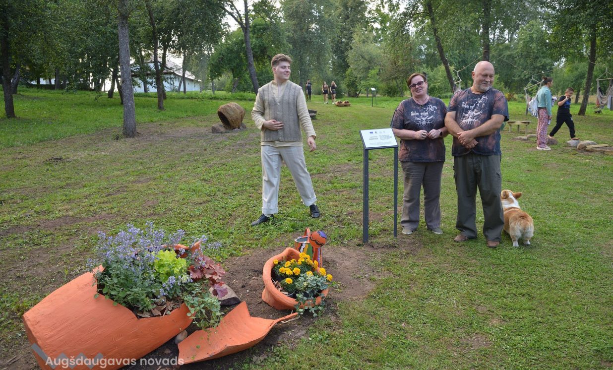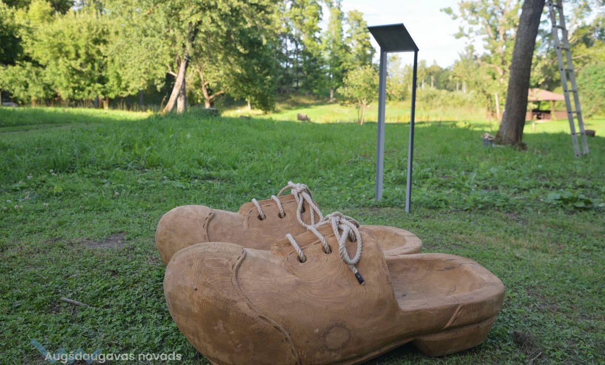 Pliekšānu dārzs nu ir papildināts ar vēl vienu Daugavpils mākslinieka Ivo Folkmaņa darbu “Gandris” – svēteli sarkanos zābakos, kas simbolizē mazā Žaniņa ienākšanu pasaulē. Pirms daudziem gadiem šeit mākslinieks kopā ar dzīvesbiedri Mairitu izveidojuši vides objektu – tiltiņu, te var aplūkot arī Ivo Folkmaņa veidoto vides objektu “Zelta zirgs”.