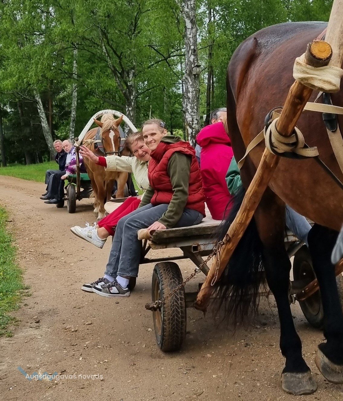 Tomēr īpaši klienti bija sajūsmā par reitterapijas nodarbībām Kaplavā. Tur viņi guva milzum daudz pozitīvu izjūtu un emociju gan braucot zirga mugurā, gan sēžot ratos un apbrīnojot vasarīgo dabu ar dzērvju klaigām. Daži no viņiem atcerējas bērnību, kad ar zirdziņu āra zemi, citi ar prieku baroja zirdziņus ar maizi un glāstīja siltus purnus, citiem bija nopietns pārbaudījums uzkāpt zirgam mugurā. Bet skaidrs ir viens – neviena vienaldzīga nebija. Uzdāvinātas kārtiņas ar zirgu attēliem viņiem bija arī īpašas dāvanas. Tādēļ klientu vārdā gribam pateikt milzīgu paldies saimniecības “Klajumi” saimniekiem un pakalpojuma organizētājiem par šo brīnišķīgo iespēju.
