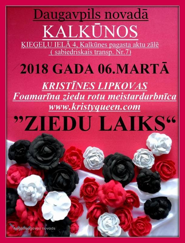 6. martā plkst.16.30 “Ziedu laiks” foamarīna ziedu rotu meistardarbnīca Kalkūnē!