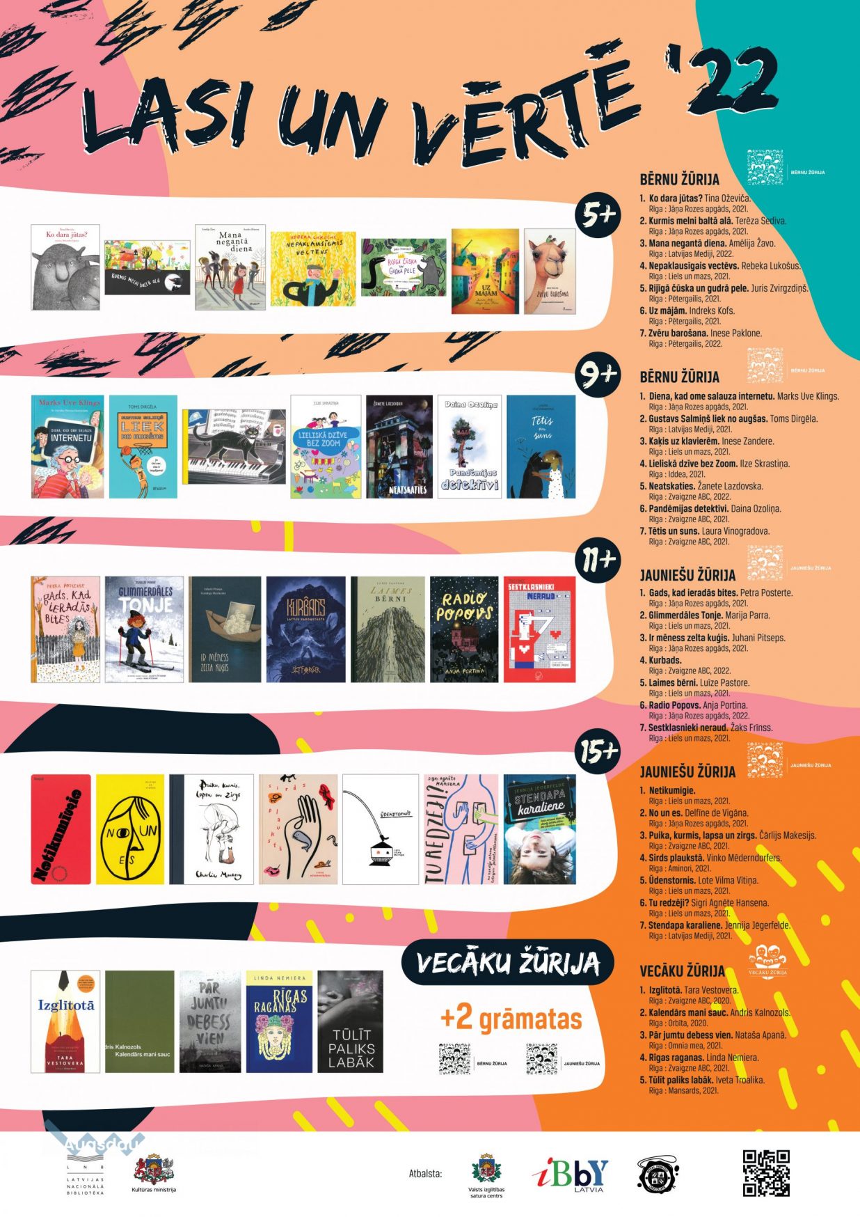 Latvijas Nacionālās bibliotēkas izveidotā un vadītā lasīšanas veicināšanas programma “Bērnu, jauniešu un vecāku žūrija” notiek jau 22.gadu. Šogad katrā vecumgrupā ir septiņas grāmatas, bet Vecāku žūrijas kolekcijā – piecas.