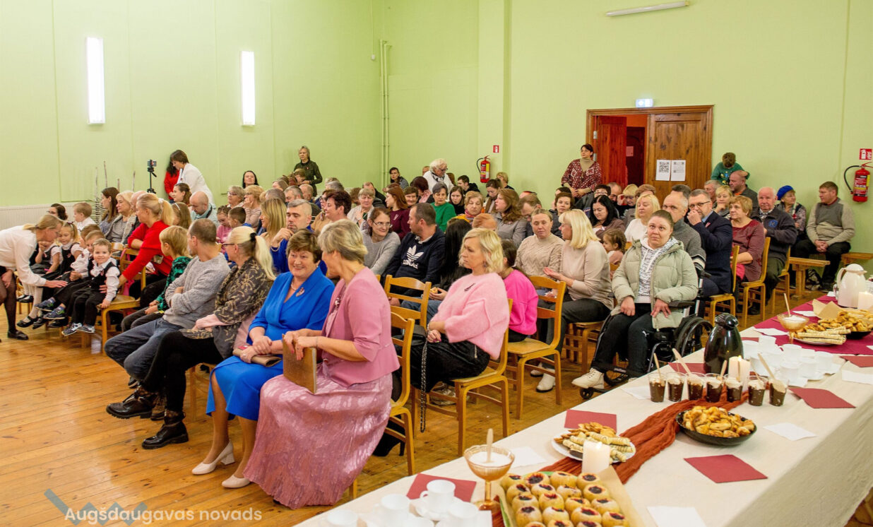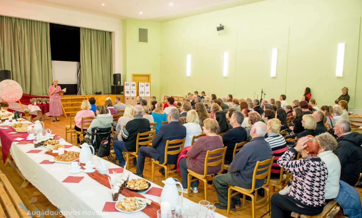 Brigita Vasiļevska, Sventes apvienības pārvaldes vadītāja pasākuma dalībniekus uzrunāja ar dzejnieka L. Vāczemnieka vārdiem “Mums ticis viszilākais ezers un rudākais rudzu lauks …,” tas tik ļoti saskan ar Medumu pagasta ģeogrāfisko izvietojumu un dzīves moto. Pasākumā aicinājām arī Medumu pirmskolas izglītības iestādi ar deju un dziesmu, šis bija bērnu pirmais priekšnesums, bet visemocionālākais. Pirmo daļu noslēdzām ar ēnu teātri, ar pamācošu Poļu pasaku par naudu un laimes meklēšanu. Iepazināmies ar Viktora Petaško daiļradi izstādē “Saktu saktas rotājas”, tā būs pieejama Medumu Tautas nama foajē līdz 30. novembrim.