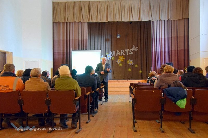 Tikšanās Salienas pagastā pulcēja kuplu iedzīvotāju skaitu, kuri noklausījās pagasta pārvaldes vadītāja Rišarda Jermaļonoka atskaiti par paveikto iepriekšējā gadā un uzdeva savus sasāpējušos jautājumus. Šobrīd Salienā dzīvo 664 iedzīvotāji, pagasts var pamatoti lepoties ar pozitīvu demogrāfisko bilanci – pērn piedzima 10 bērniņi, nomira 6 iedzīvotāji.