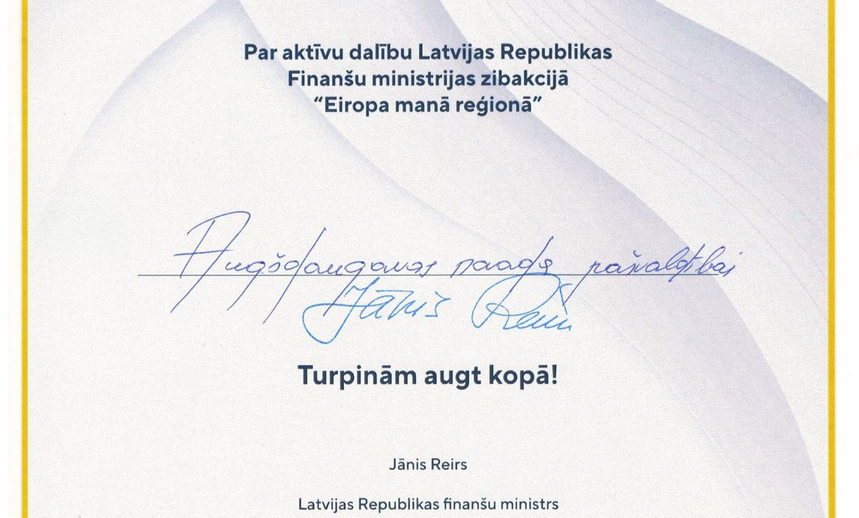 Saņemta Finanšu ministra Atzinība par dalību zibakcijā