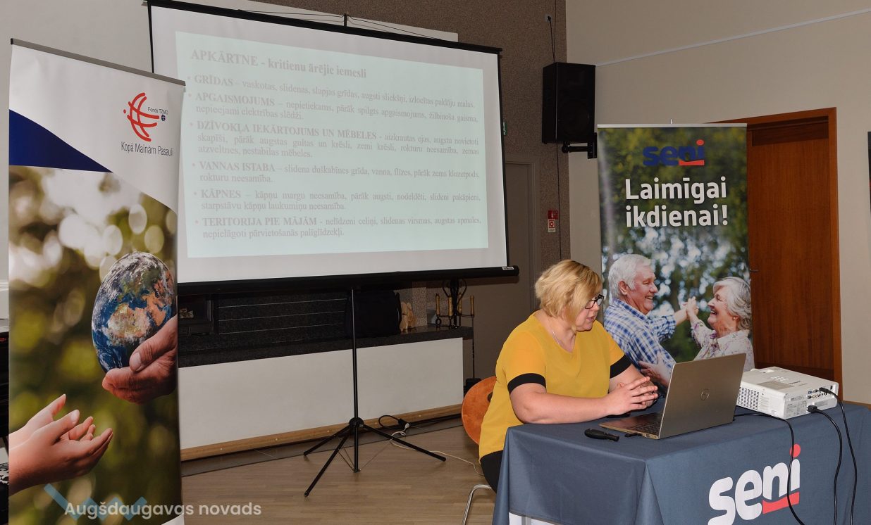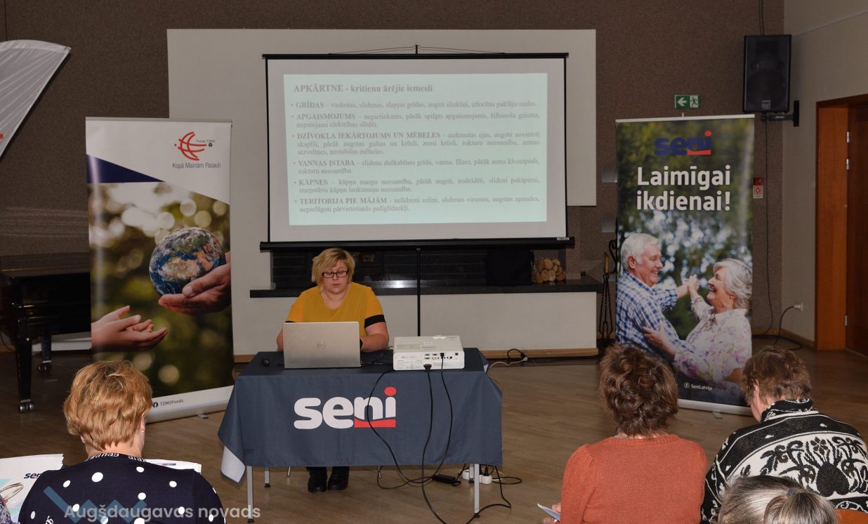 "TZMO Fonds Kopā mainām pasauli" valdes locekle Vija Mētra uzsver, ka šis seminārs domāts tieši iedzīvotājiem, kuri mājās rūpējas par saviem tuviniekiem, ilgstoši kopj gulošus, vecus, slimus un nespējīgus cilvēkus. “Seminārā runājam par visām aktuālām tēmām, nedaudz stāstam par mājas iekārtošanu, kam jāpievērš uzmanība, kā vērsties sociālajā dienestā un kāds atbalsts ir no valsts un pašvaldības. Bet galvenā ir praktiskā nodarbība, kur divas praktizējošas medicīnas māsas rāda un stāsta, kā rūpēties par tuvinieku mājas apstākļos, piemēram, kā gulošu cilvēku apsēdināt vai paēdināt. Kā atpazīt tos brīžus, kad steidzami jāgriežas pie mediķiem,” stāsta V. Mētra. Šie semināri notiek ar tehnisko palīglīdzekļu izplatītājiem, proti, šoreiz seminārā piedalījās SIA Palīglīdzekļu Parks, kas praktiskajai nodarbībai nodrošināja tehniskos palīglīdzekļus – funkcionālās gultas, ratiņkrēslus, staiguļus, ortopēdiskos matračus, podu uzlikas un citas svarīgas lietas, kas nepieciešamas cilvēku mājas aprūpē. Semināru atbalsta arī higiēnas preču zīmols Seni.