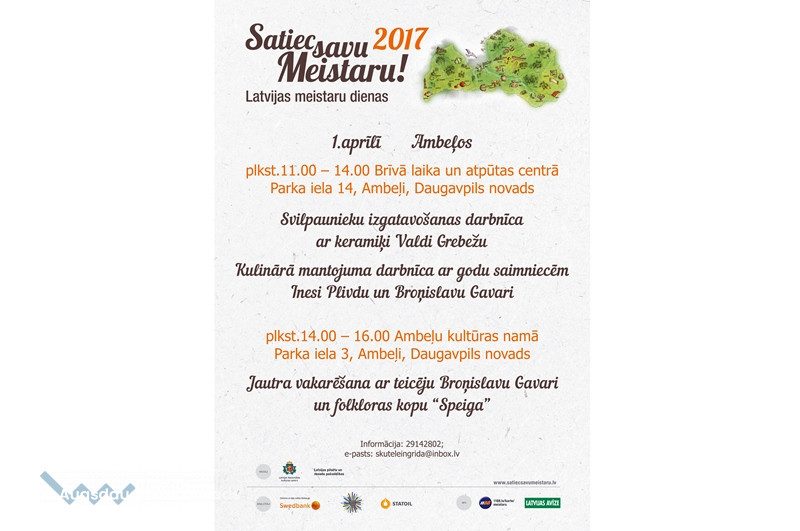 1.aprīlī no plkst. 11.00 līdz 16.00 Ambeļos norisināsies akcija "Satiec savu meistaru 2017". Vairāk informācijas afišā.