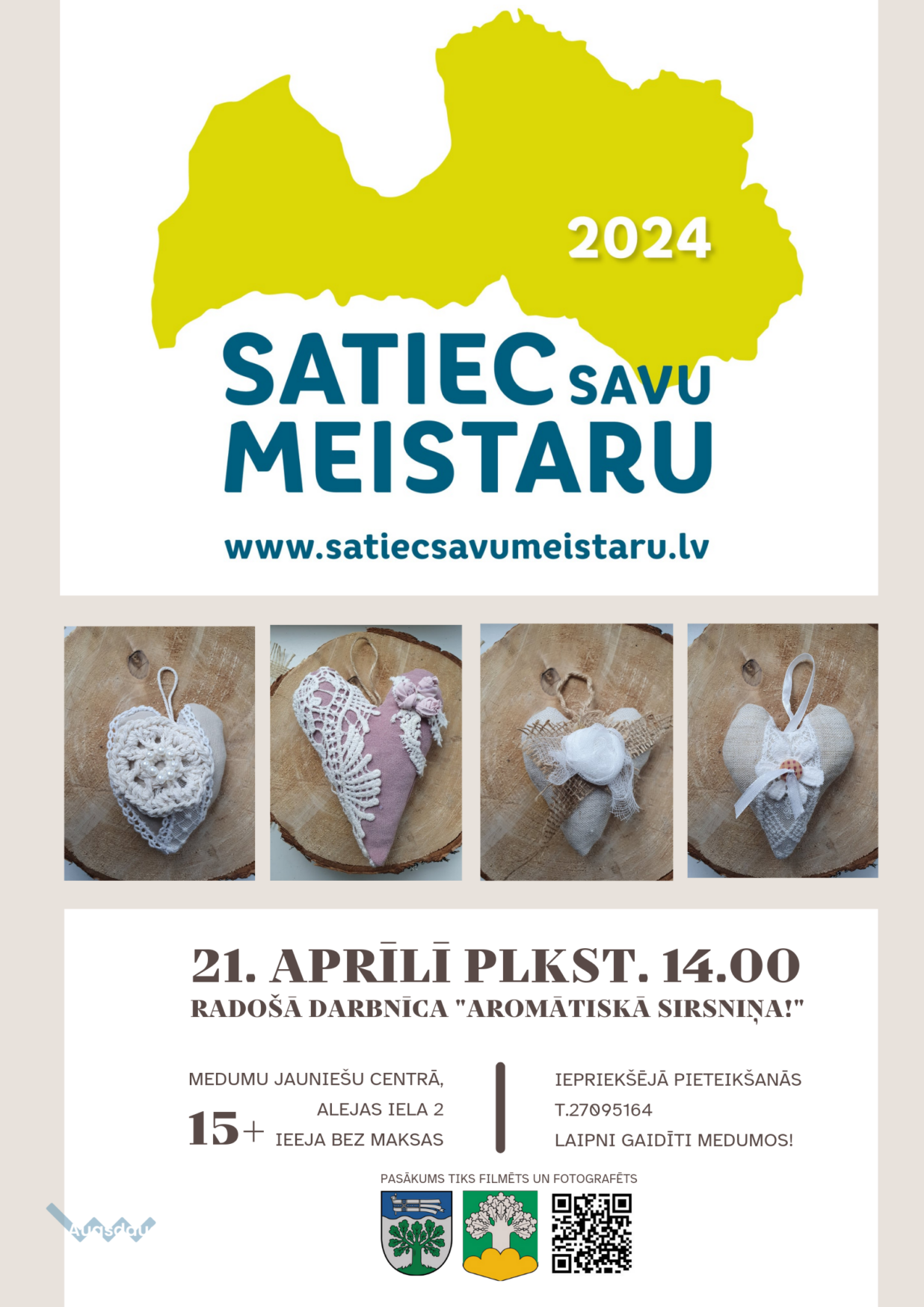 Akcijas “Satiec savu Meistaru!” ietvaros, 21. aprīlī plkst. 14:00 Medumu Jauniešu centrā notiks radošā darbnīca "Aromātiskā sirsniņa!".