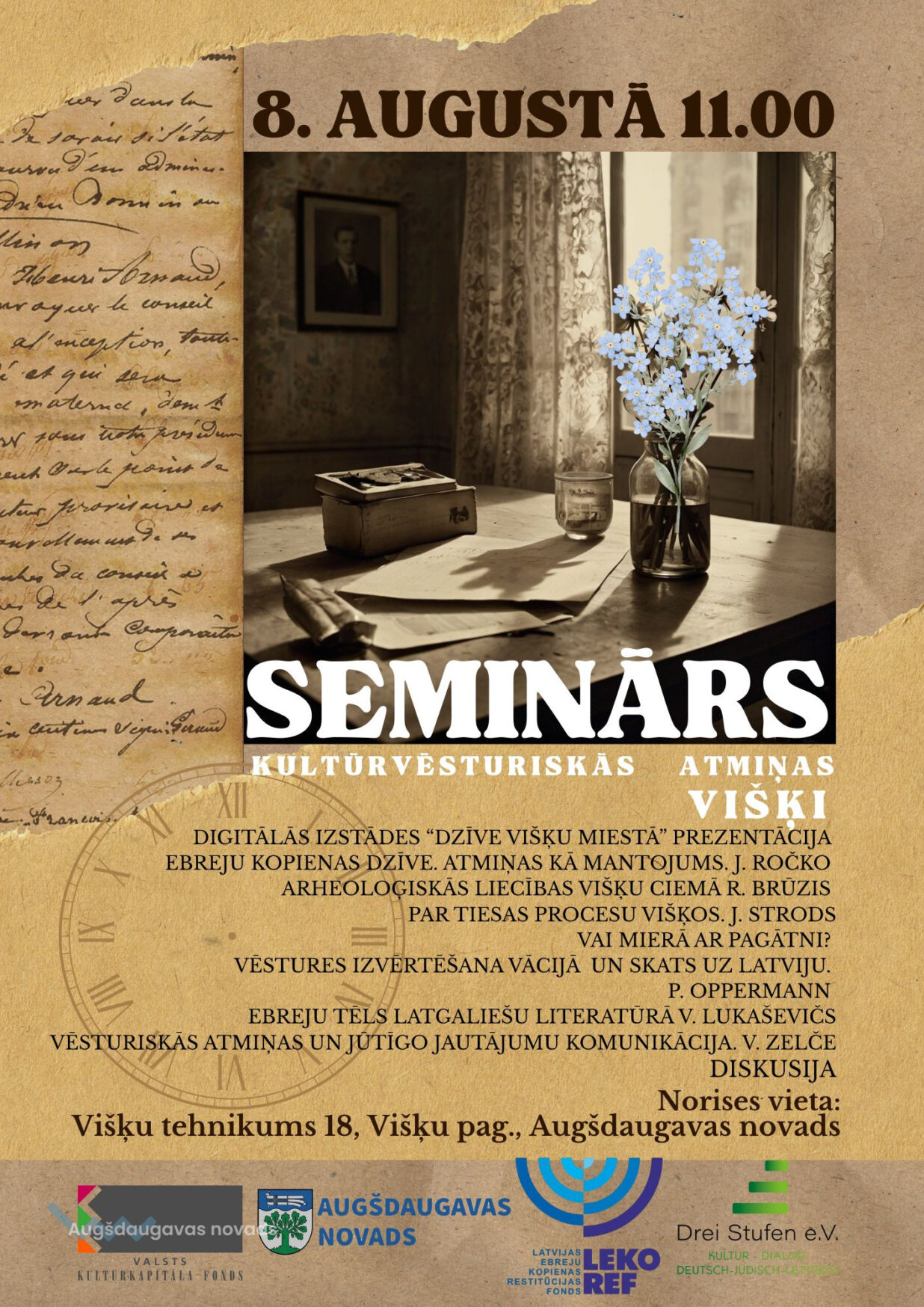 👤 Seminārā piedalīsies ievērojami pētnieki un viesi no Latvijas un Vācijas: • Vita Zelče • Valentīns Lukaševičs • Josifs Ročko • Rūdolfs Brūzis • Jānis Strods • Paula Opermane (vēsturniece no Vācijas) • Biedrības “Drei Stuffen” pārstāvji no Osnabrikas • Naujenes novadpētniecības muzejs prezentēs jauno digitālo izstādi “Dzīve Višķu miestā”