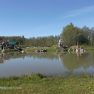 Mūsu ekskursija noslēdzās zirgu sētā “Klajumi” Kaplavas pagastā, Krāslavas novadā. Mūs laipni sagaidīja saimnieki Ilze un Viktors Stabulnieki. 30 hektāru lielajā, vectēva mantojumā atstātajā zemē, pa 20 gadiem viņi izveidoja zirgu sētu ar 14 zirgiem, mūsdienīgu stalli un citām piebūvēm. Ganībās pastaigājās skaistules Salda un Skanda. Tieši šīs ķēvītes vilka karieti, kuru varēja vērot Martas Ballē Daugavpils cietoksnī. Kopā ar Ilzi seniori izstaigāja Odu taku, uzzinot daudz interesanta par augiem un dzīvniekiem. Saimnieki viesus pacienāja ar garšīgu vitamīnu maltīti- zupu ar nātrēm un bērzu sulu.