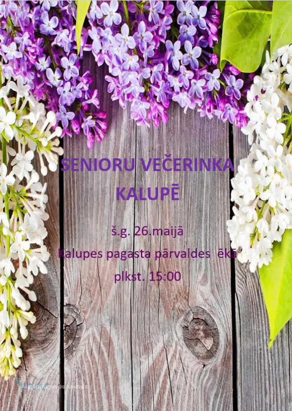 26. maijā plkst. 15.00 Kalupes pagasta pārvaldes ēkā notiks Večerinka senioriem.