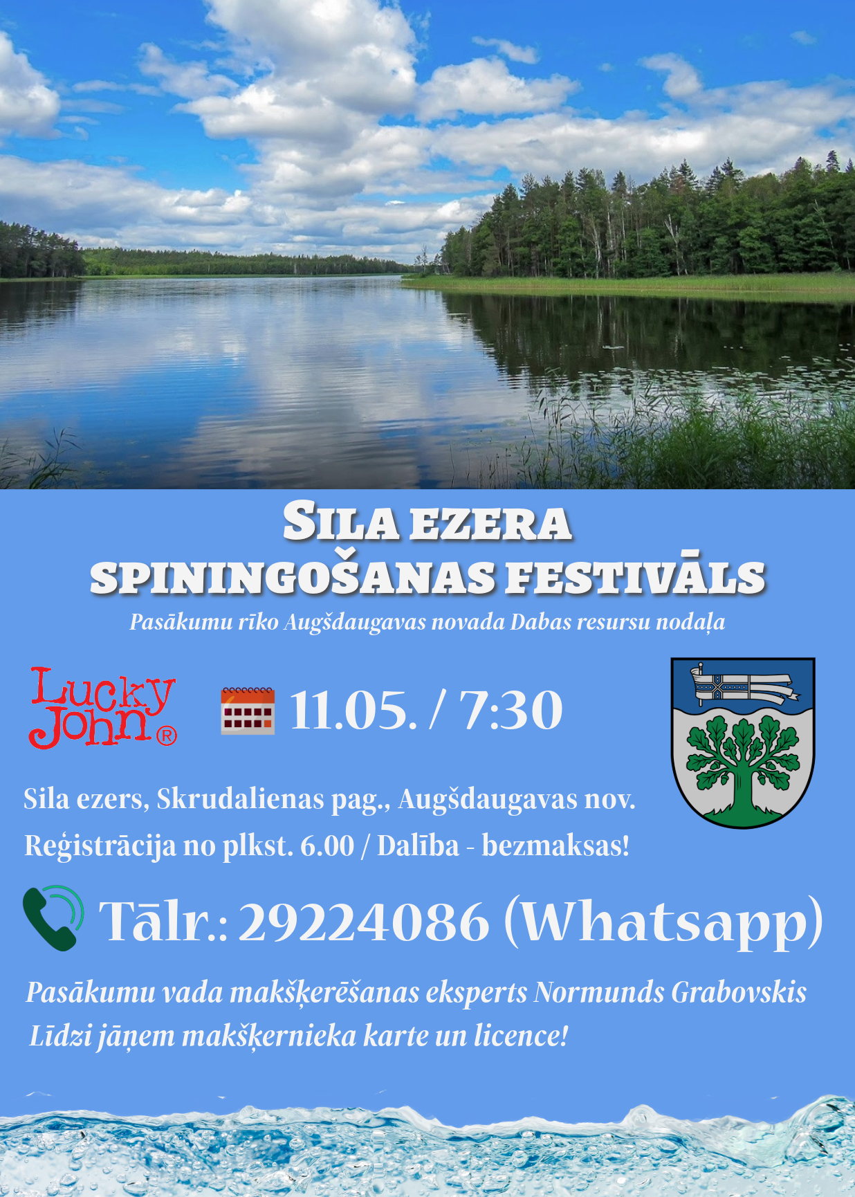 11. maijā, Skrudalienas pagasta Sila ezerā notiks spiningošanas festivāls, ko organizē Augšdaugavas novada Dabas resursu nodaļa.