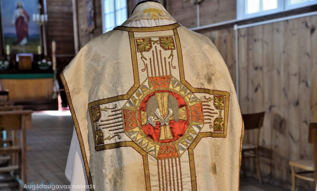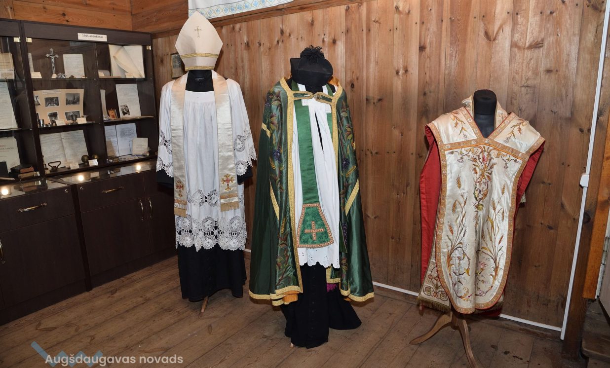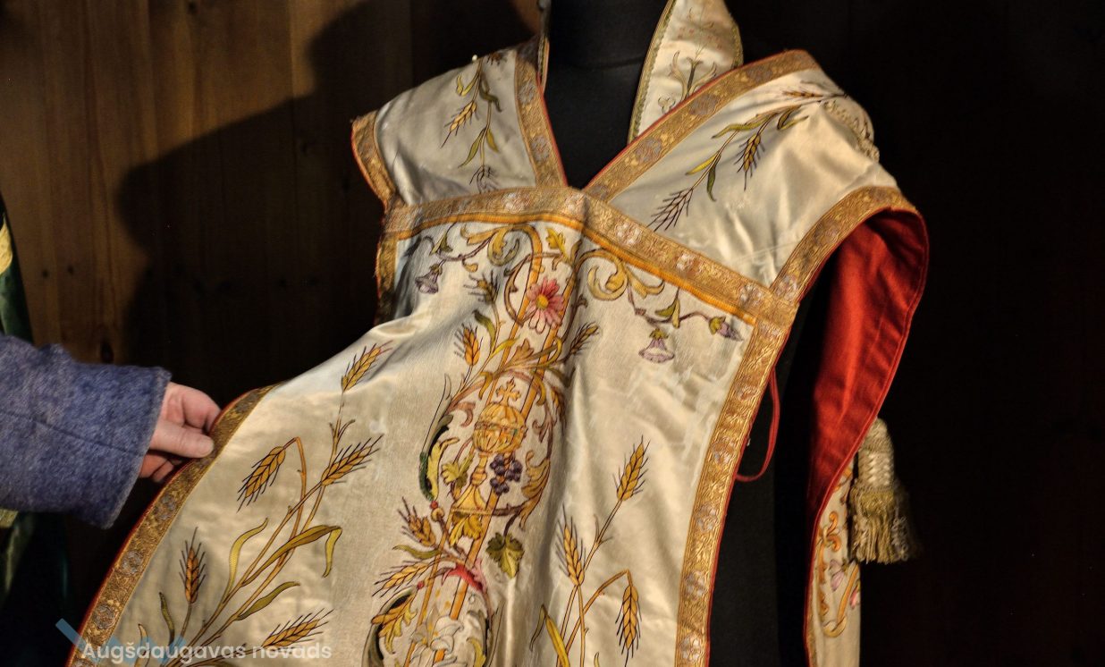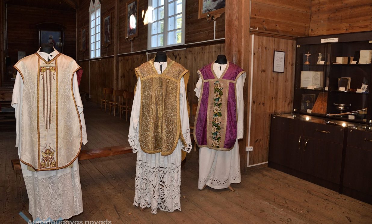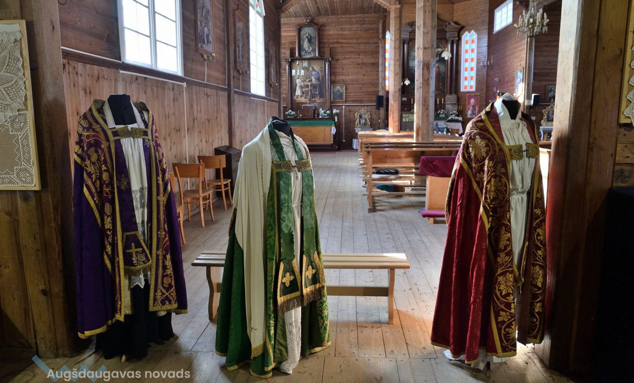 Dievnams var lepoties ar bagātīgu liturģisko apģērbu kolekciju. Daži tērpi ir ļoti vērtīgs jūgenstila kultūrmantojums. Sofija nodemonstrē apaļas pogas uz mācītāja melnās sutanas un atklāj, ka tās veidotas, iešujot audumā ķiršu kauliņus, jo senāk rūpnieciski ražotas pogas nebija pieejamas.