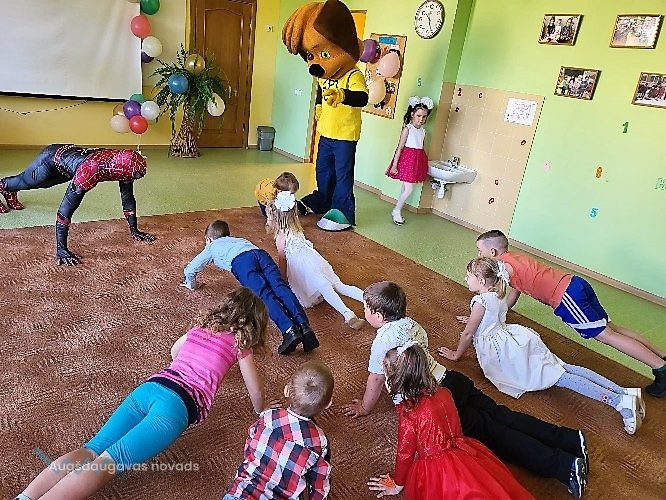Dienas turpinājuma bērnus iepriecināja animatori – Zirnekļcilvēks un Družoks no Barboskiniem, kuri pavadīja kopā ar bērniem veselu stundu.