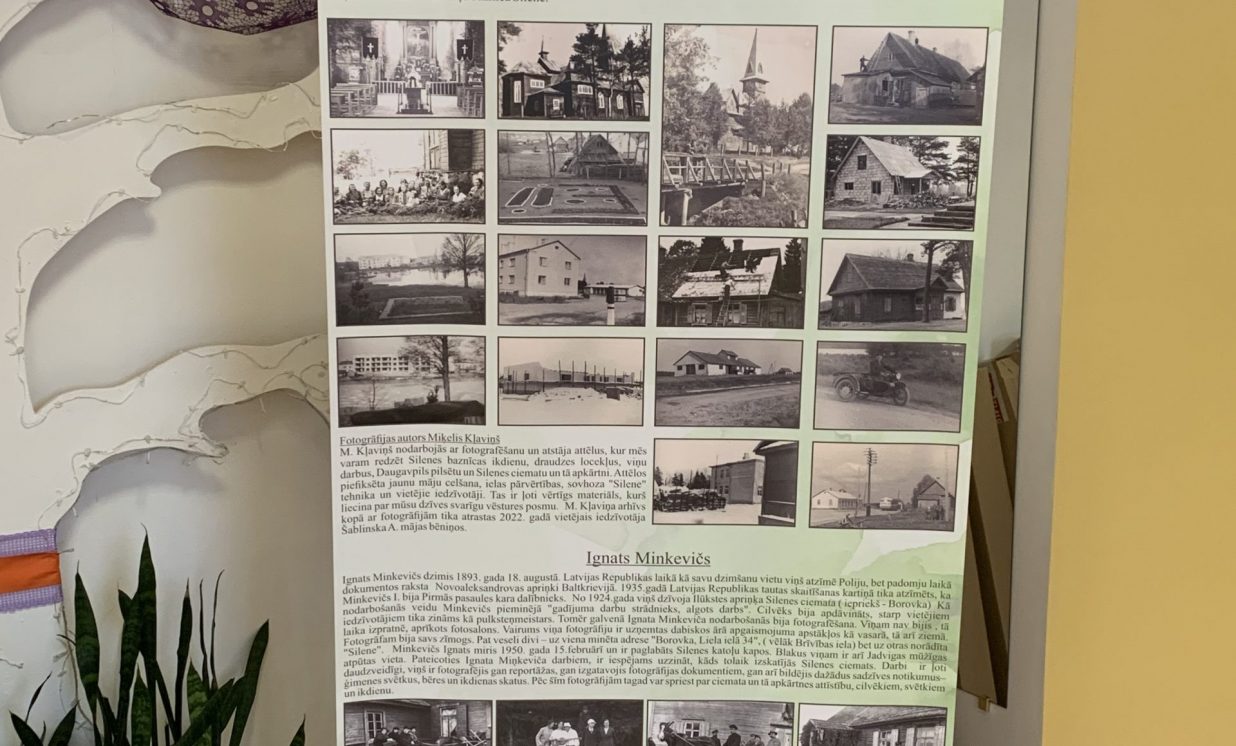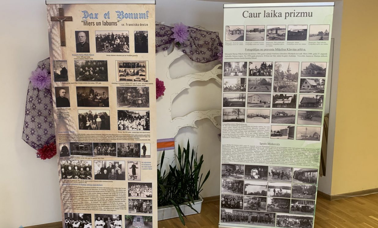 Ļoti vērtīgi eksponāti, saistīti ar priestera Miķeļa Kļaviņa personu, kurš sludināja mūsu baznīcā no 1956. gada līdz 1986. gadam. Baznīcas bēniņos tika atrastas viņa sarakstītās atmiņas. Tajās aprakstīts, kā prāvestu arestēja un izsūtīja uz Sibīriju. Vietējais iedzīvotājs A. Šablinskis savas mājas remonta laikā bēniņos atrada M. Kļaviņa foto arhīvu. Tajā glabājās vairāk nekā tūkstotis fotogrāfiju, un mēs varam redzēt priestera personīgās fotogrāfijas, kur viņš bija iemūžināts no jaunības gadiem līdz viņa nāves brīdim. Ir atrastas pat ļoti vērtīgas fotogrāfijas Sibīrijas trimdas laikā. Interesanti arī tas, ka M. Kļaviņš pats nodarbojās ar fotografēšanu un atstāja fotogrāfijas, kurās mēs varam redzēt ne tikai Silenes baznīcas ikdienu, draudzes locekļus, viņu darbus, bet arī Silenes ciematu un tā apkārtni. Attēlos piefiksēta jaunu māju celšana, ielas pārvērtības, sovhoza “Silene” tehnika un vietējie iedzīvotāji. Kopumā varam teikt, ka tas ir ļoti vērtīgs materiāls, kurš liecina par mūsu ciemata svarīgu vēstures posmu. Lai to saglabātu un rādītu plašākai sabiedrībai, par projekta finansēm tika iegādāti fotoalbumi, fotogrāfijas klasificētas un pielāgotas izvietošanai ekspozīcijā. Lai iepazīstinātu ar informāciju pēc iespējas plašāku auditoriju, tika iegādāti divi viegli uzstādāmi, uzglabājami un transportējami Roll Up baneri. Pirmajā banerītika ievietota informācija par Miķeļa Kļaviņa dzīves gaitu, otrajā par Silenes ciemata vēsturi.