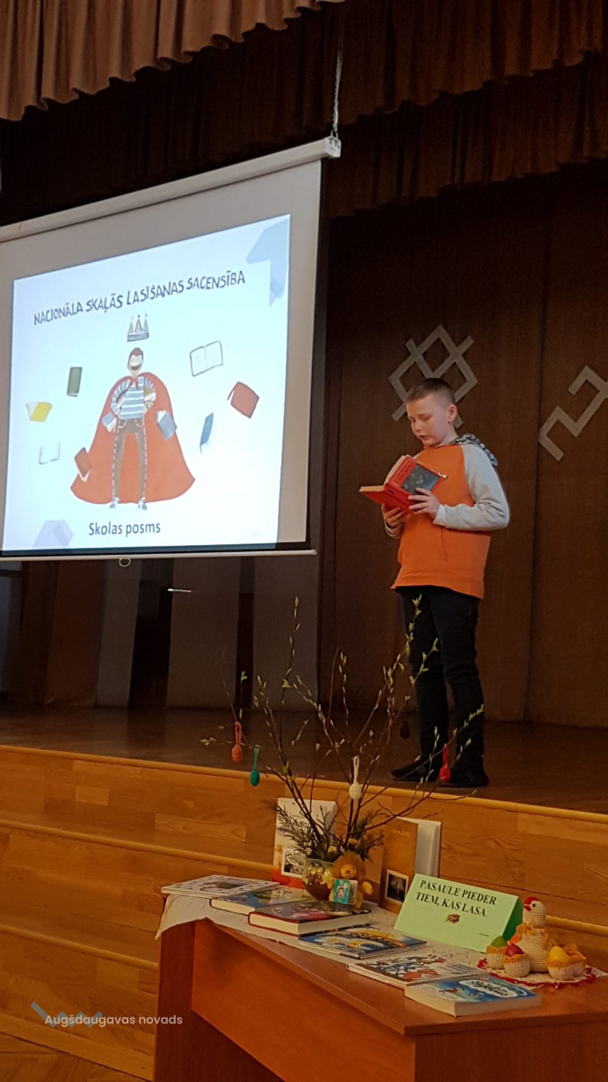 Pasākumā piedalījās arī pagājušā gada lasītāji-6.klase. 2021. gada uzvarētāja skolā Aleksandra Isajeva nolasīja Raiņa dzejoli ,,Grāmata’’, kā arī palīdzēja vērtēt šī gada lasītājus.