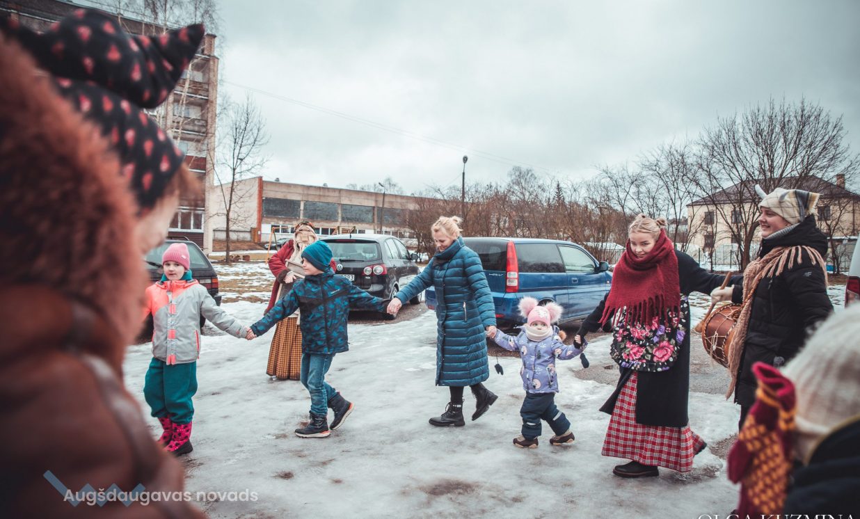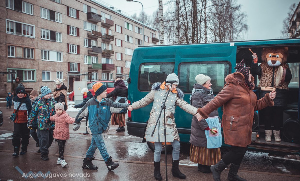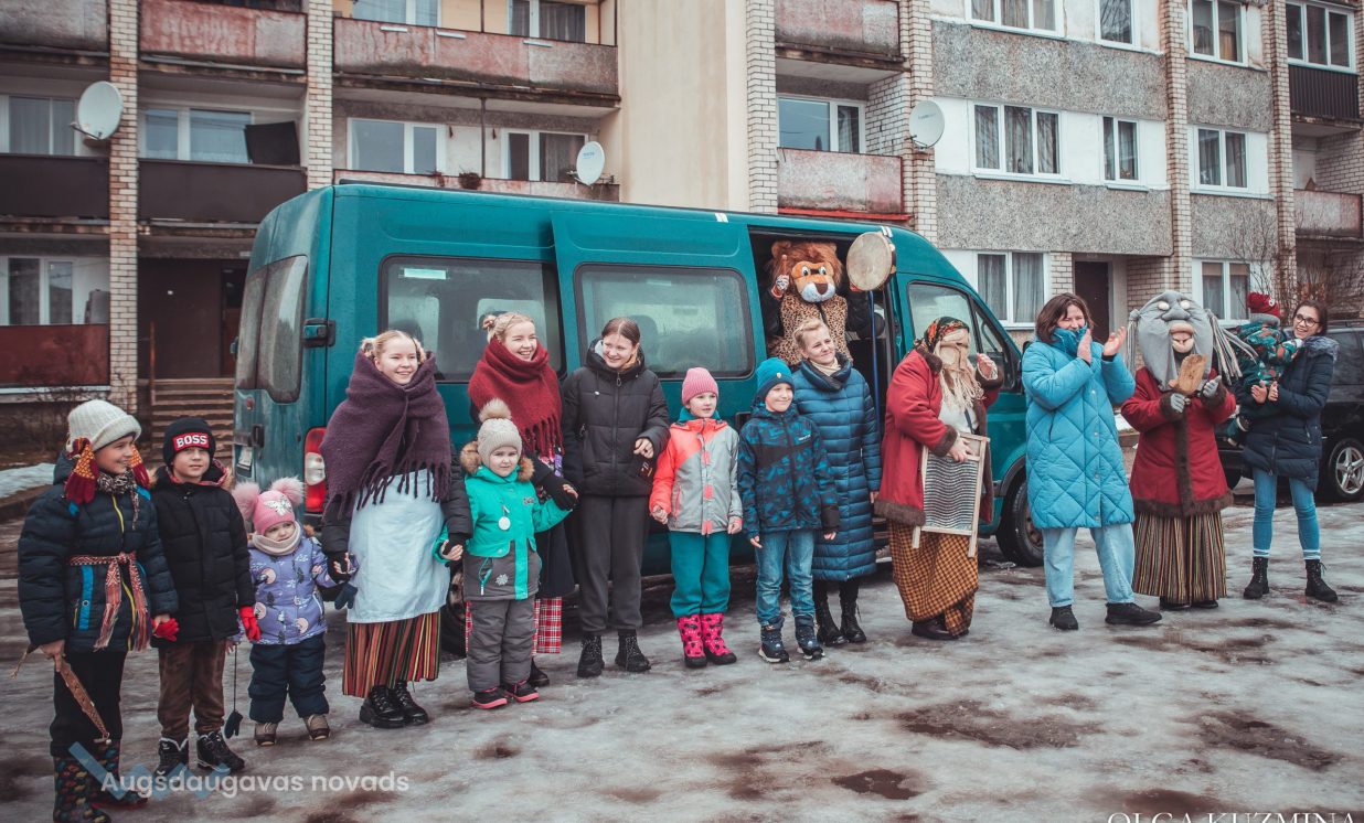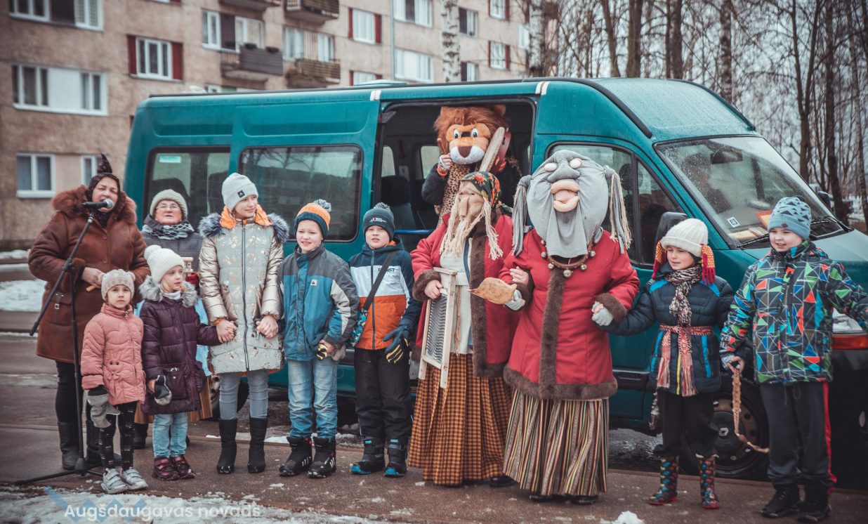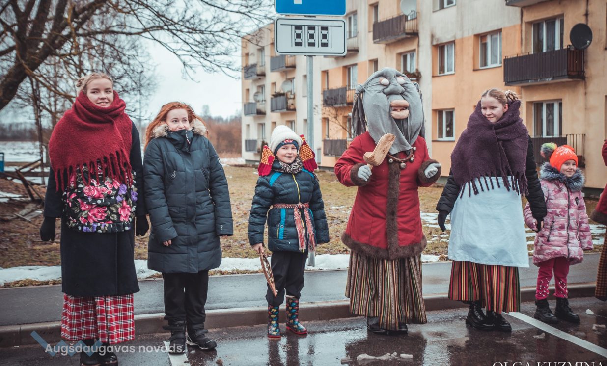 Skanīgais Meteņu ekspresis “laidās” pa Naujenes pagastu