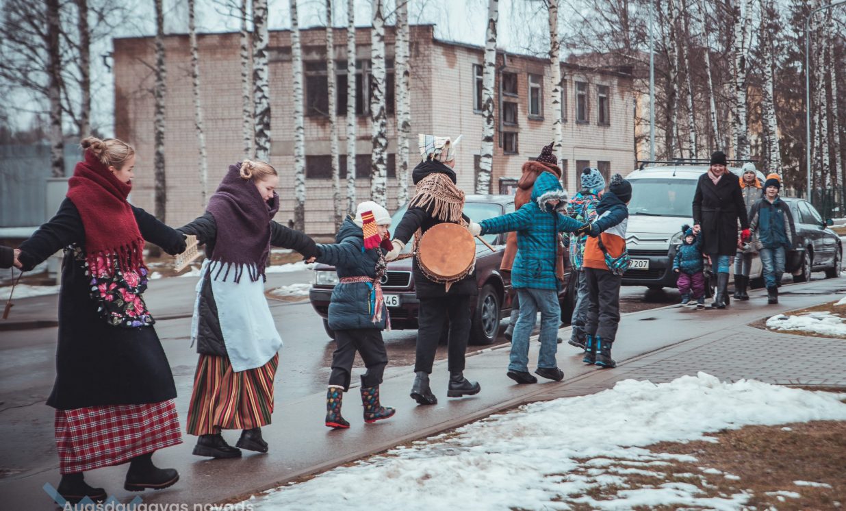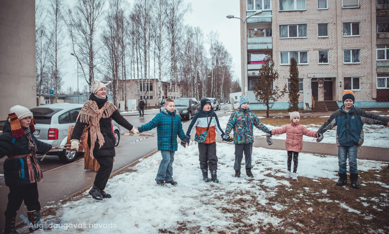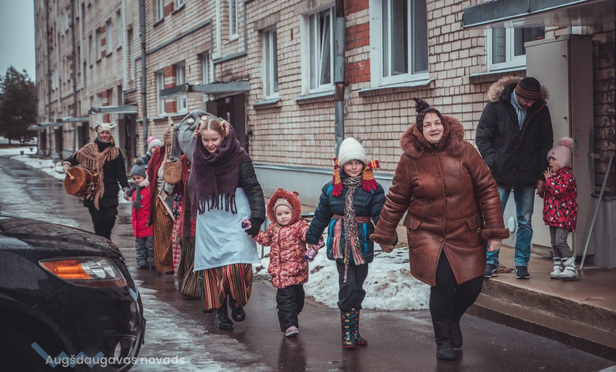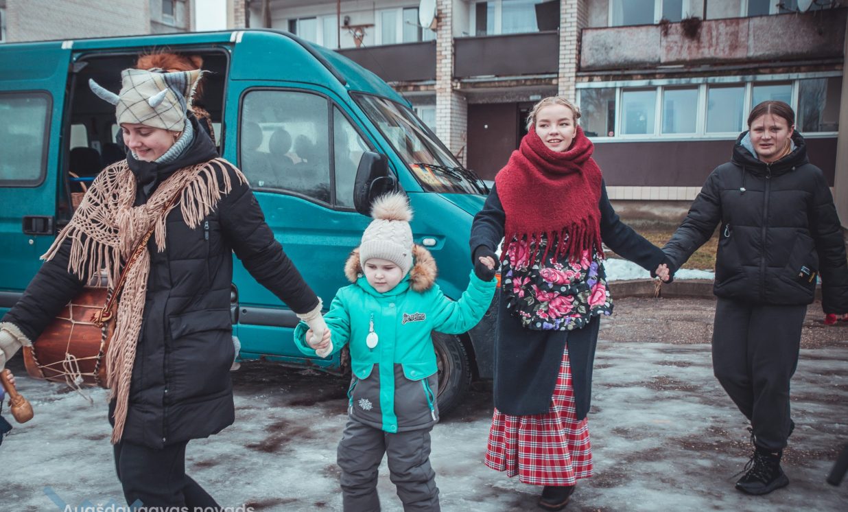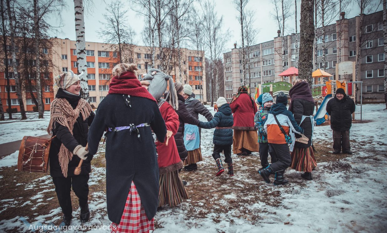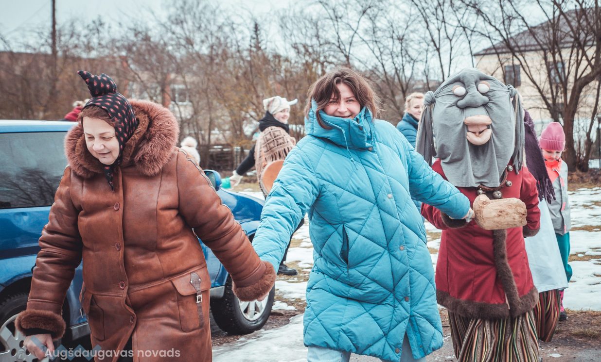 Skanīgais Meteņu ekspresis “laidās” pa Naujenes pagastu