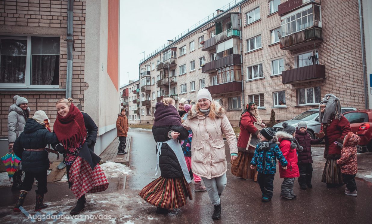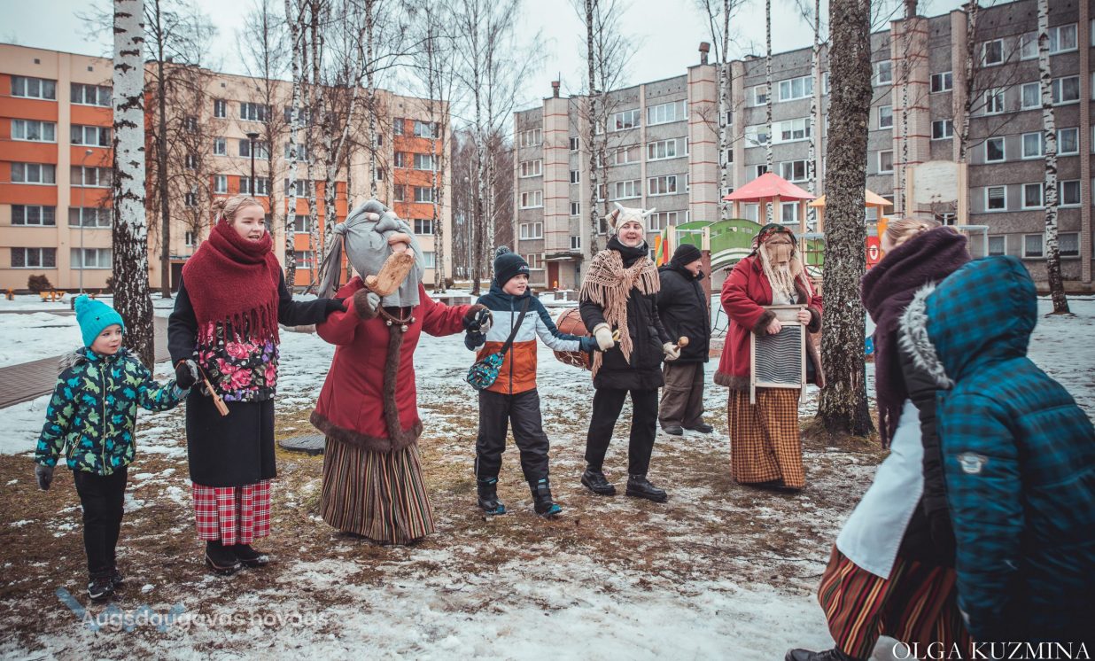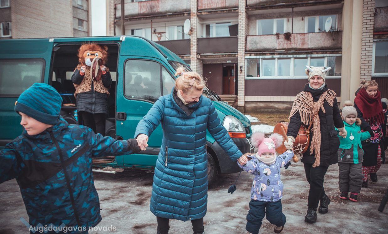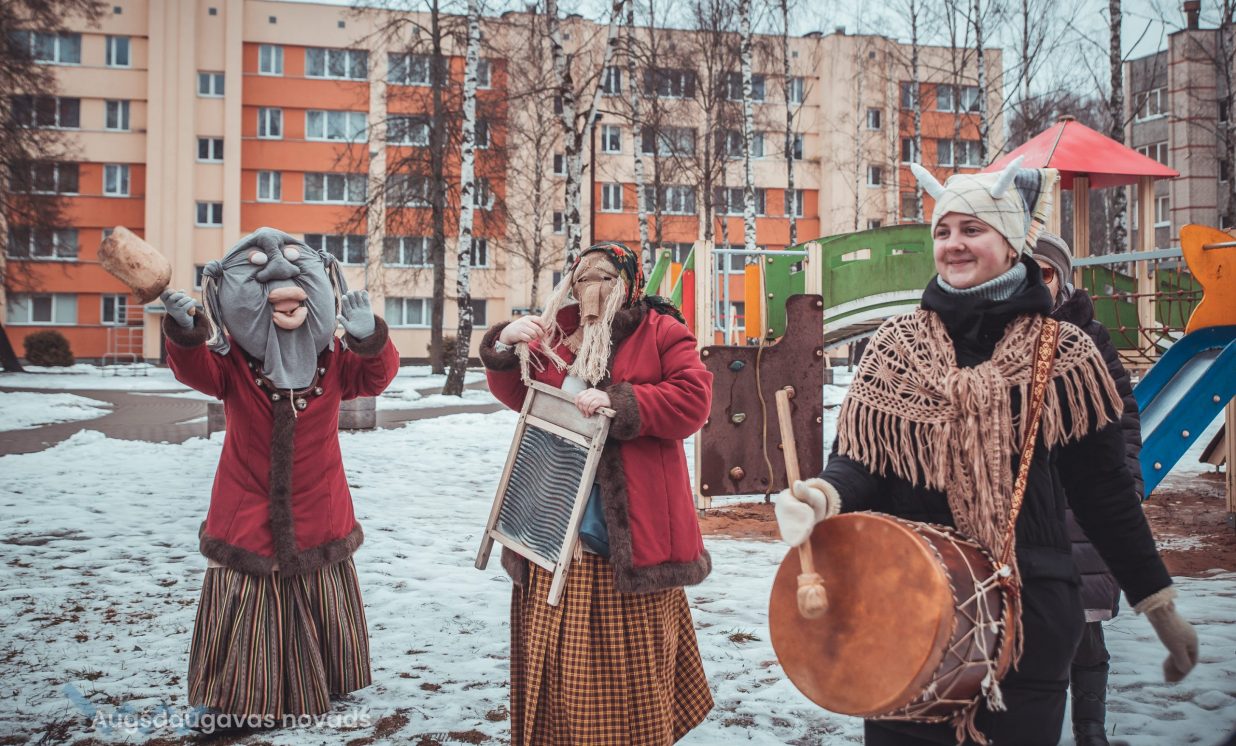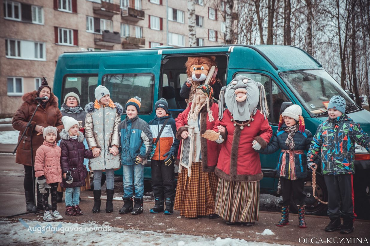 Skanīgais Meteņu ekspresis “laidās” pa Naujenes pagastu