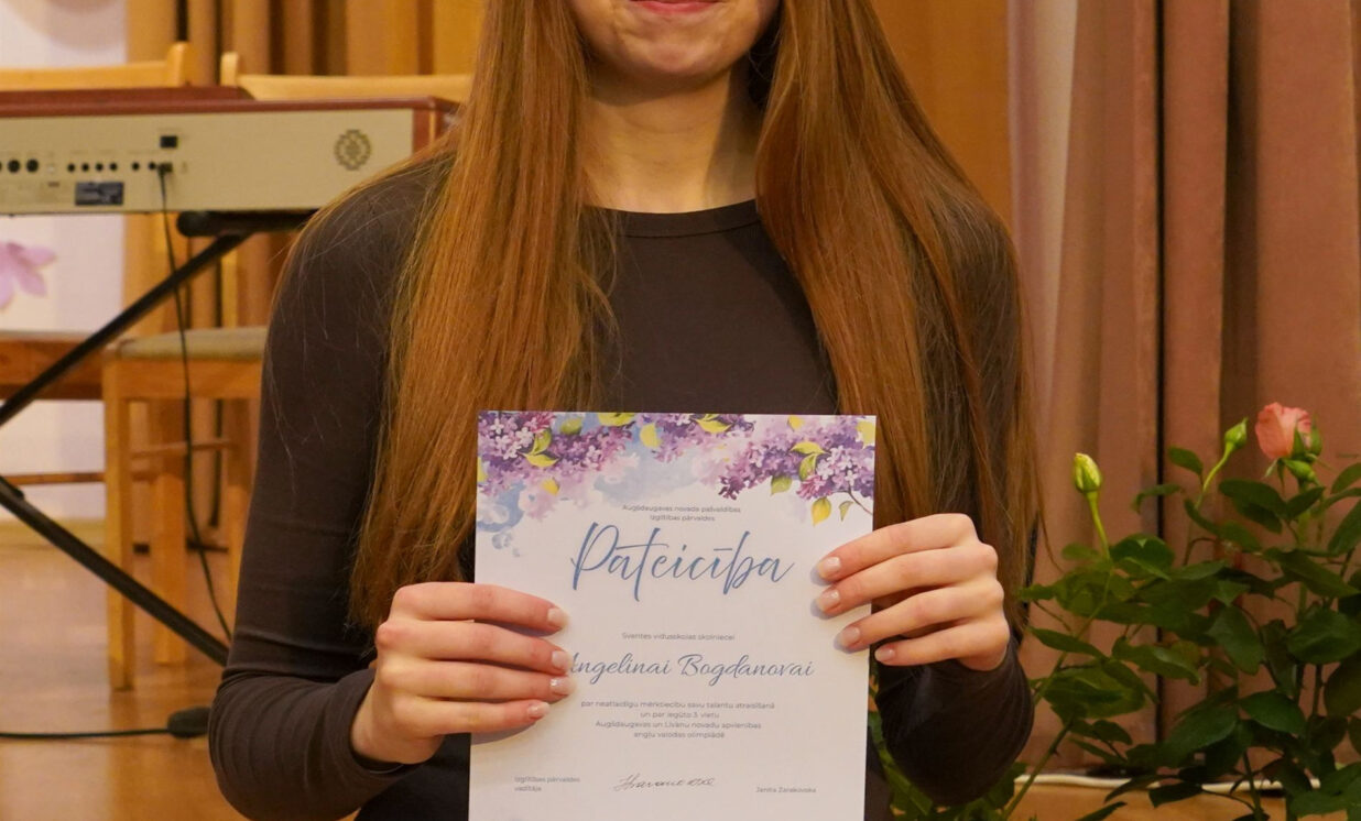 Aizkustinošs gada noslēguma pasākums notika Sventes vidusskolā, kur mācību gada izskaņā tradicionāli tiek sumināti konkursa “Gada skolēns” laureāti. Par tādiem šogad kļuvuši deviņi skolēni, kuriem izdevies apvienot labus sasniegumus mācībās ar aktīvu sabiedrisko darbu un dalību interešu izglītībā. Sākumskolas posmā balvu “Gada skolēns” ieguva Aleksandra Ragozina, Amina Smilgina un Viktorija Miglāne, pamatskolas posmā Anastasija Krivašejeva, Vladimirs Desjatkovs un Zoja Solovjova, bet vidusskolas posmā Samanta Saveļjeva, Jana Švedova un Anna Virbale. Visi konkursa laureāti saņēma zemnieku saimniecības “Stārķi” sarūpētās naudas balvas.