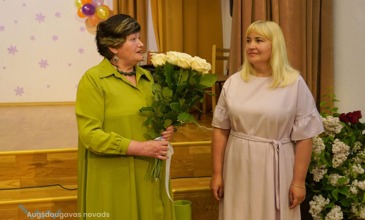 Ar ziediem un pateicības vārdiem pensijā tika pavadīta skolas Marionešu teātra vadītāja un mūzikas skolotāja Nataļja Ogurcova un direktora vietniece, skolotāja Biruta Ondzule.
