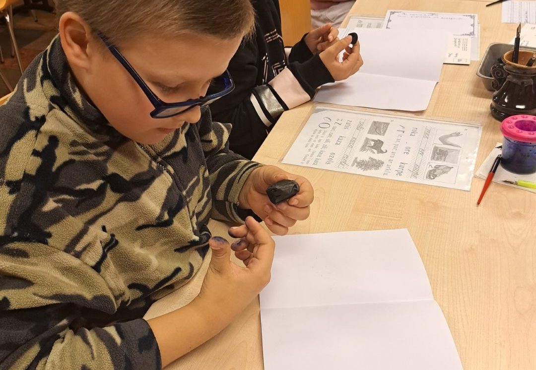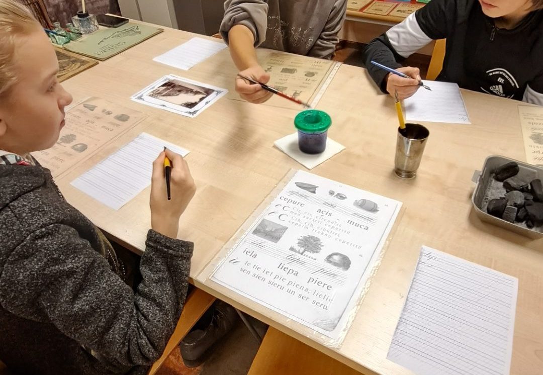 Izmantojot muzeja krājuma mācību grāmatas, skolēni rotaļu veidā pildīja dažādus vēstures periodiem raksturīgos uzdevumus: lasīšana vecajā drukā, glītrakstīšana, aritmētika, zīmēšana. Uzdevumu veikšanai bērni lietoja vēstures periodam atbilstošus rakstāmpiederumus: tinti, spalvaskātus, ogles. Bērni atzina, ka rakstīt ar spalvaskātu nav tik viegli, grūti panākt, lai burti būtu vienāda lieluma. Skolēni guva pozitīvas emocijas un atraisīja savu radošumu!