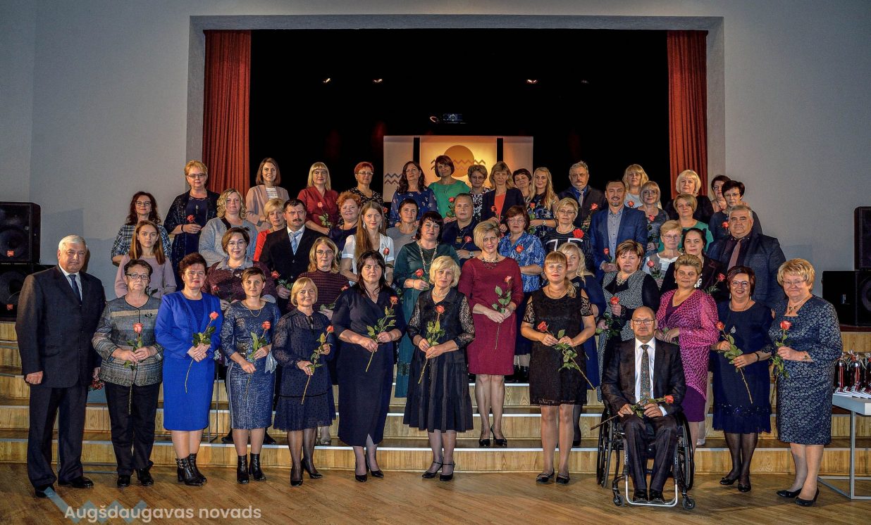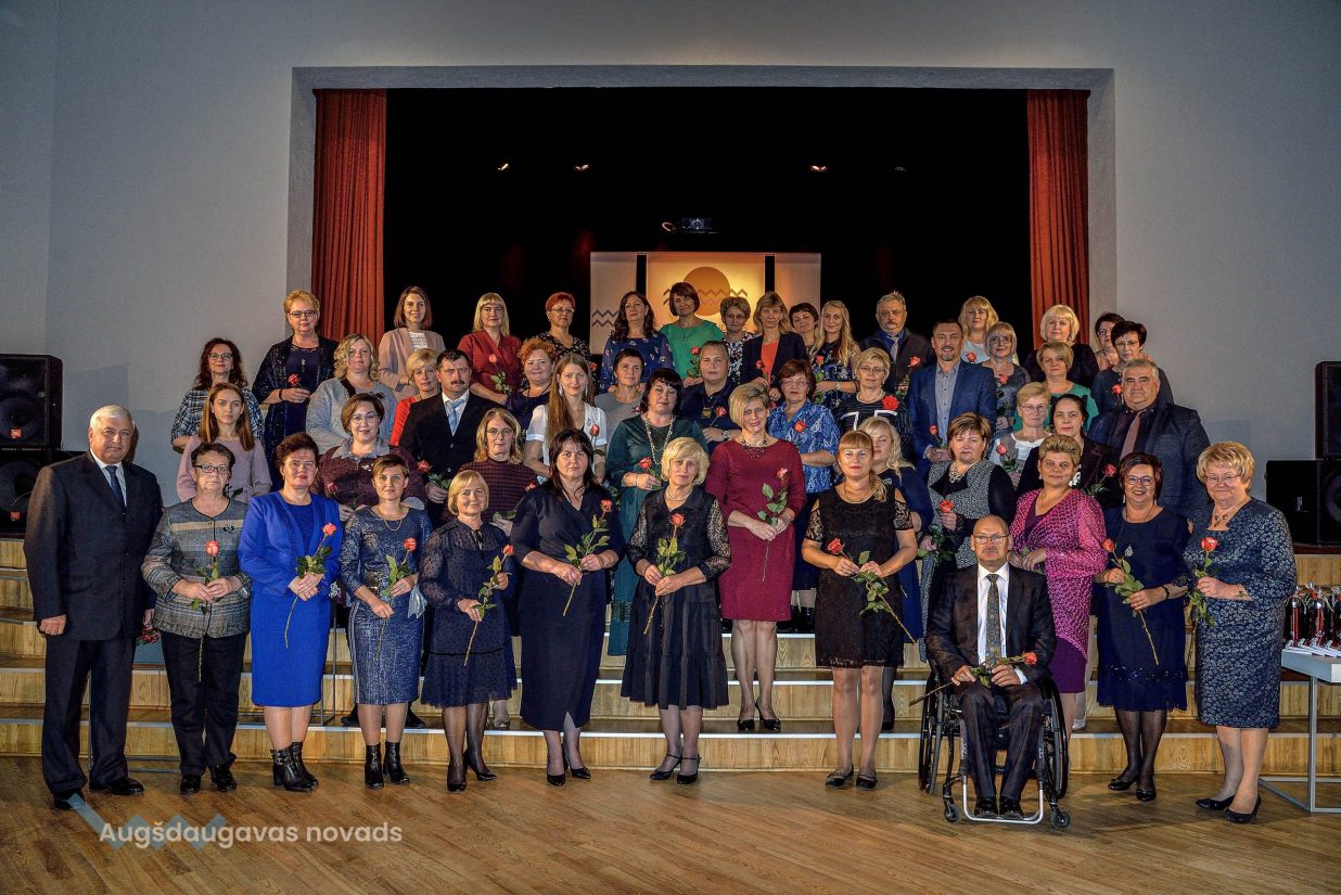 47 novada izglītības iestāžu pedagogiem pasniegtas Darba kvalitātes stimulēšanas balvas. Tāpat ar apbalvojumiem sveica tos skolotājus, kuri šajā gadā svin 20, 30, 40 un 50 darba gadus. Pateicības par darba stāžu tika piešķirtas 20 skolotājiem un 3 administrācijas darbiniekiem. Vislielāko stāžu – 50 gadus – šogad atzīmē Medumu speciālās pamatskolas skolotāja Marija Celminska. Apaļu četrdesmit gadu jubilāru vidū – Medumu pamatskolas vēstures, ģeogrāfijas un sociālo zinību skolotāja Miropija Petkune. Medumu pamatskola ir skolotājas Miropijas dzimtā un arī vienīgā skola.
