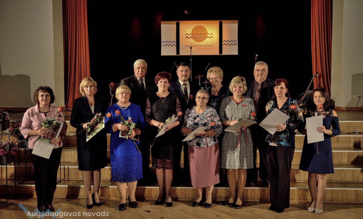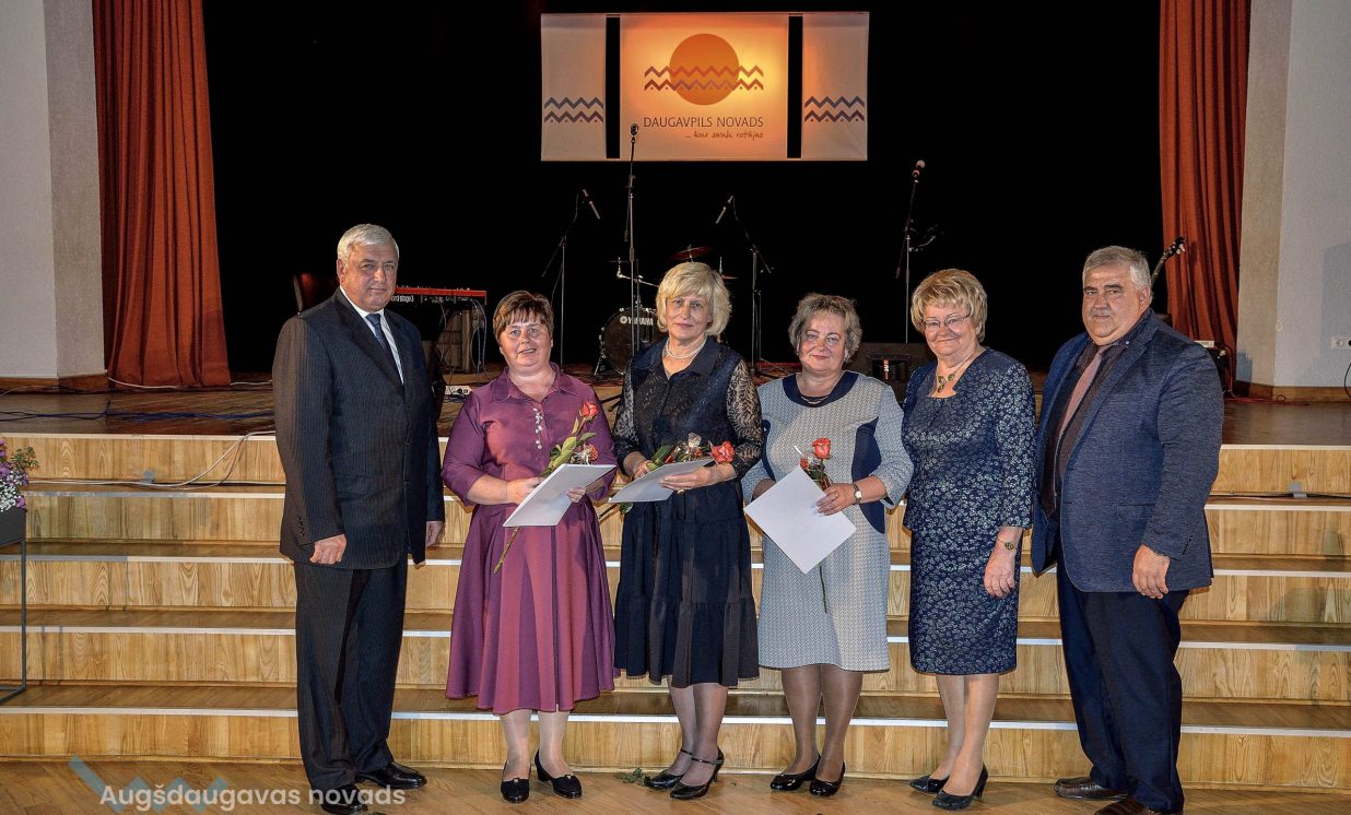 Skolotājus sveica Daugavpils novada domes priekšsēdētājs Arvīds Kucins, priekšsēdētāja 1. vietnieks Aivars Rasčevskis un izpilddirektore Vanda Kezika, pasniedzot Pateicības un balvas novada labākajiem pedagogiem par ieguldījumu jaunās paaudzes izglītošanā.
