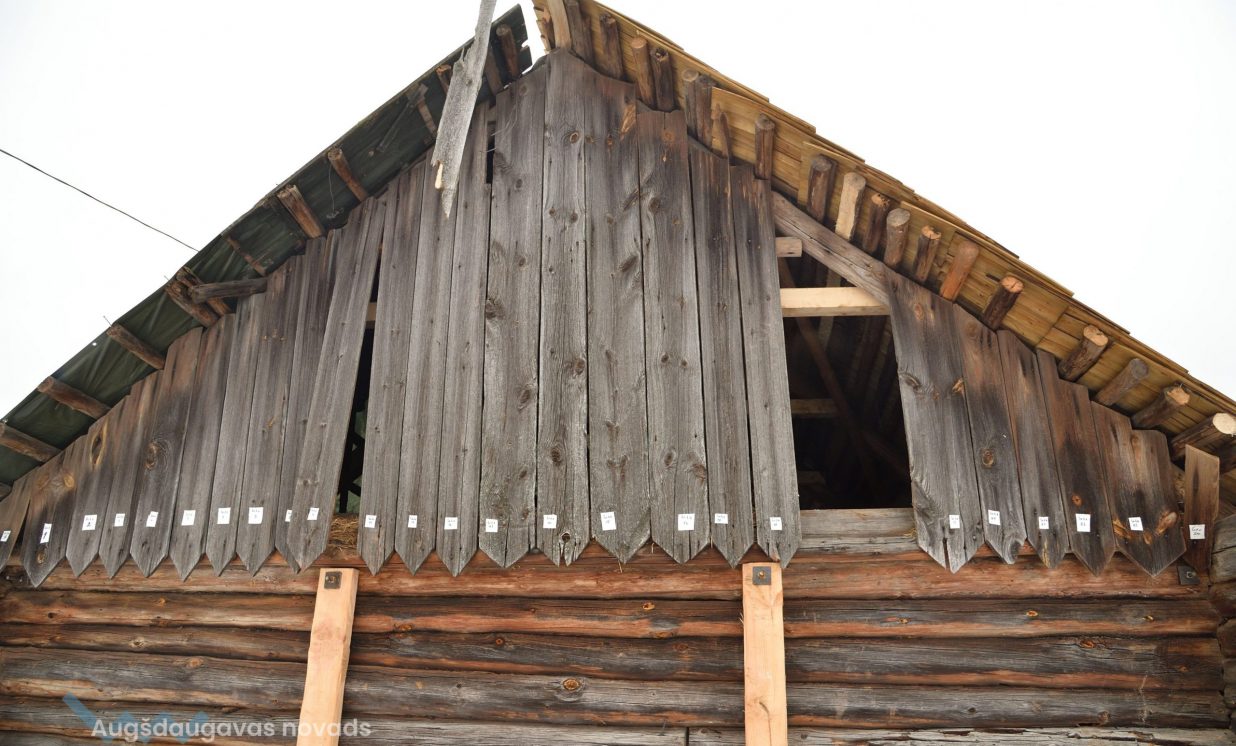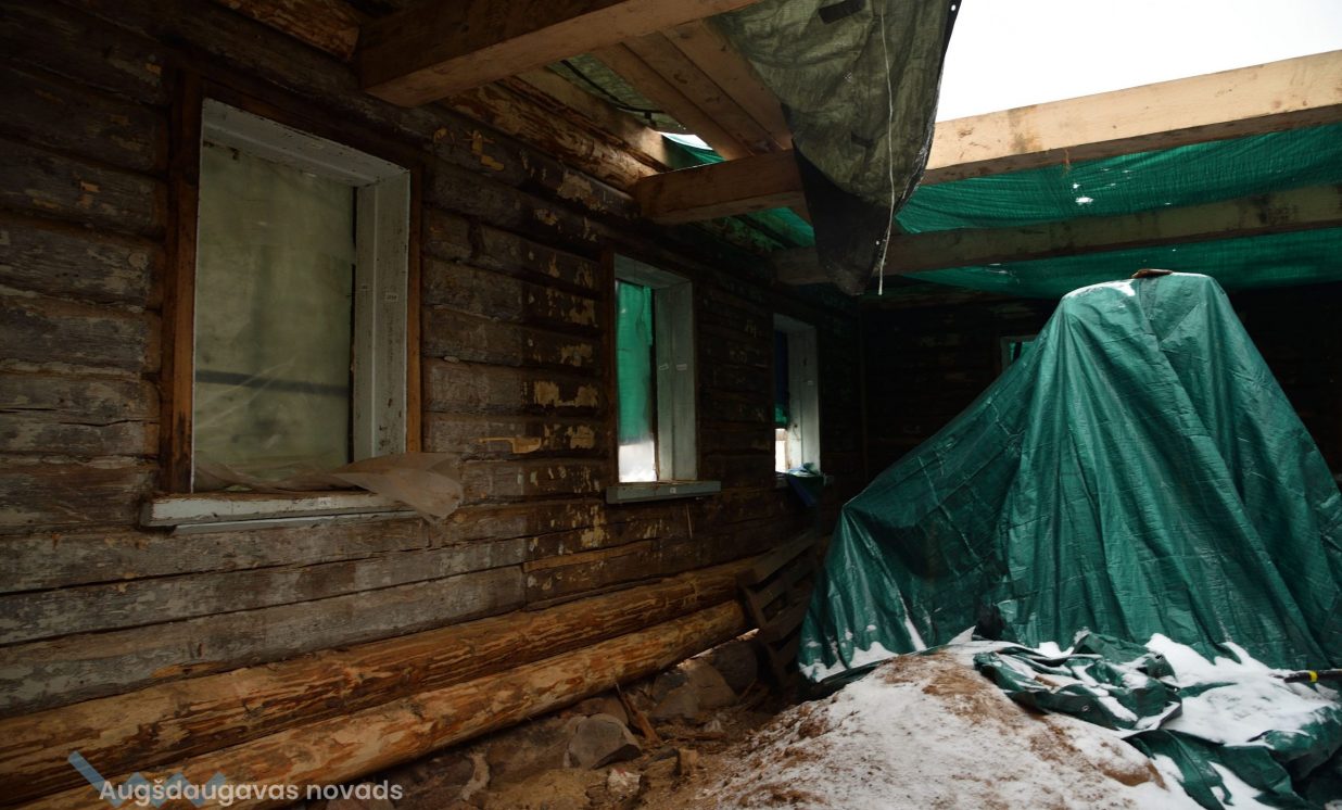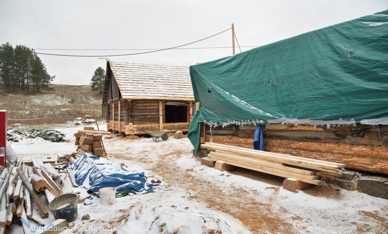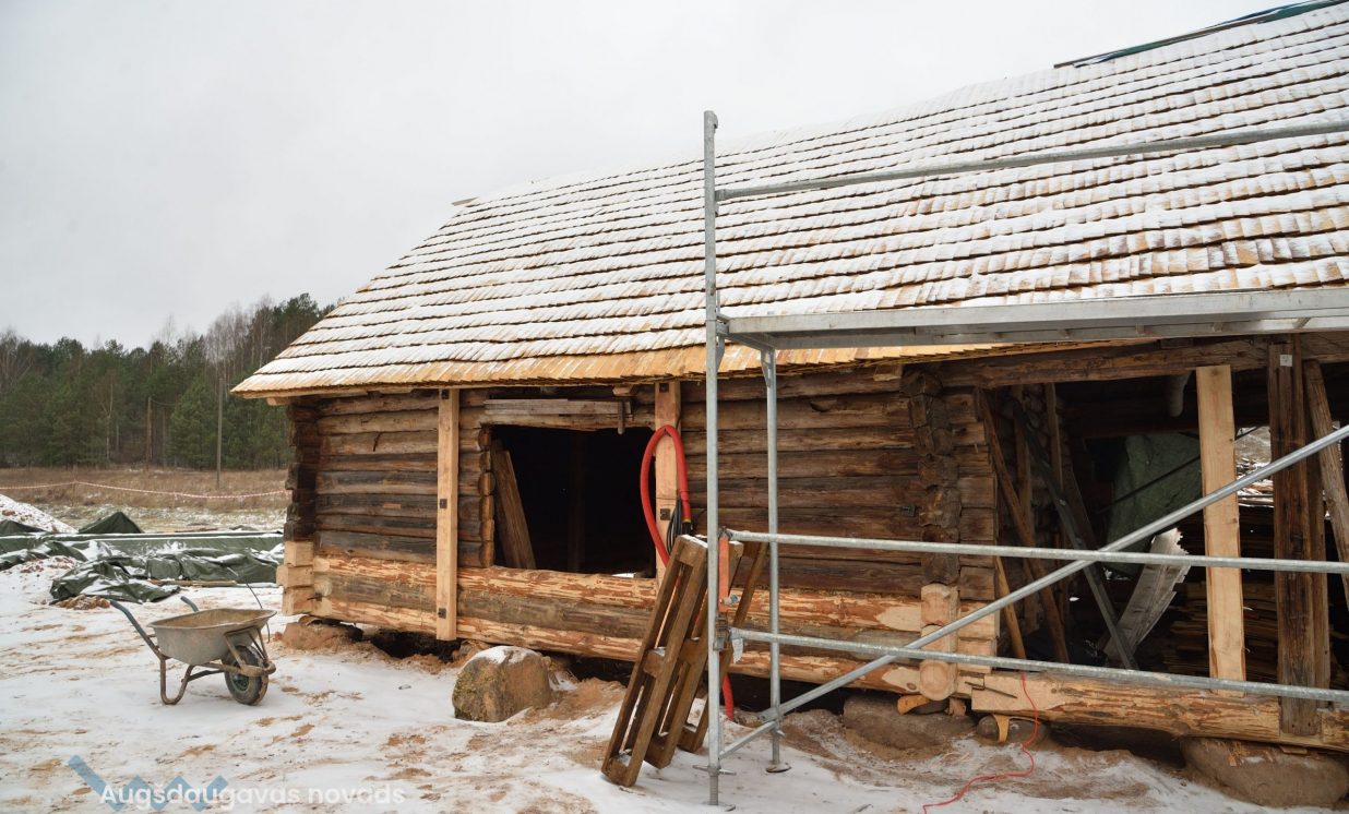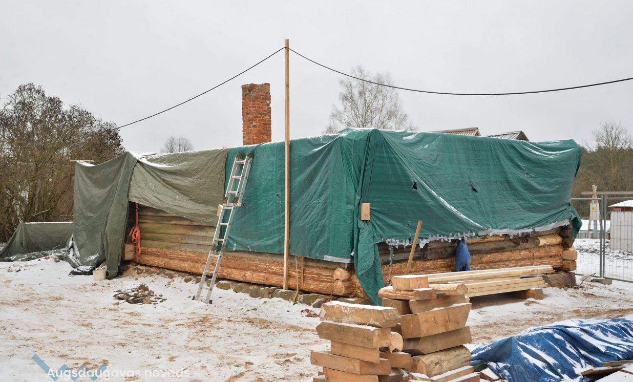 Slutišķu sādžā tiek restaurētas divas senās guļbūves