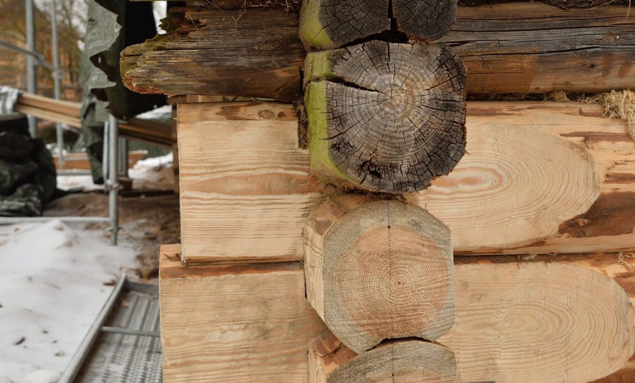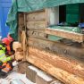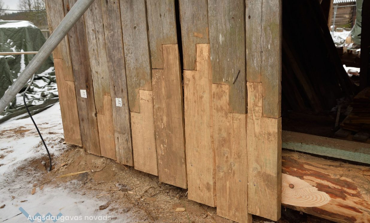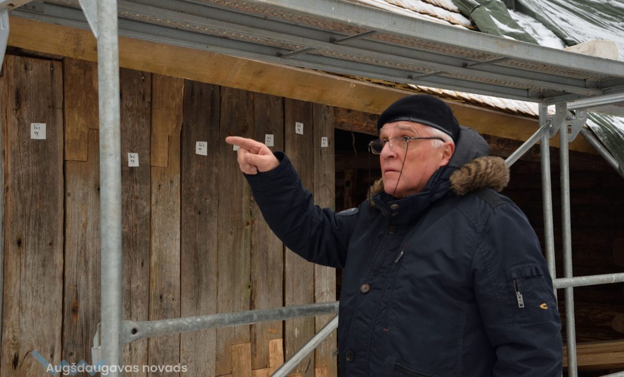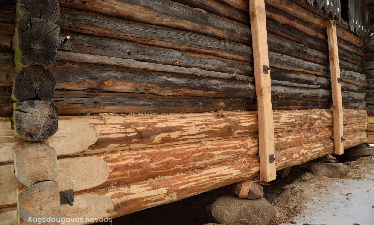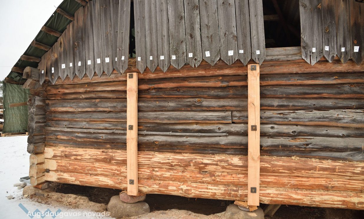 Slutišķu sādžā tiek restaurētas divas senās guļbūves
