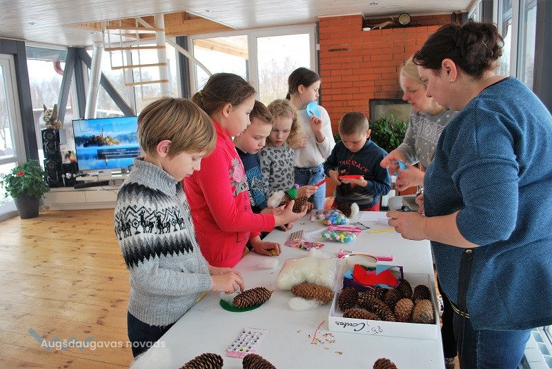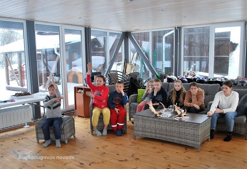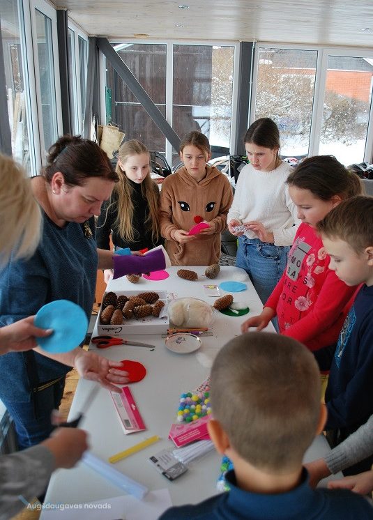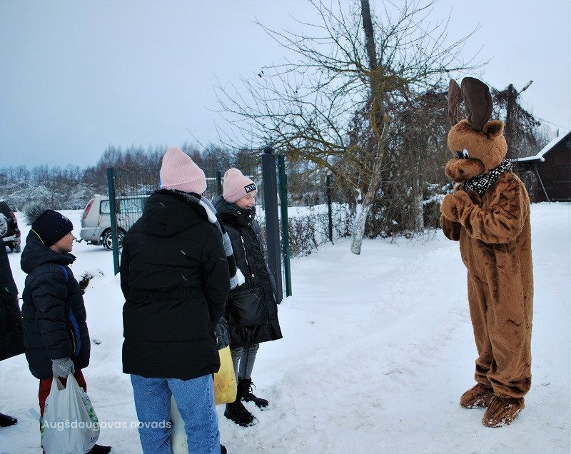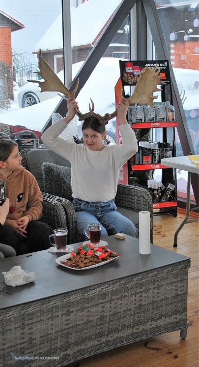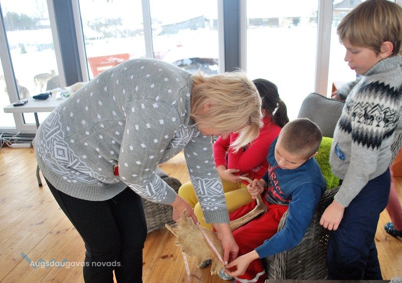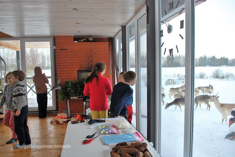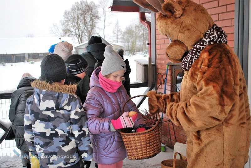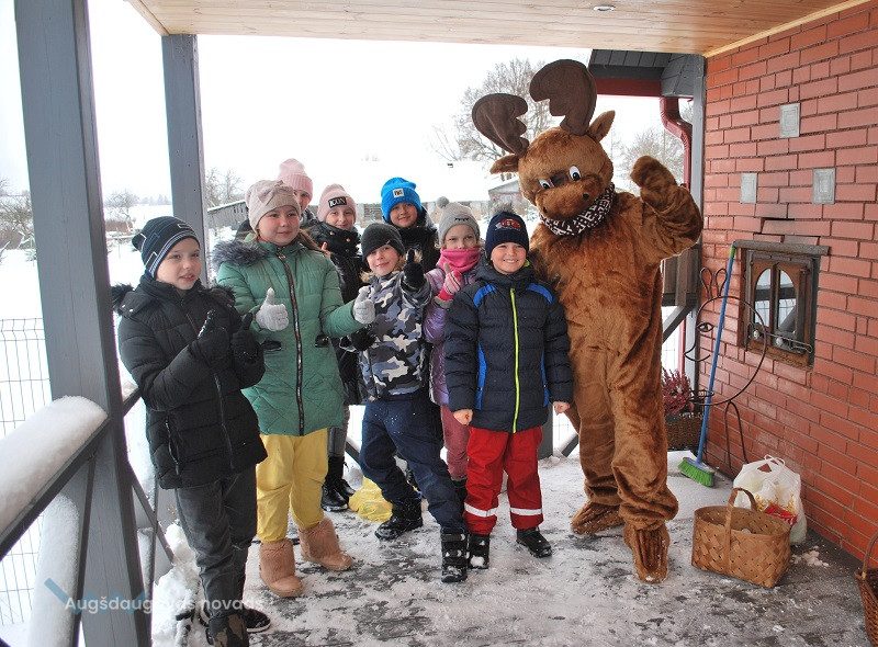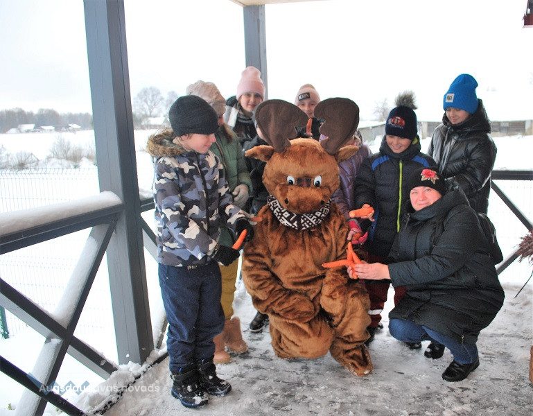 52 dambriežu bara saimnieks Sauļuks, saimniece Beta un viņu kuplā saime mielojās ar mazpulcēnu sagādātajiem gardumiem - dārzeņiem un augļiem. Z/s “Sniegi” saimniece Dina Žilvinska iepazīstināja mazpulcēnus ar informāciju, kas noderēs viņu darbībai un iepriecināja ar jaukām nodarbēm. Kopā ar saimnieci Dinu skolēni izgatavoja Ziemassvētku rūķīšus un brieža dekorāciju. Šajā radošajā procesā iesaistījās visi un bija gandarīti par lieliski paveikto darbu.