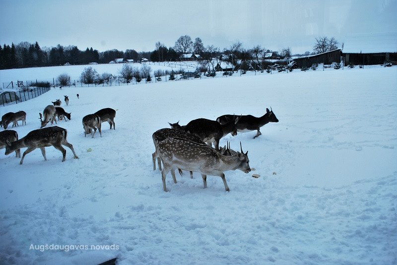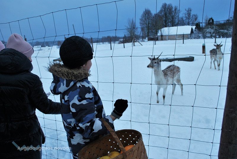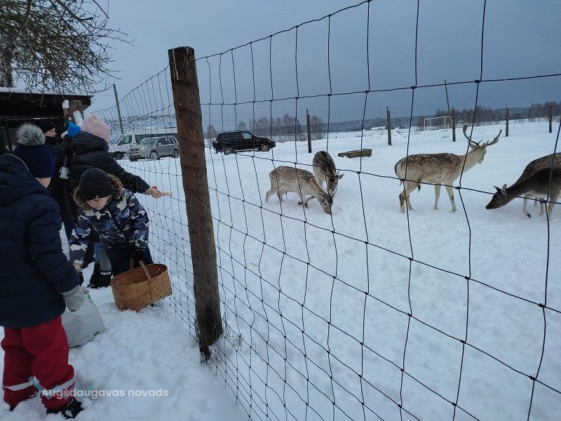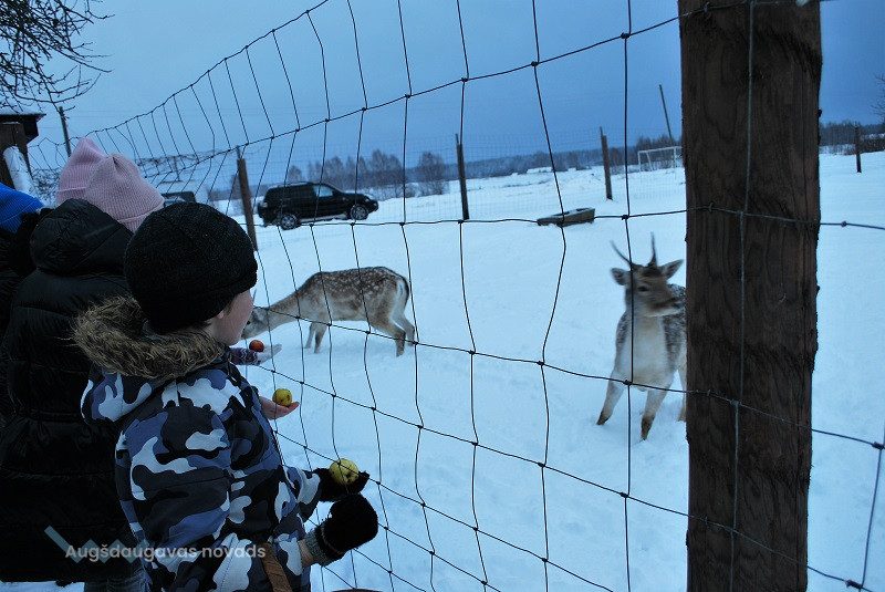 Ceļš aizveda mazpulcēnus uz Augšdaugavas novada Vaboles pagasta z/s “Sniegi”. Pirms brauciena sazinājāmies ar saimniekiem un uzzinājām, kas garšo dambriežiem, ar kādām dāvanām braukt, lai iepriecinātu šos neparastos briežus.